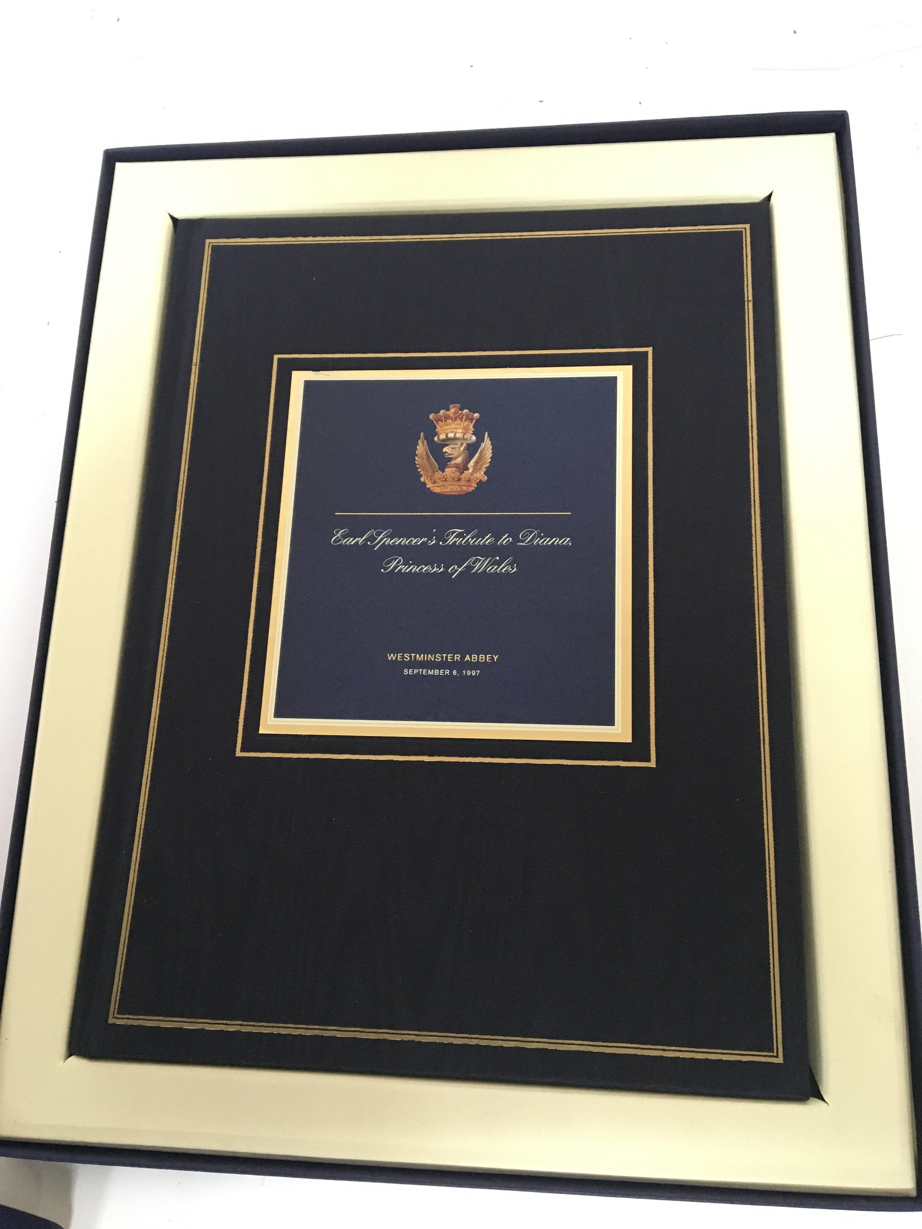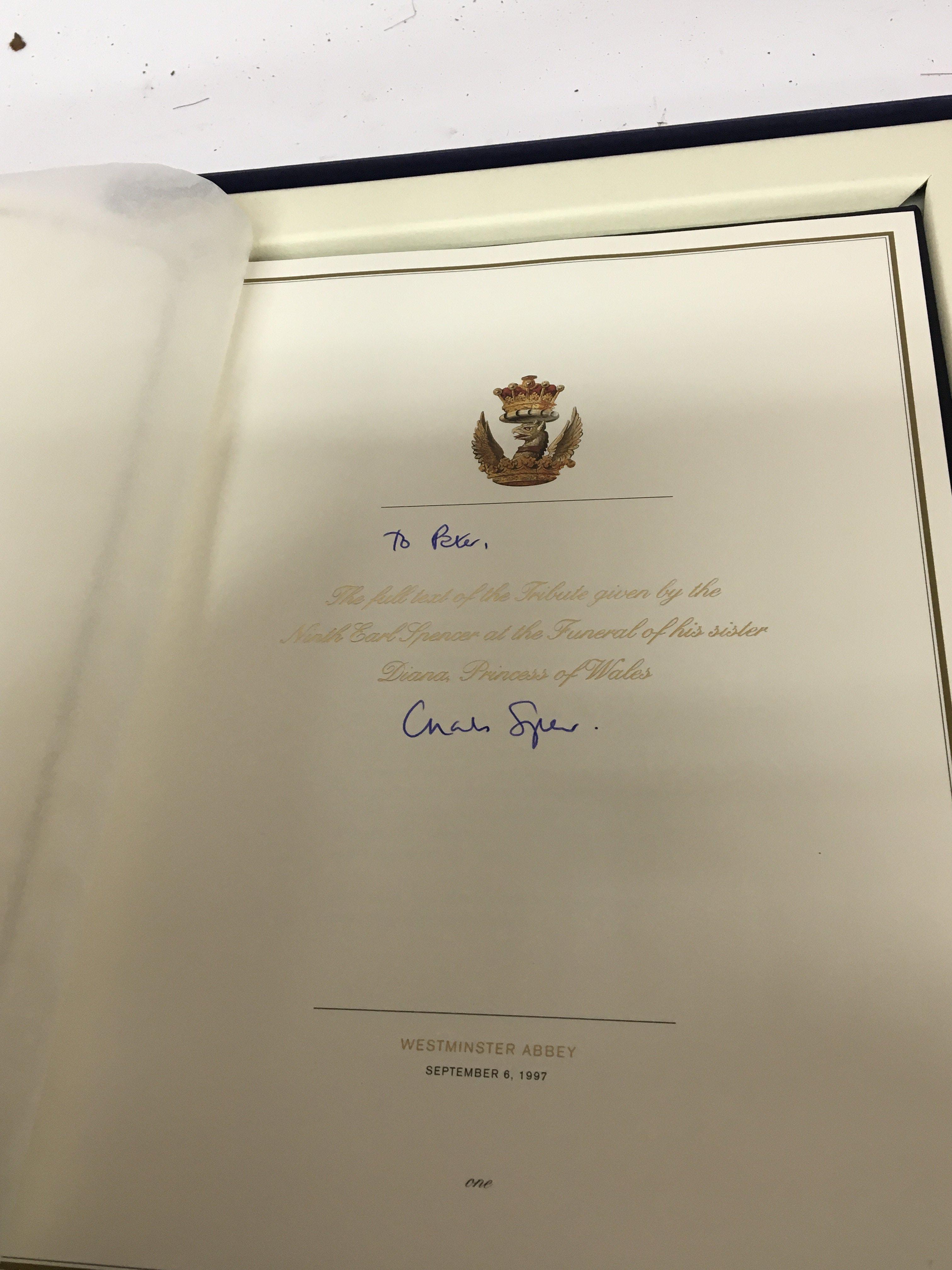 WITHDRAWN - A boxed Tribute to Diana Princess of Wales signed in ink by Earl Spencer in a fitted presentation box.