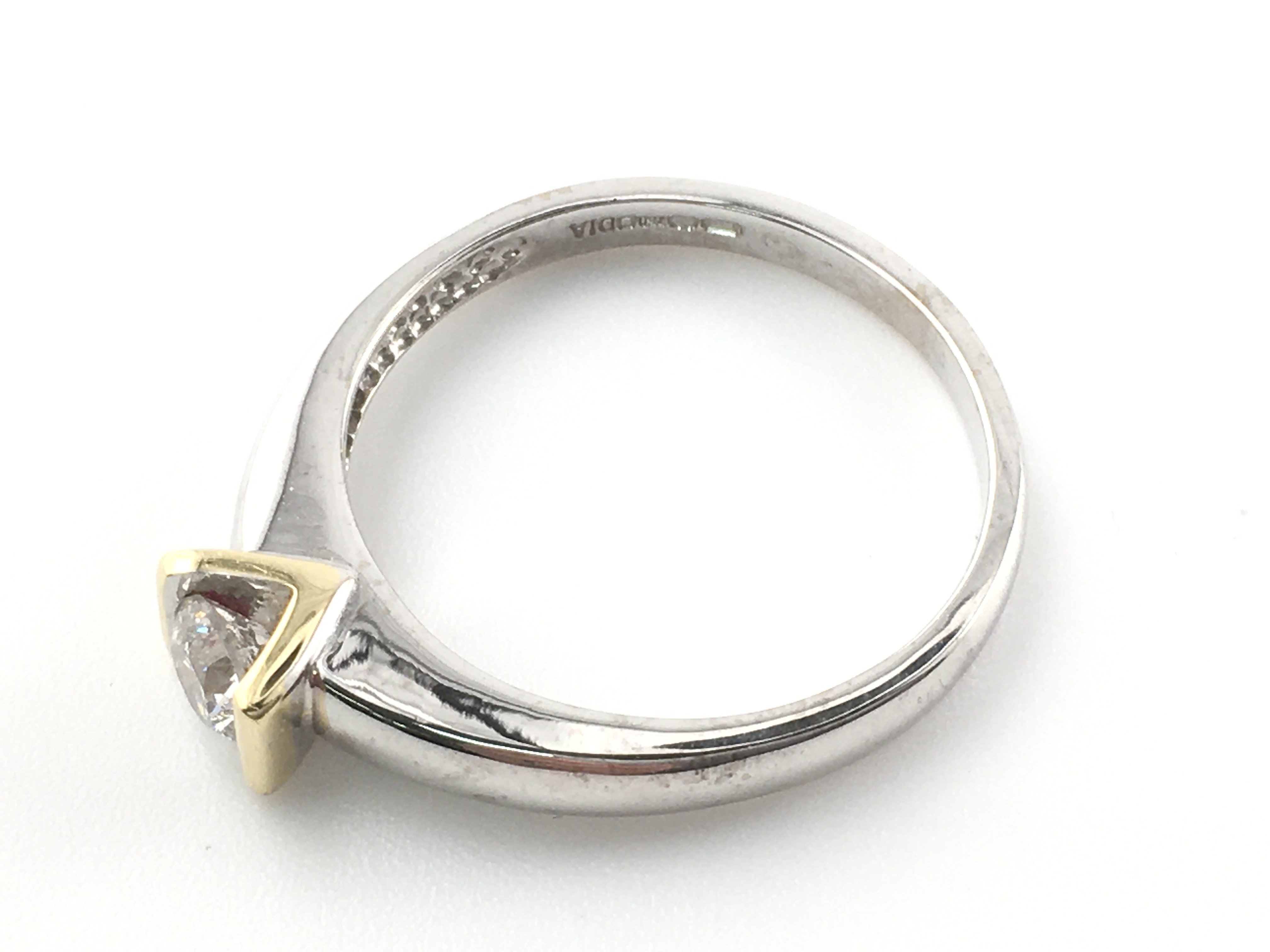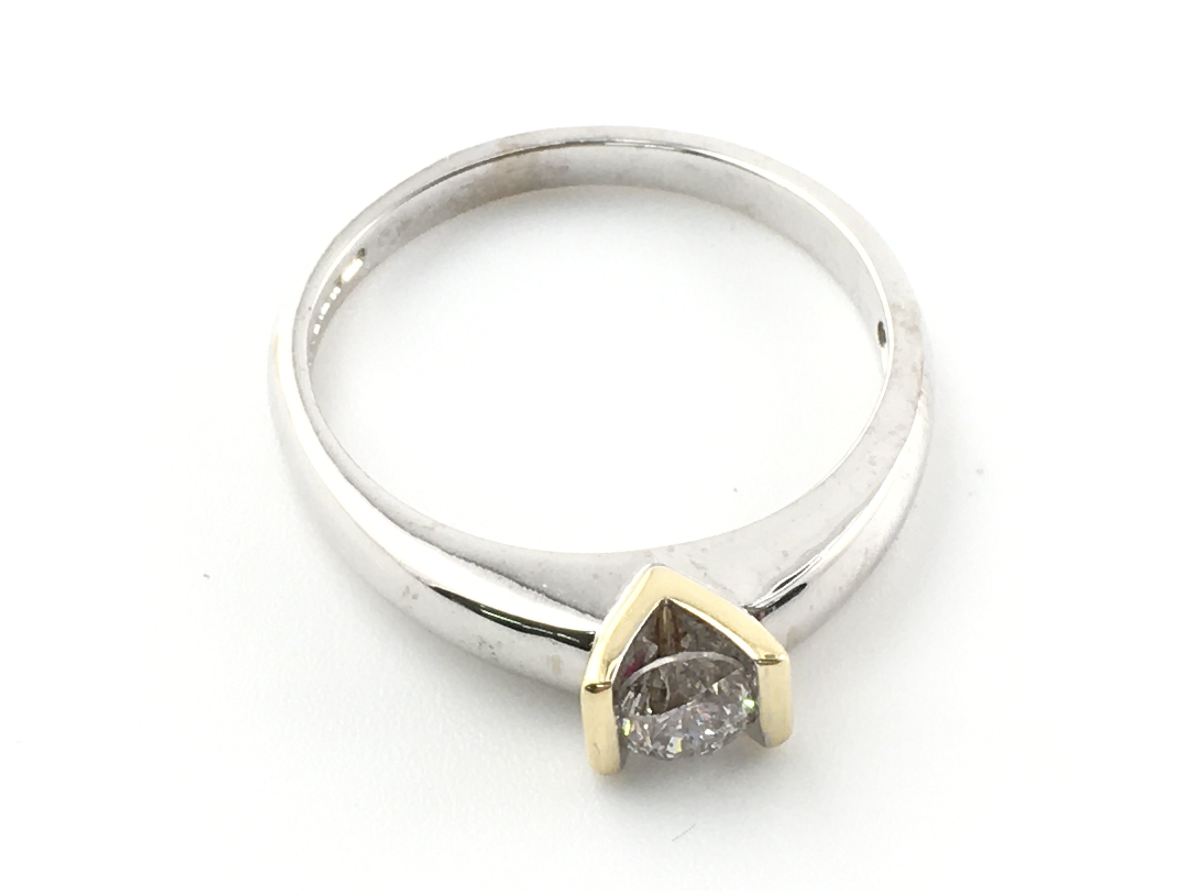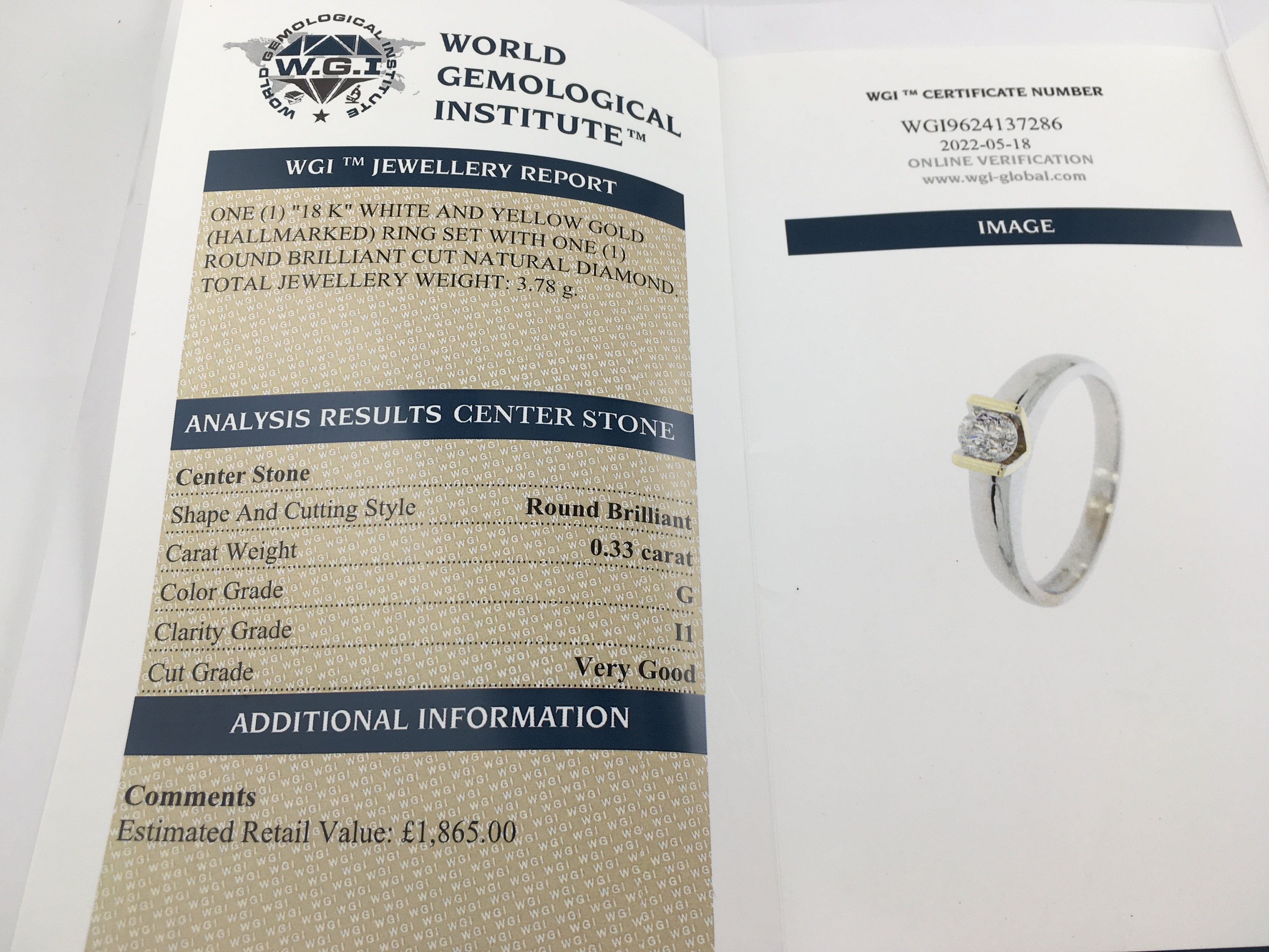 18ct white and yellow gold ring set with 0.33ct diamond with cert. size O 1/2 Postage A