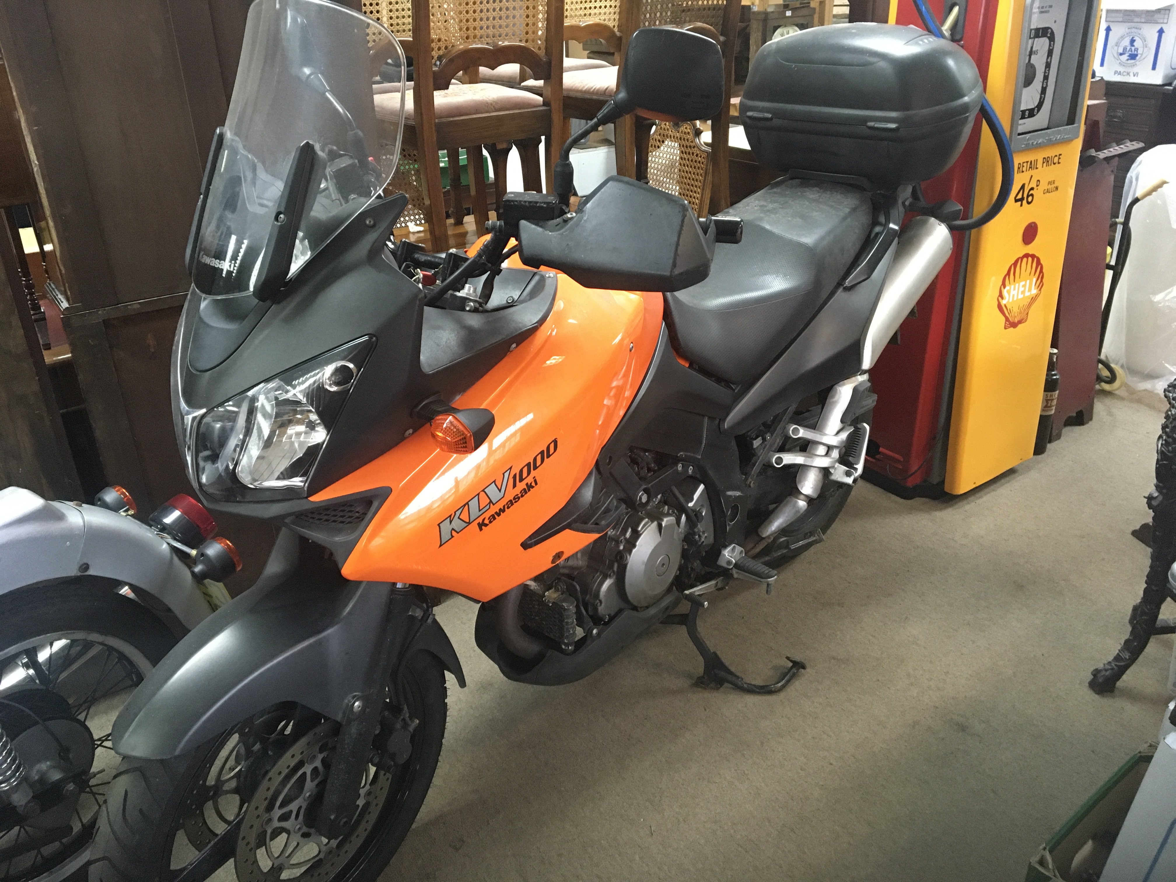 A Kawasaki KLV 1000 motorcycle Registration EY04 DYP. The bike has been garaged stored however it has just had an MOT and new battery fitted in good working order. Sold with V5. Mileage approximately fifteen thousand five hundred.
