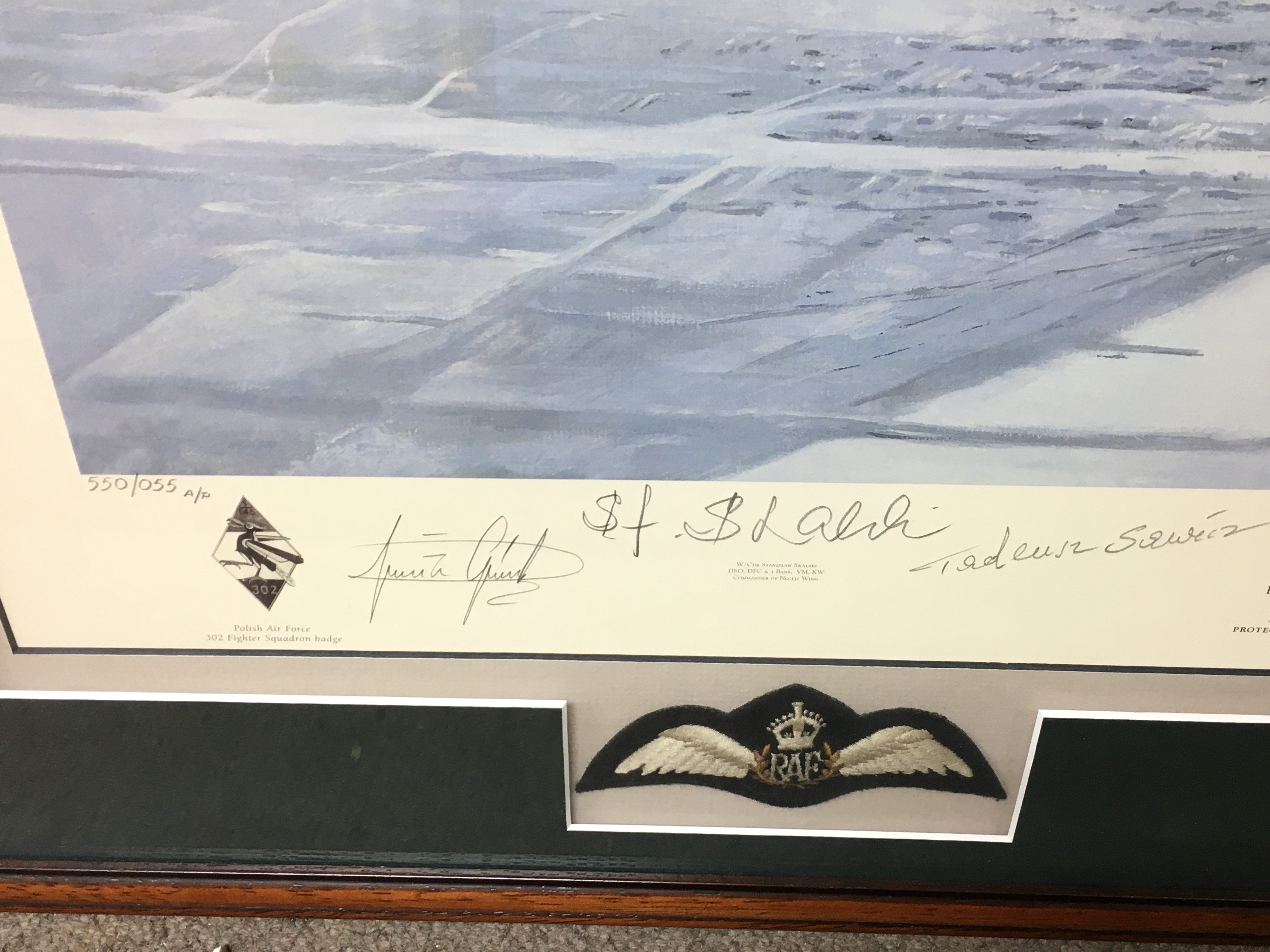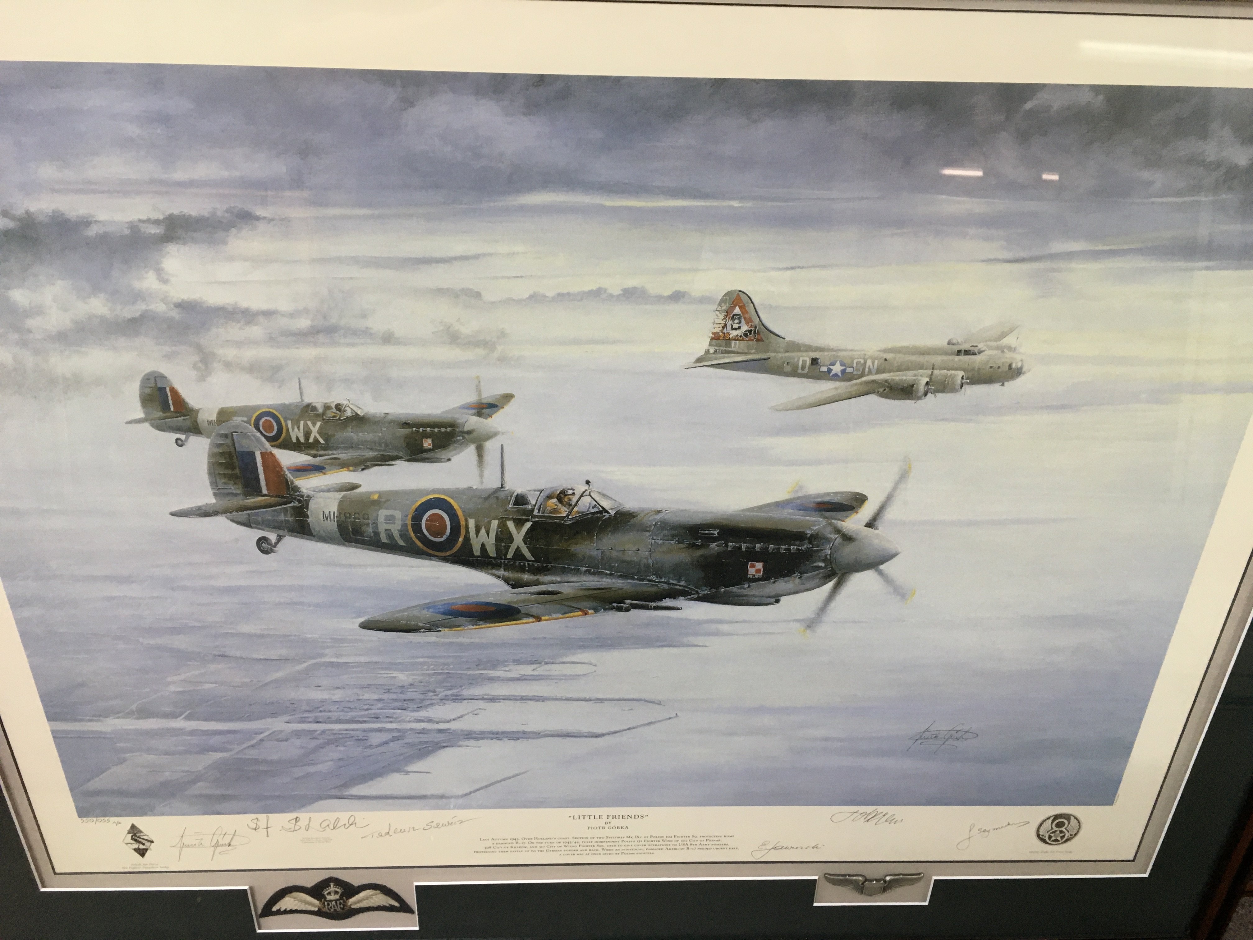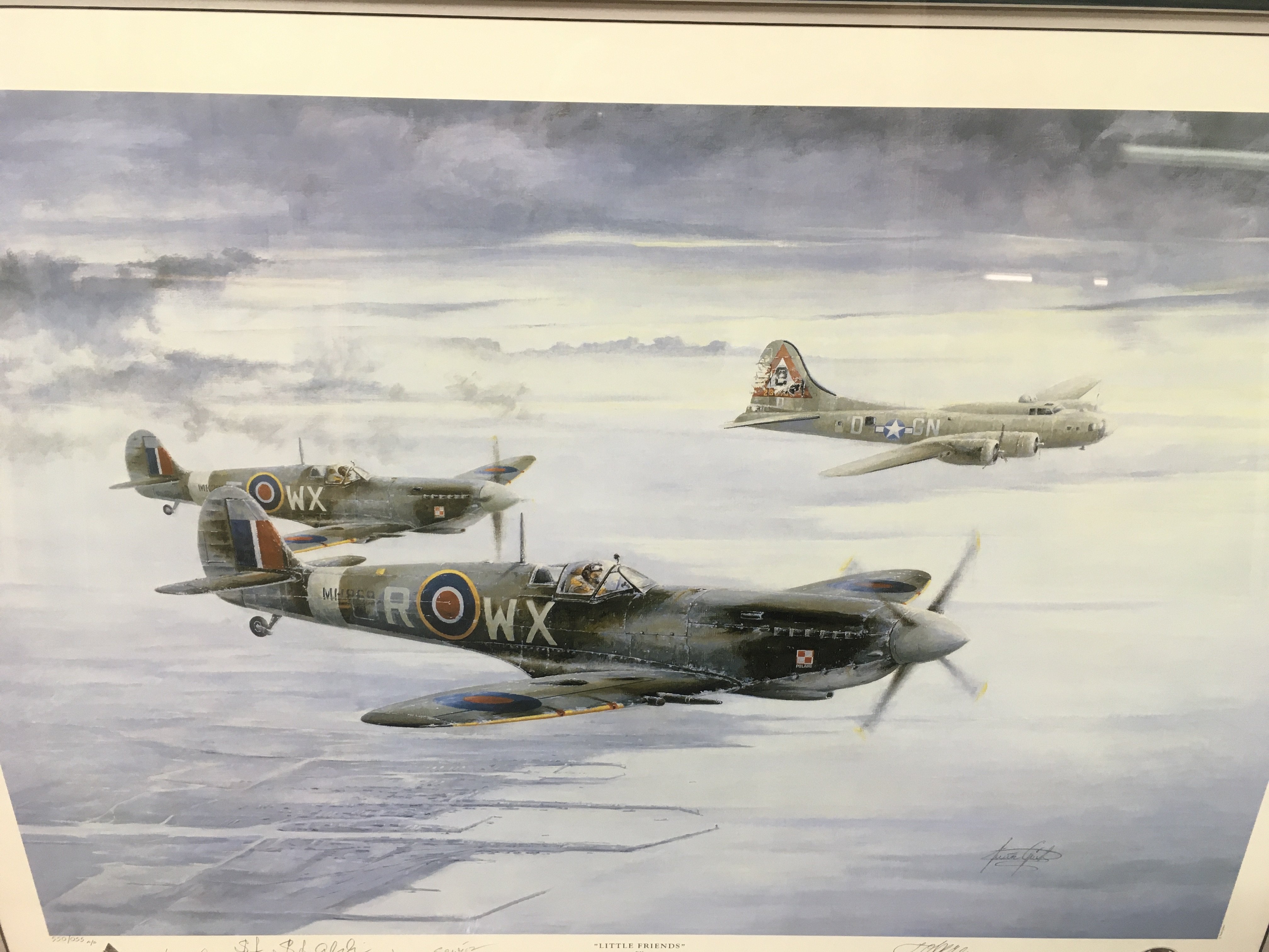 A multi signed limited edition print titled little friends. Signatures by artist and 5 aircrew. Comes with COA and in conservation frame. 103cm by 83. Postage D
