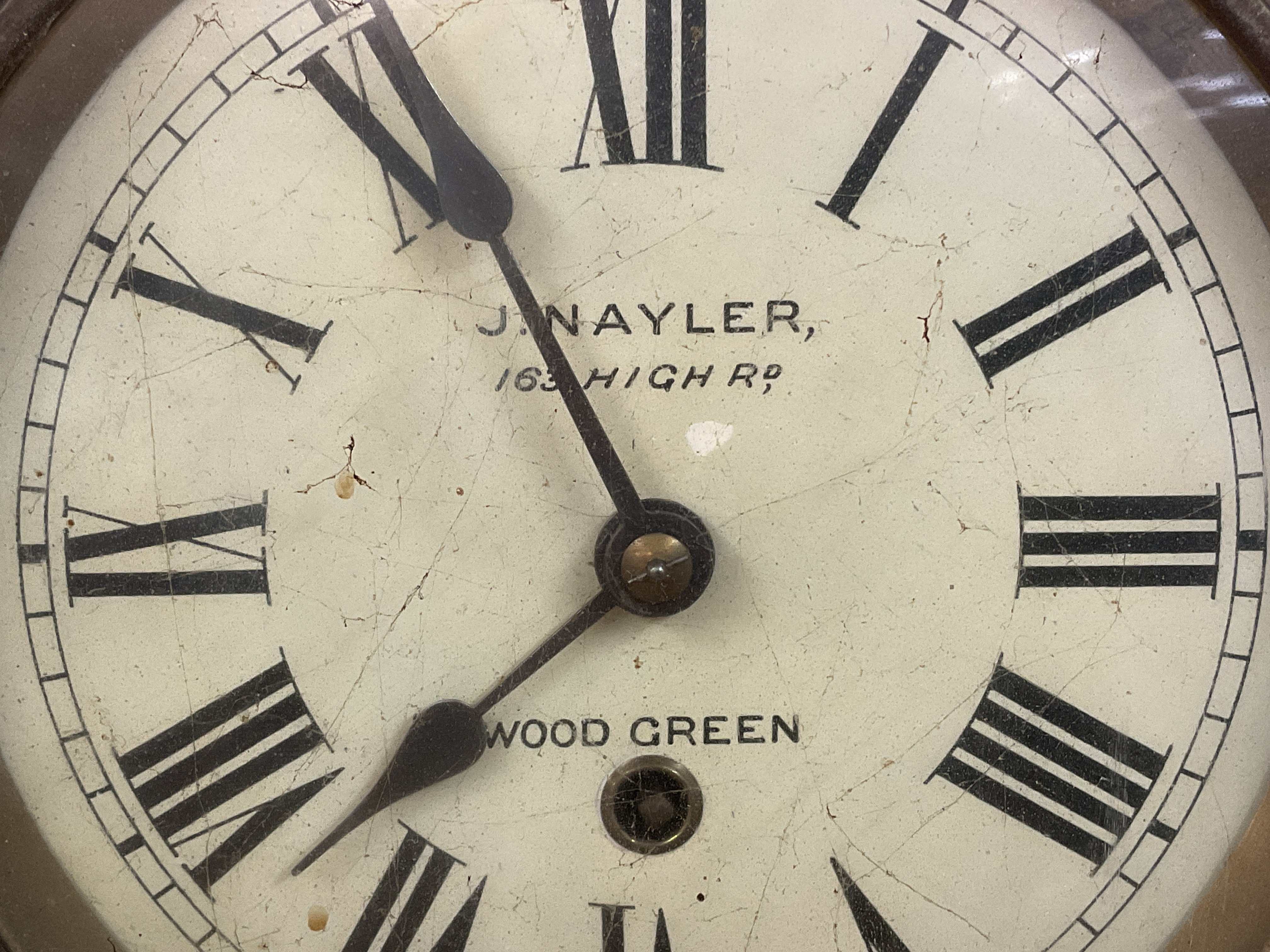 A late 19th century wall clock, J Nayler 163 High Road ,Wood Green. This lot cannot be Posted