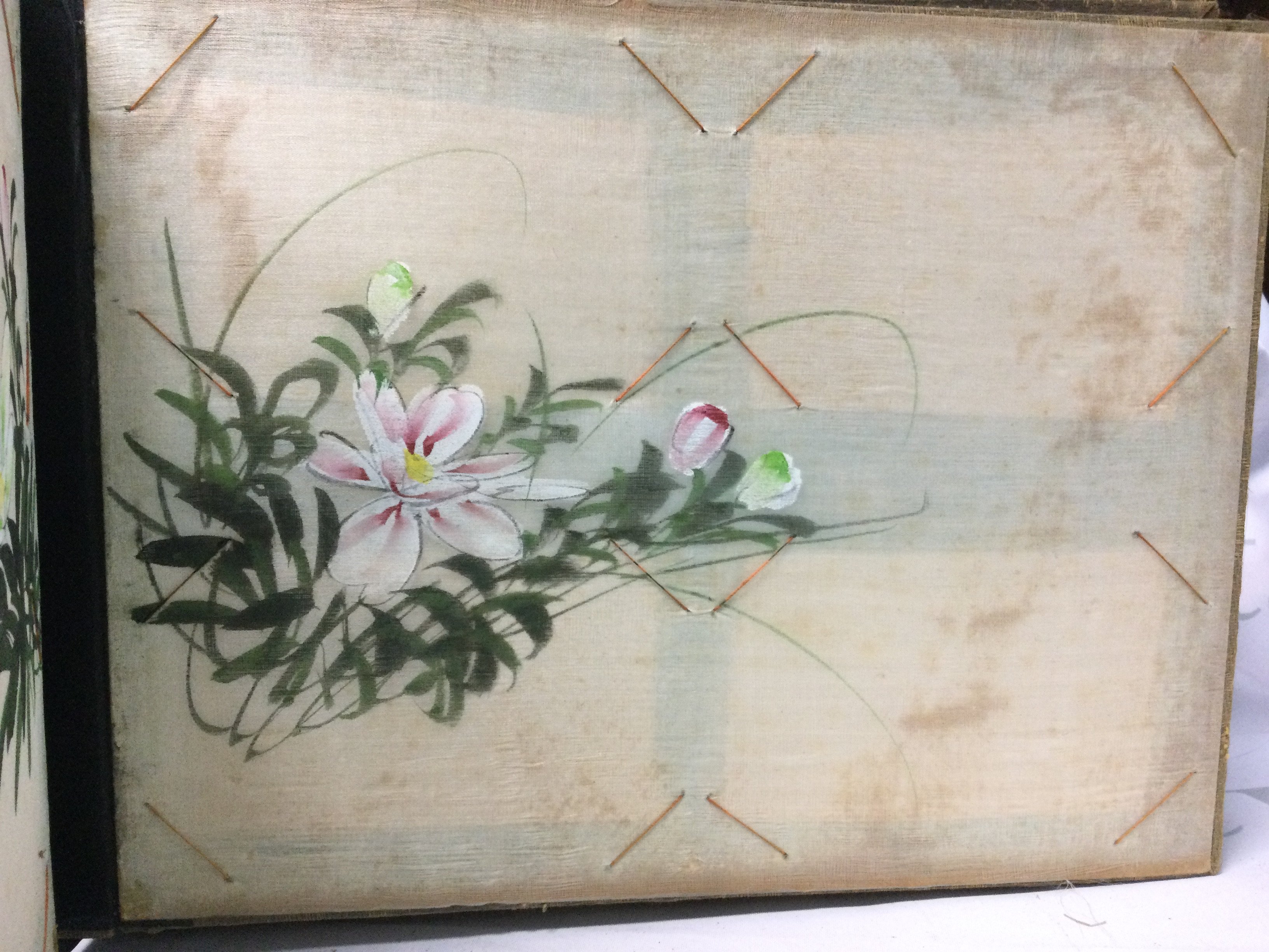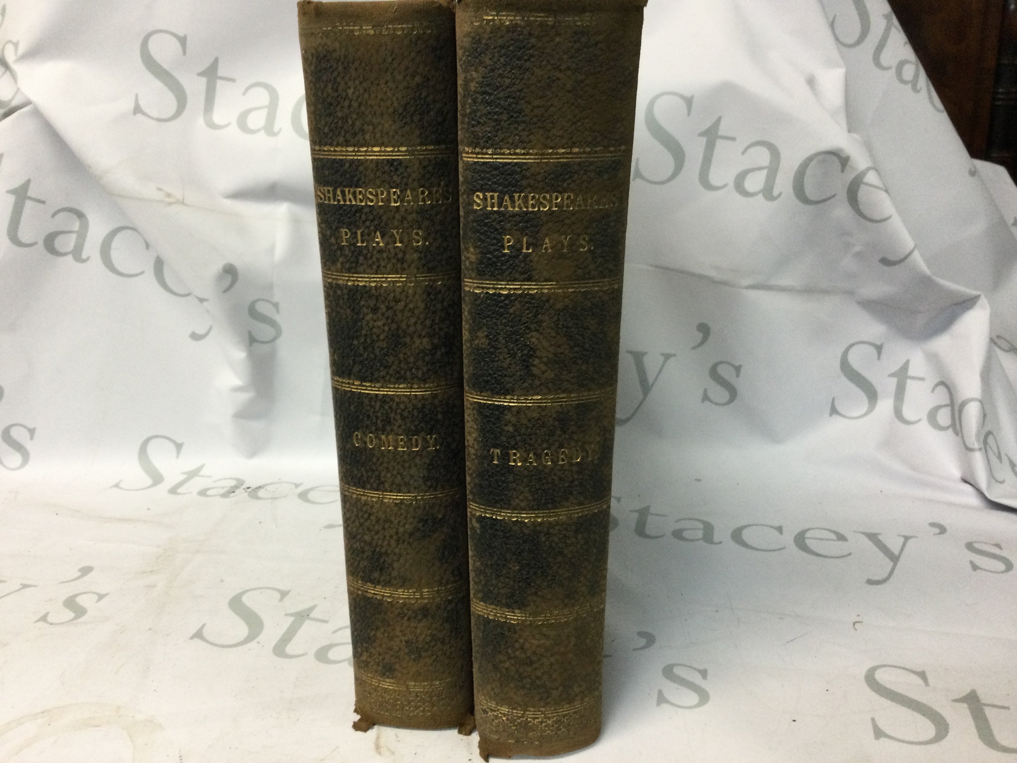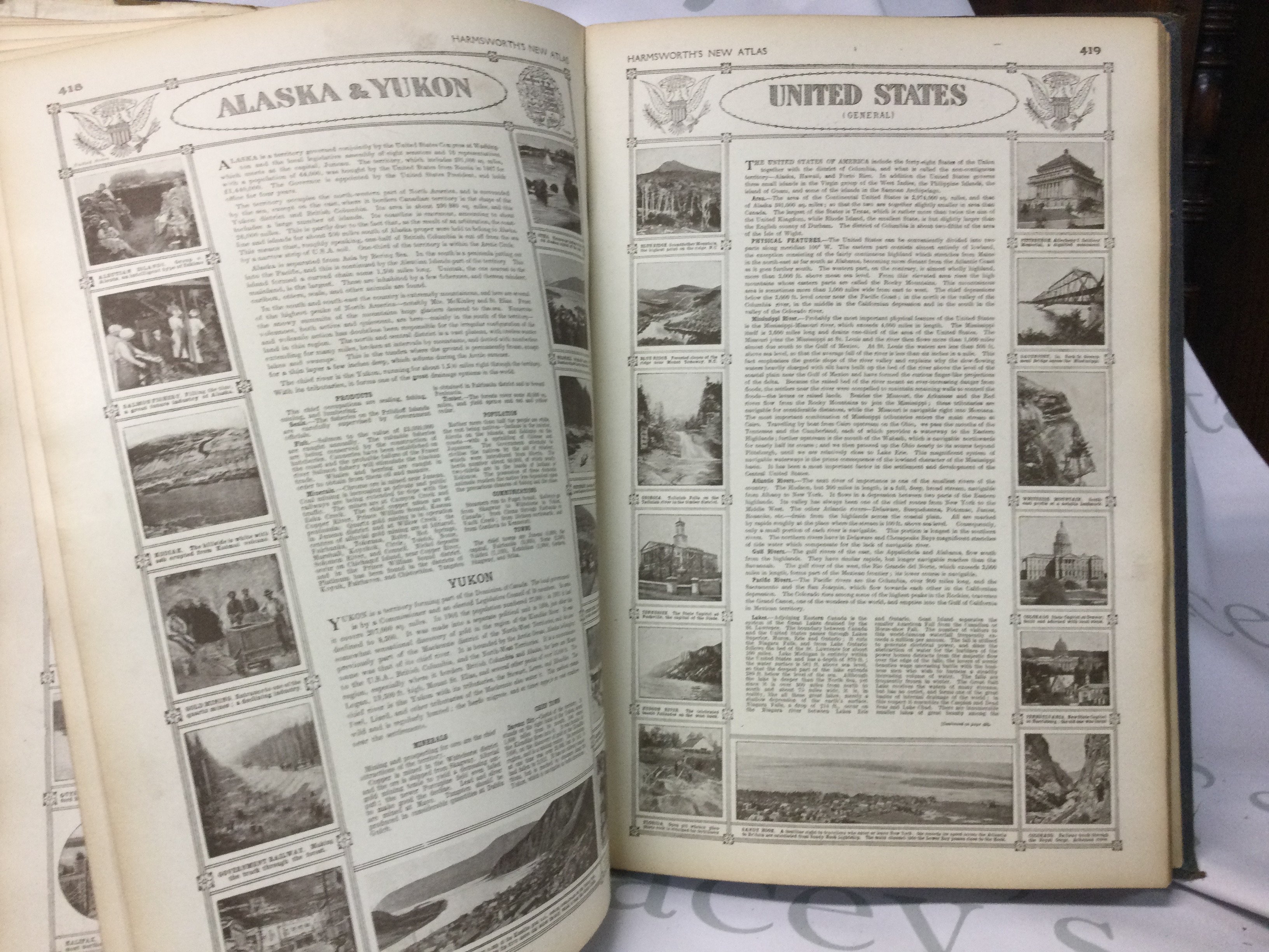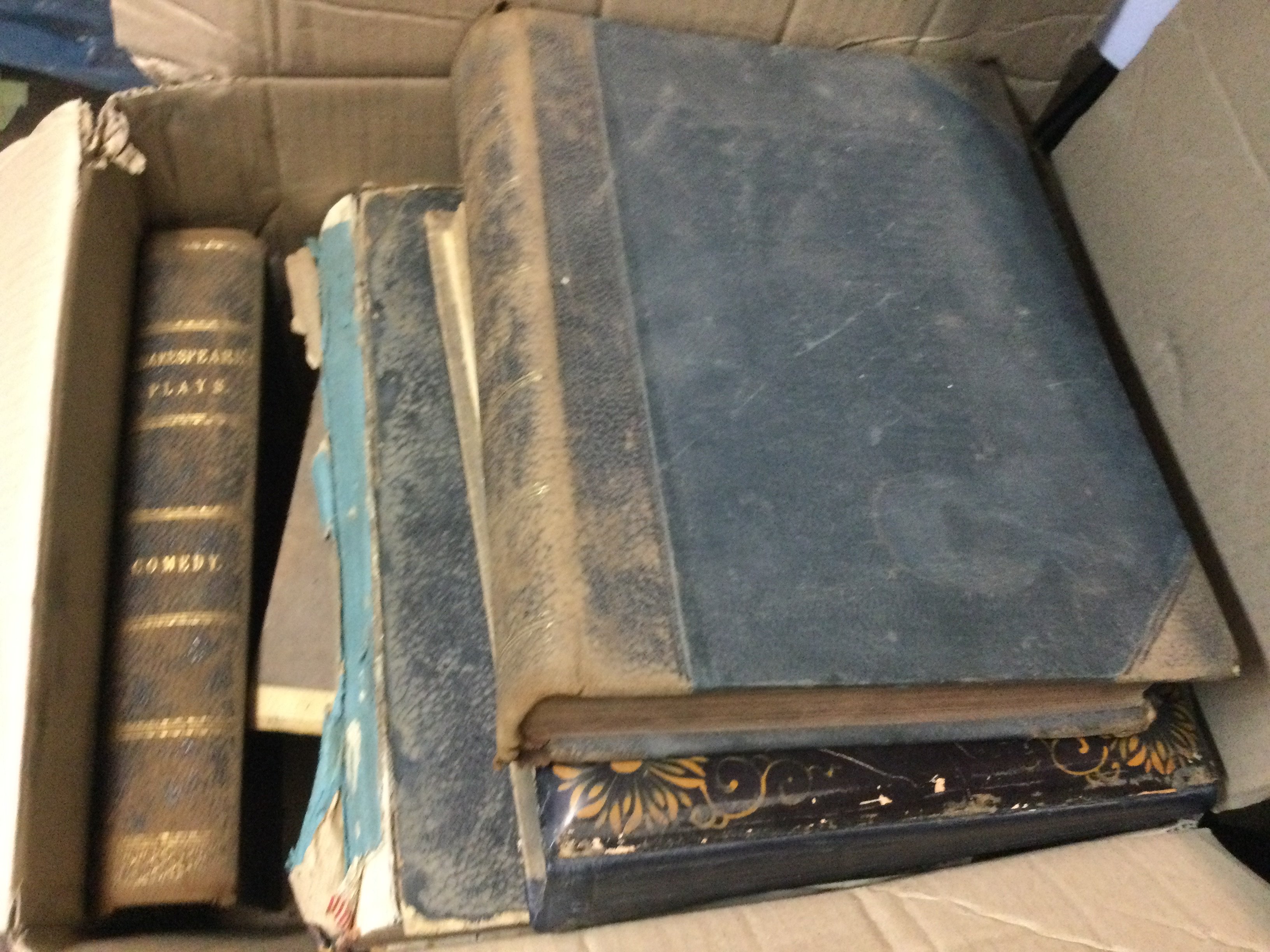 Chinese silk paper paintings of architecture, flowers etc. Also there are 2 Shakespeare books with one containing the comedies and the other containing the tragedies, atlases and much more.