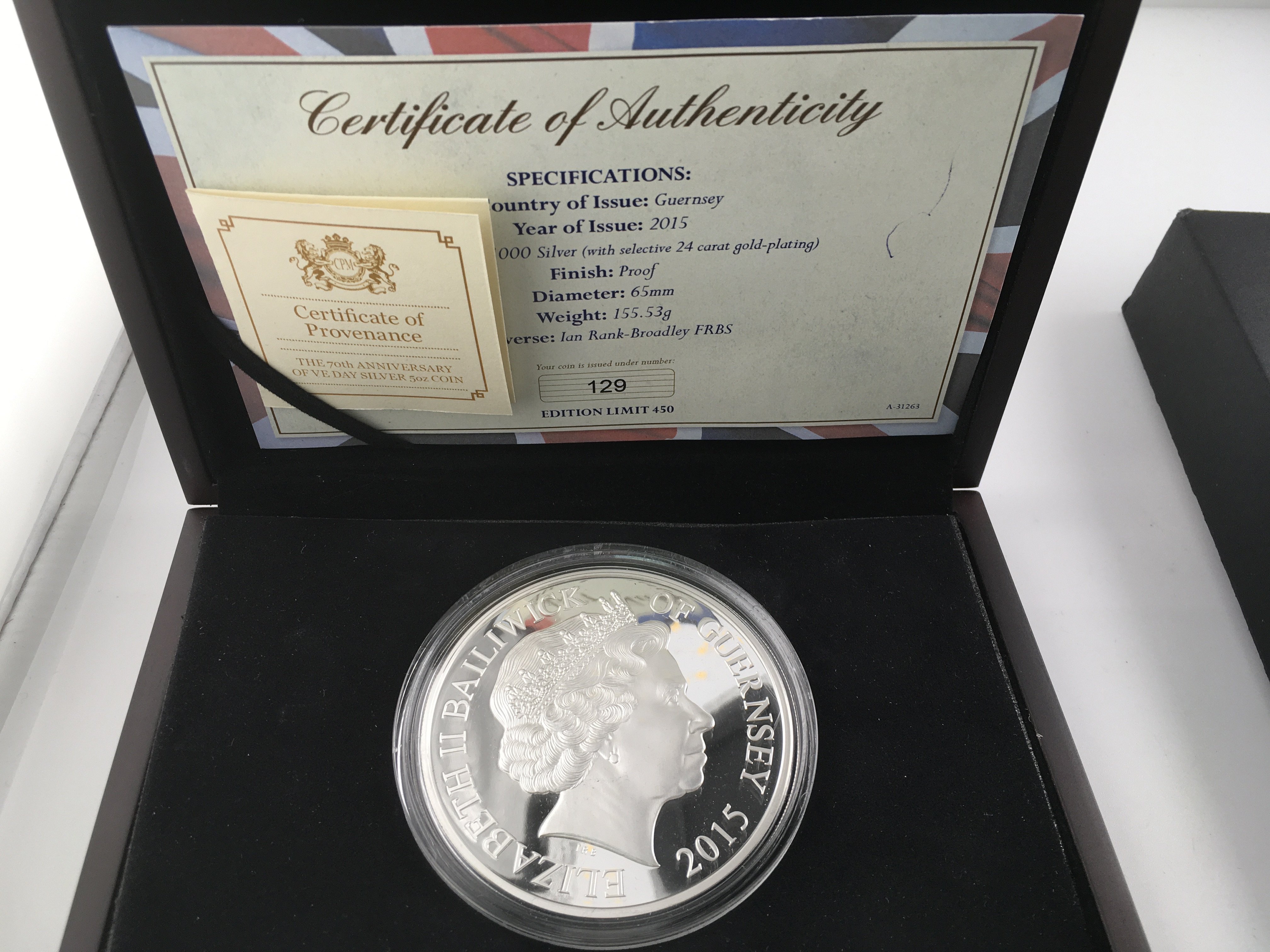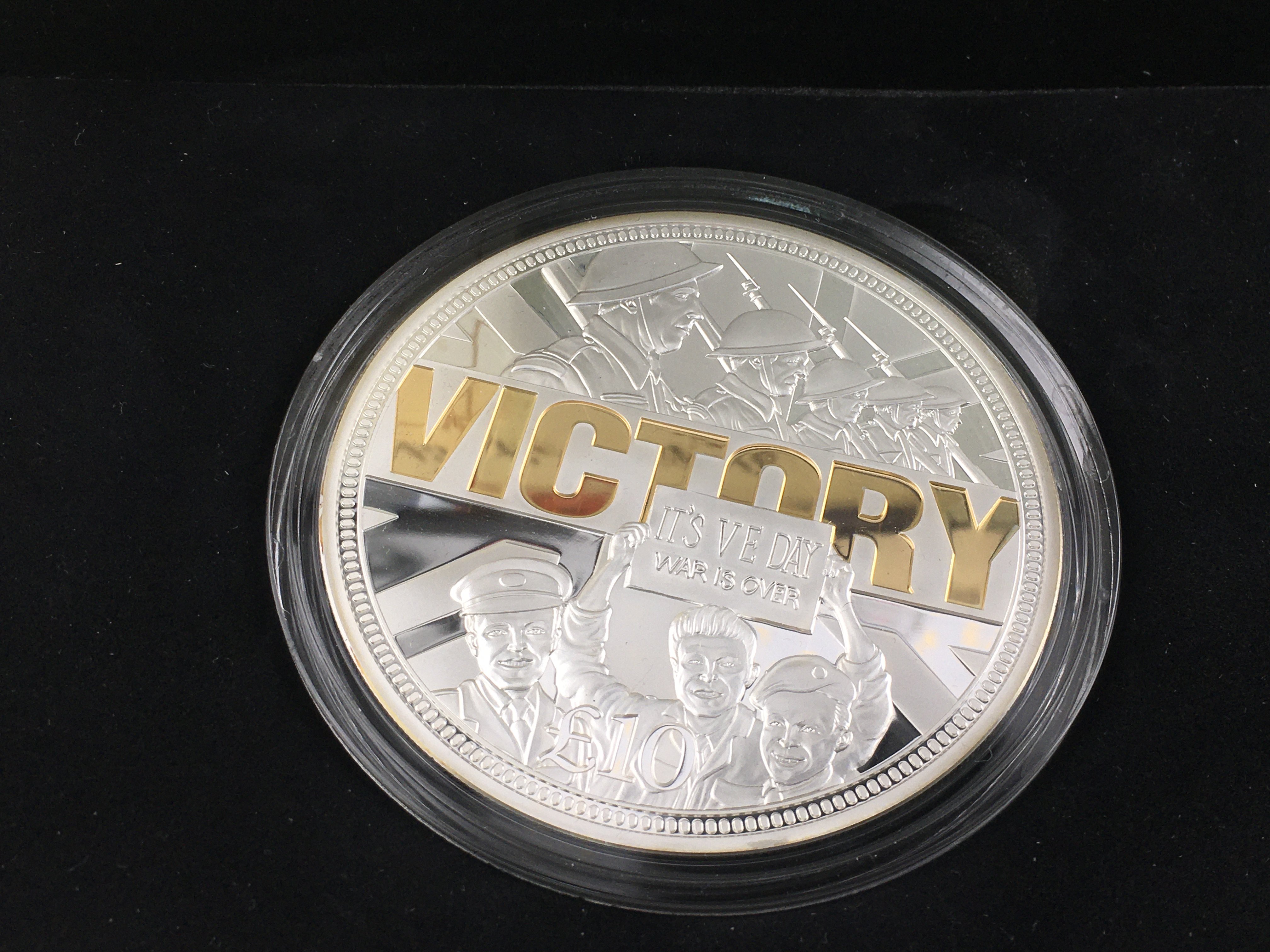 A 5oz 925 silver £10 70th anniversary of VE Day with COA. Postage A