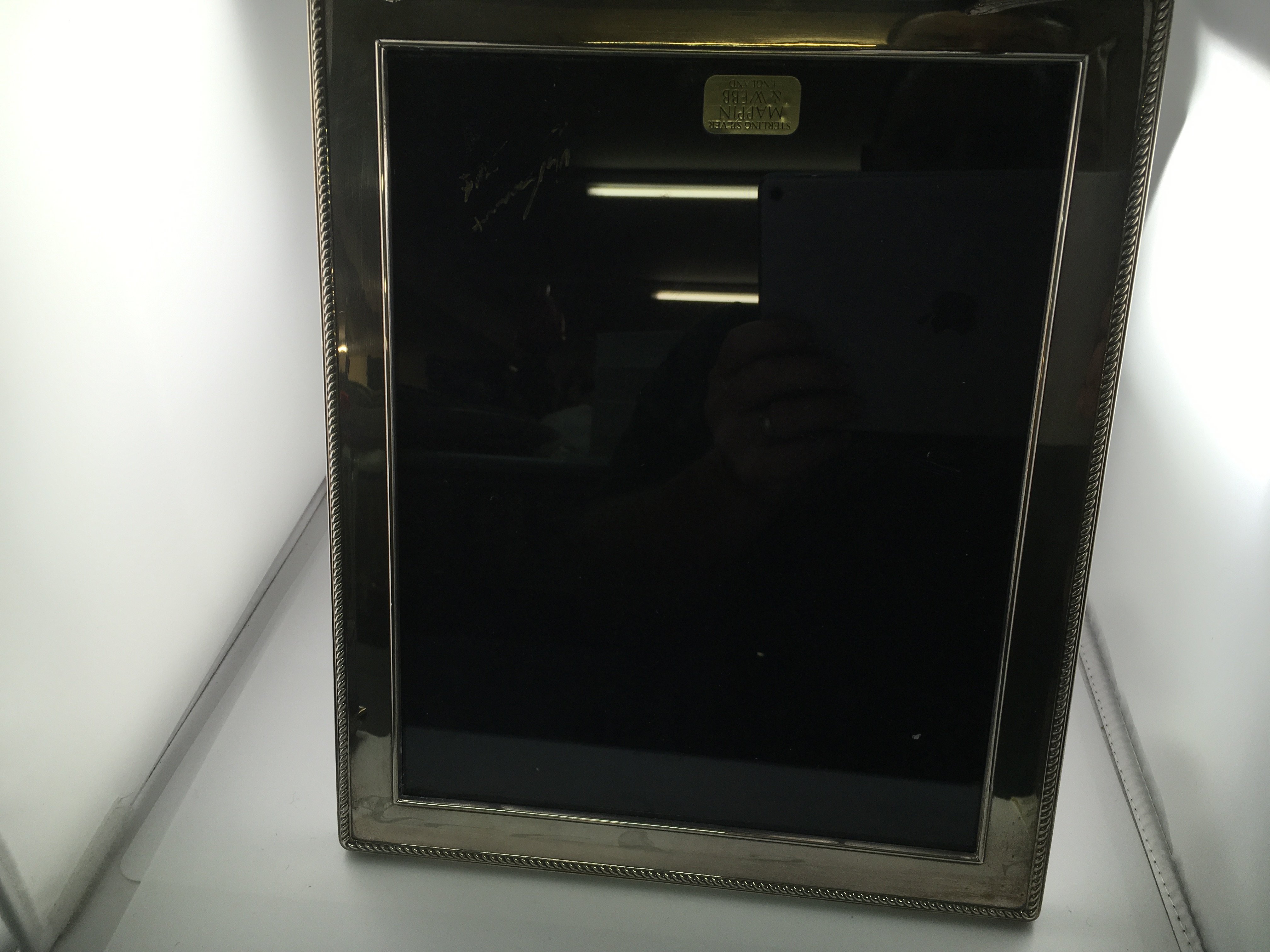 A silver hallmarked photo frame made by mappin and Webb. 25 by 30 cm