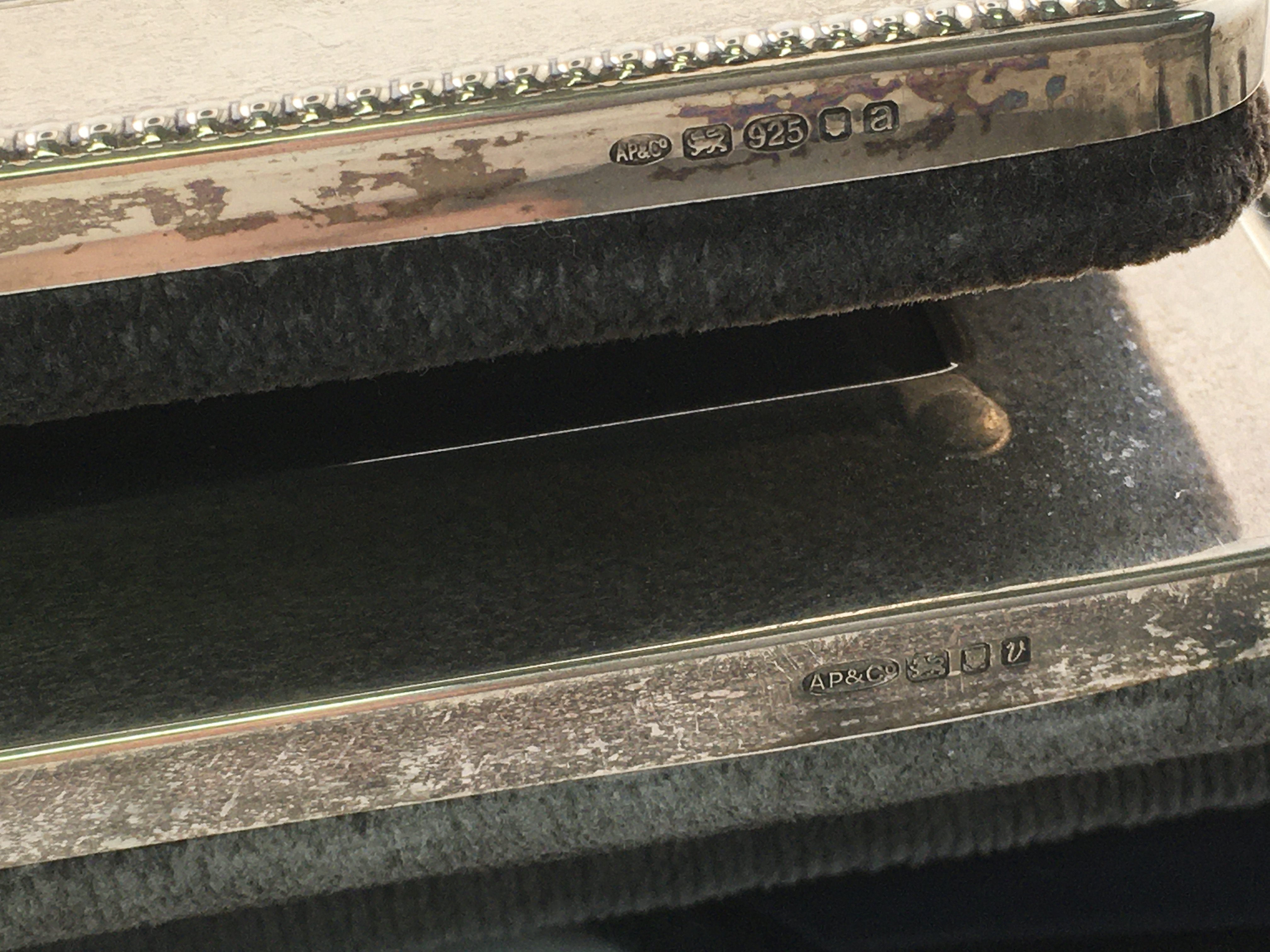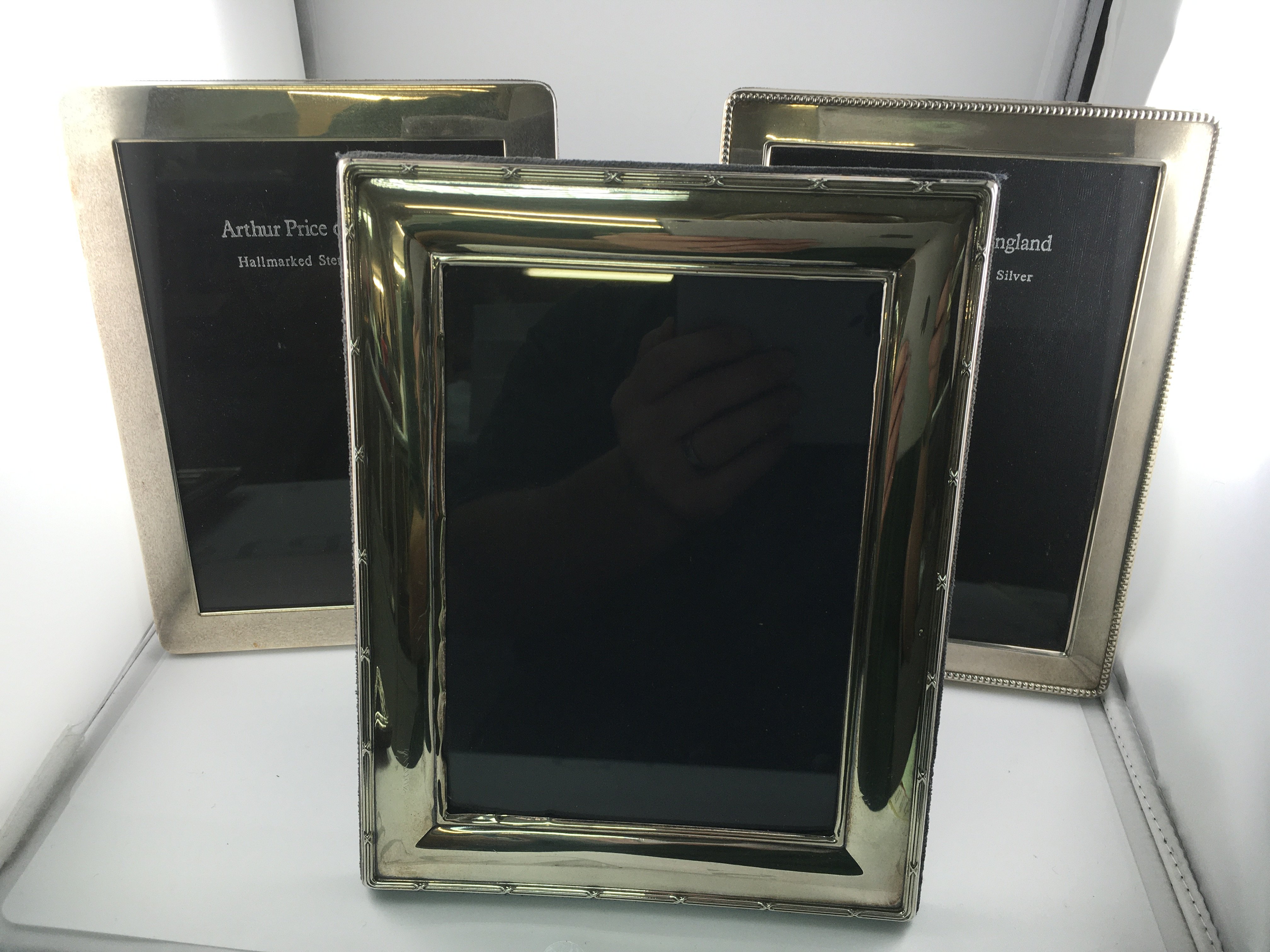 Three hallmarked silver photo frames. Approximately 18x23cm
