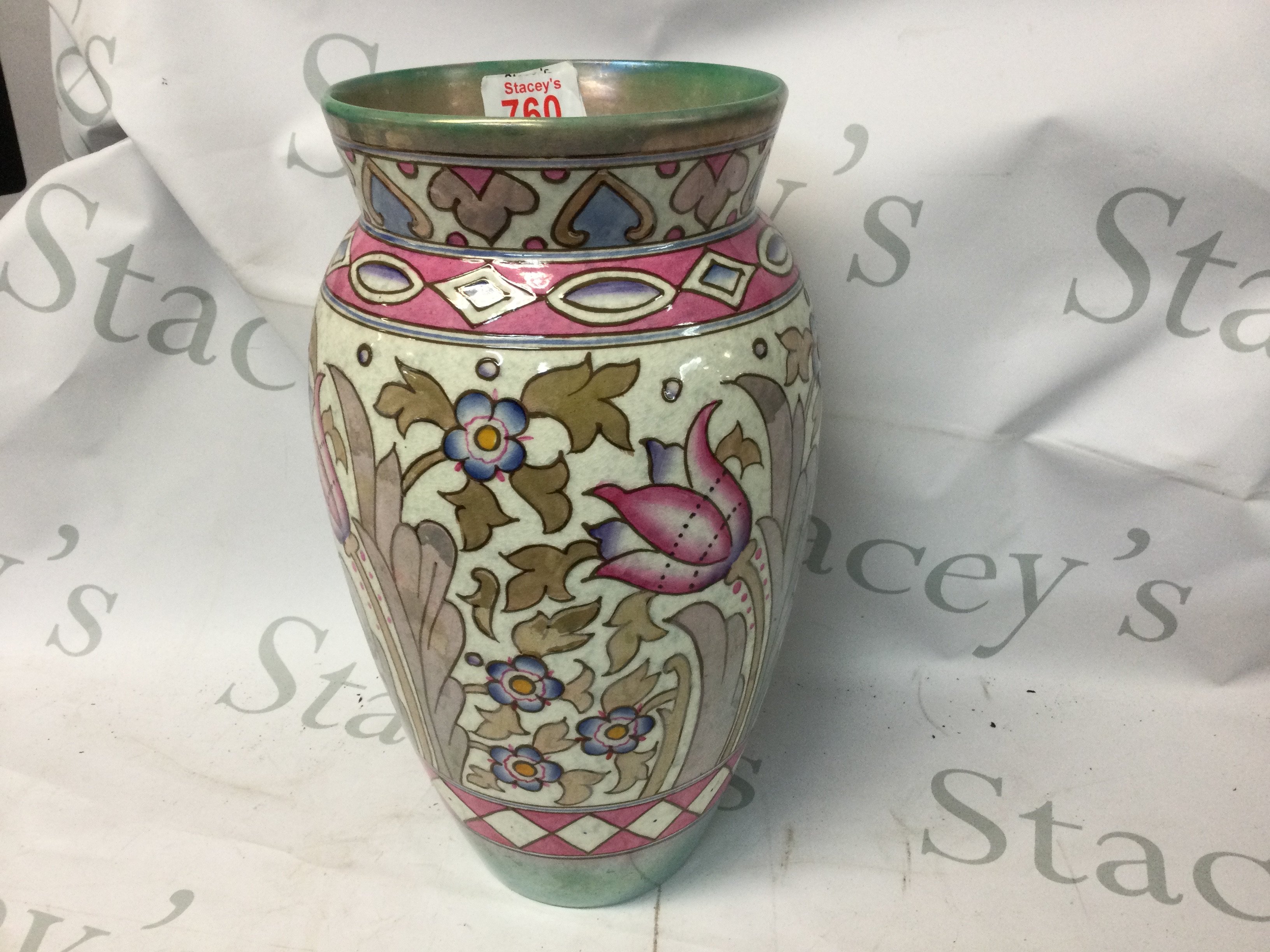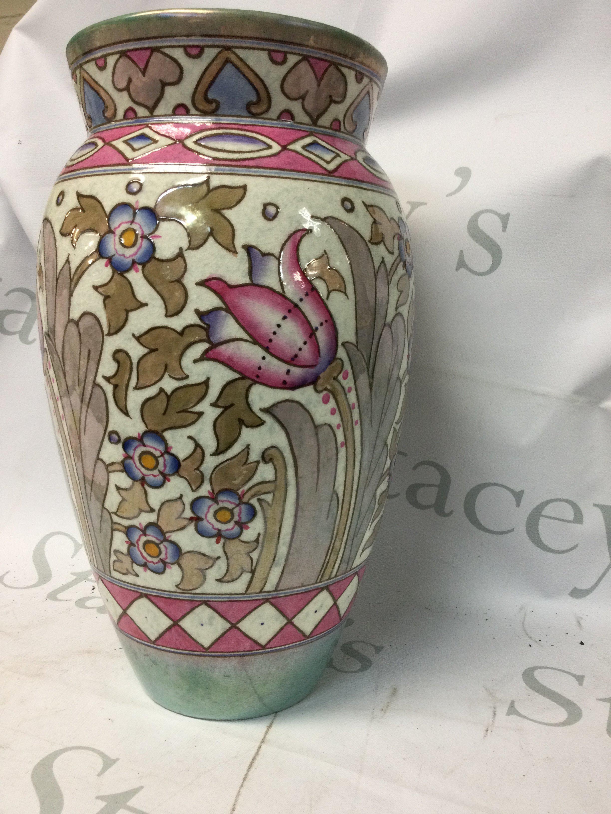 A Charlotte Read tube lined Art Deco vase decorated with flowers and foliage.32 cm .