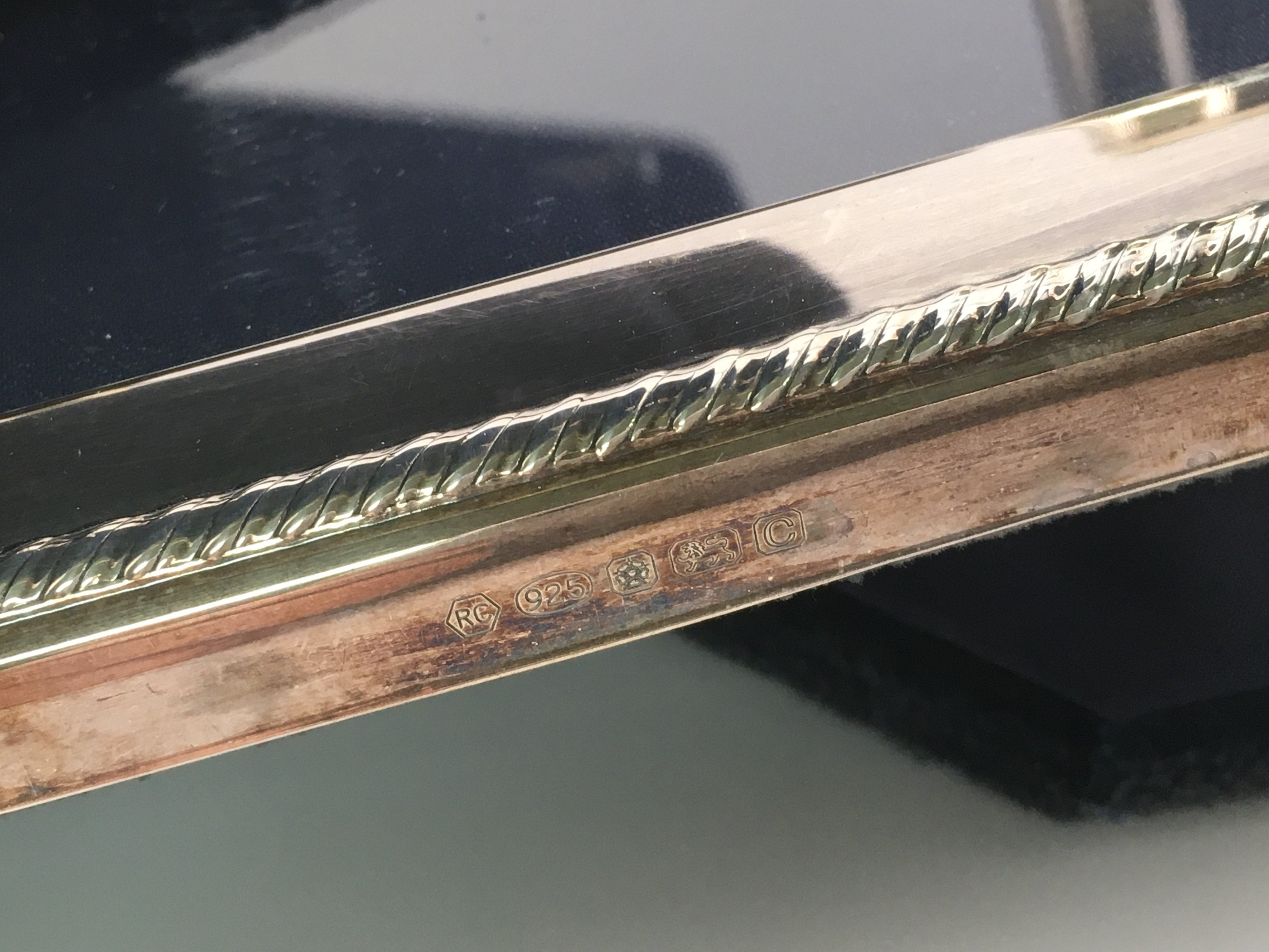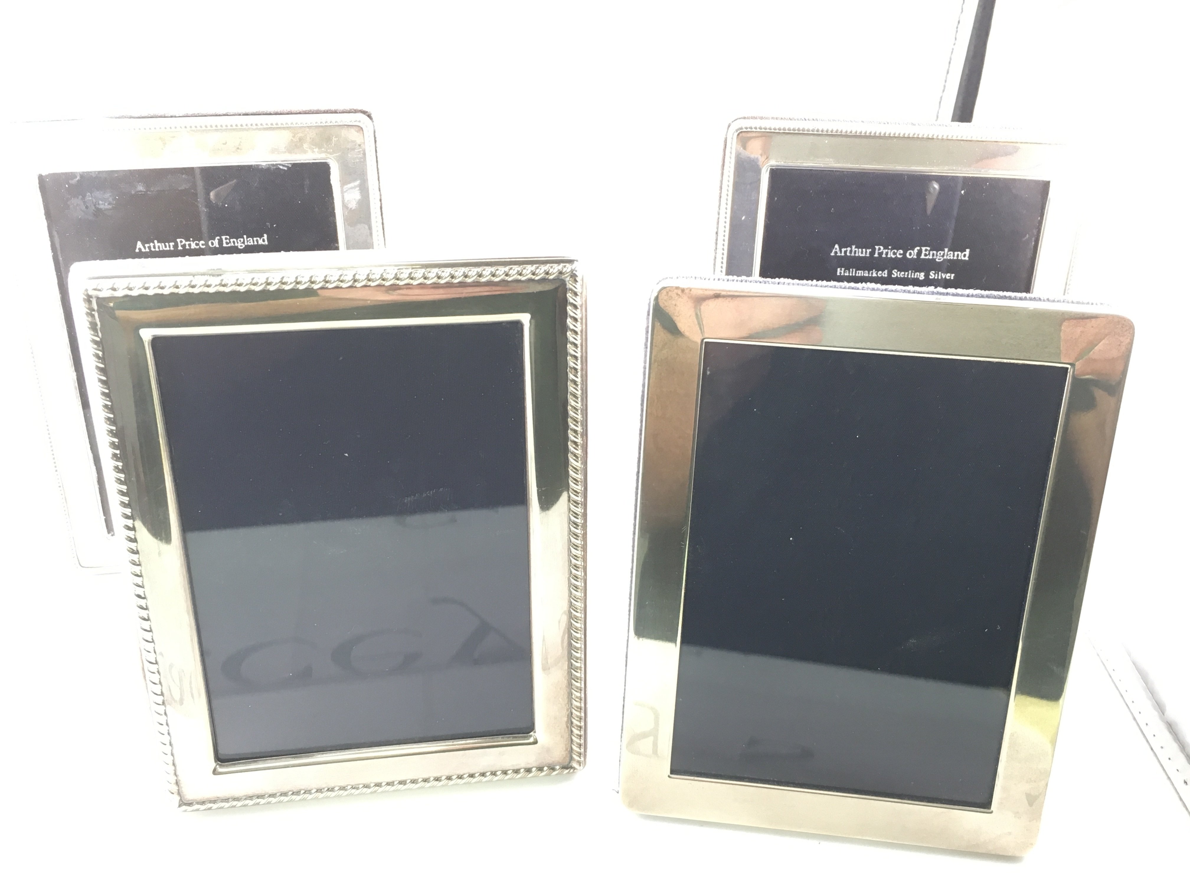 Four silver hallmarked photo frames. Approximately 12x16cm