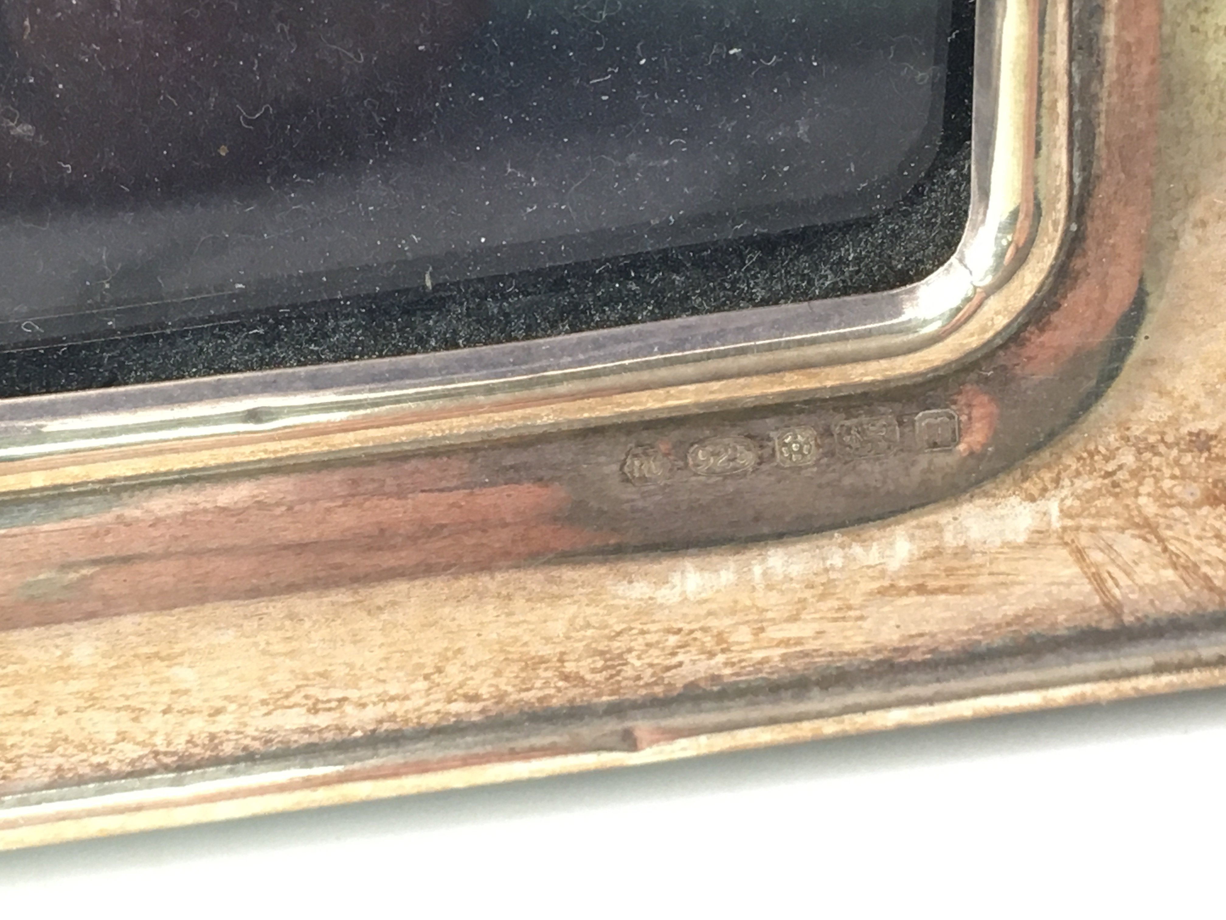 Two silver hallmarked photo frames. Larger frame is 14x19cm