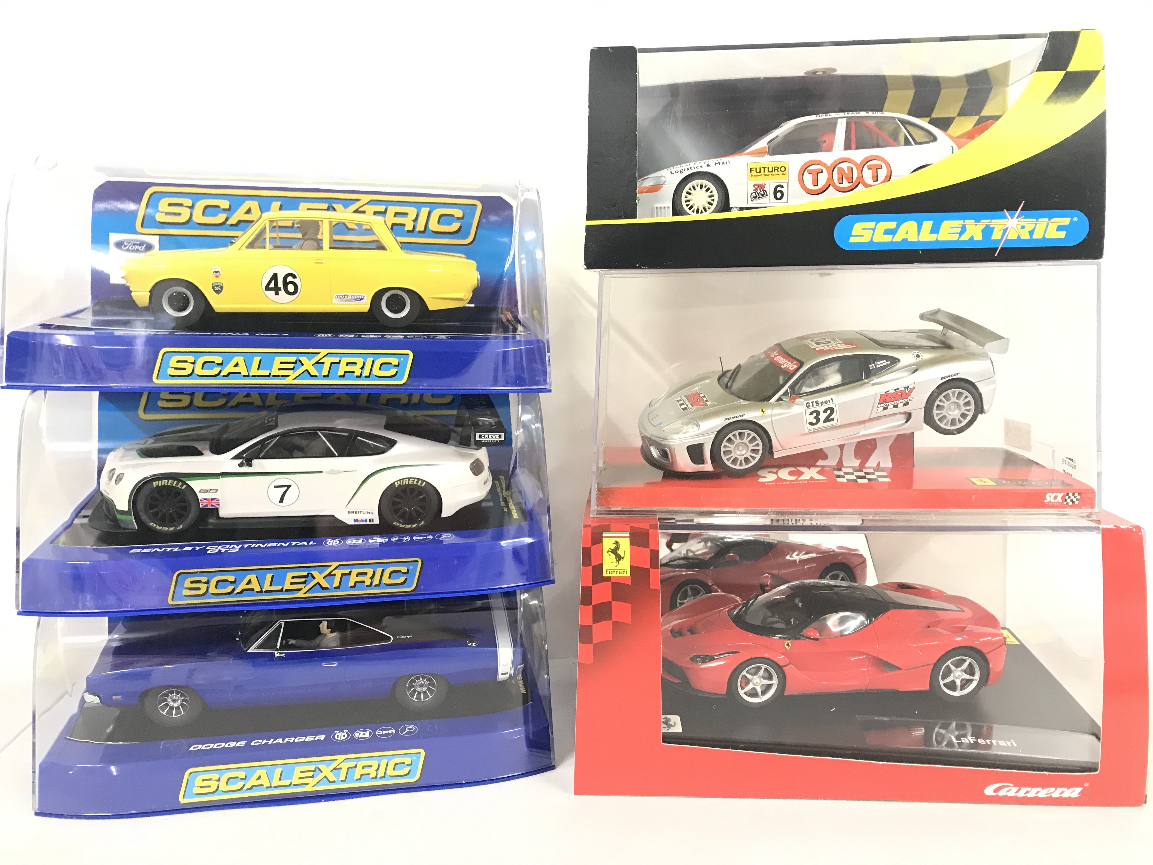 6 X Boxed Slot Cars including Scalextric. SCX and Carrera.