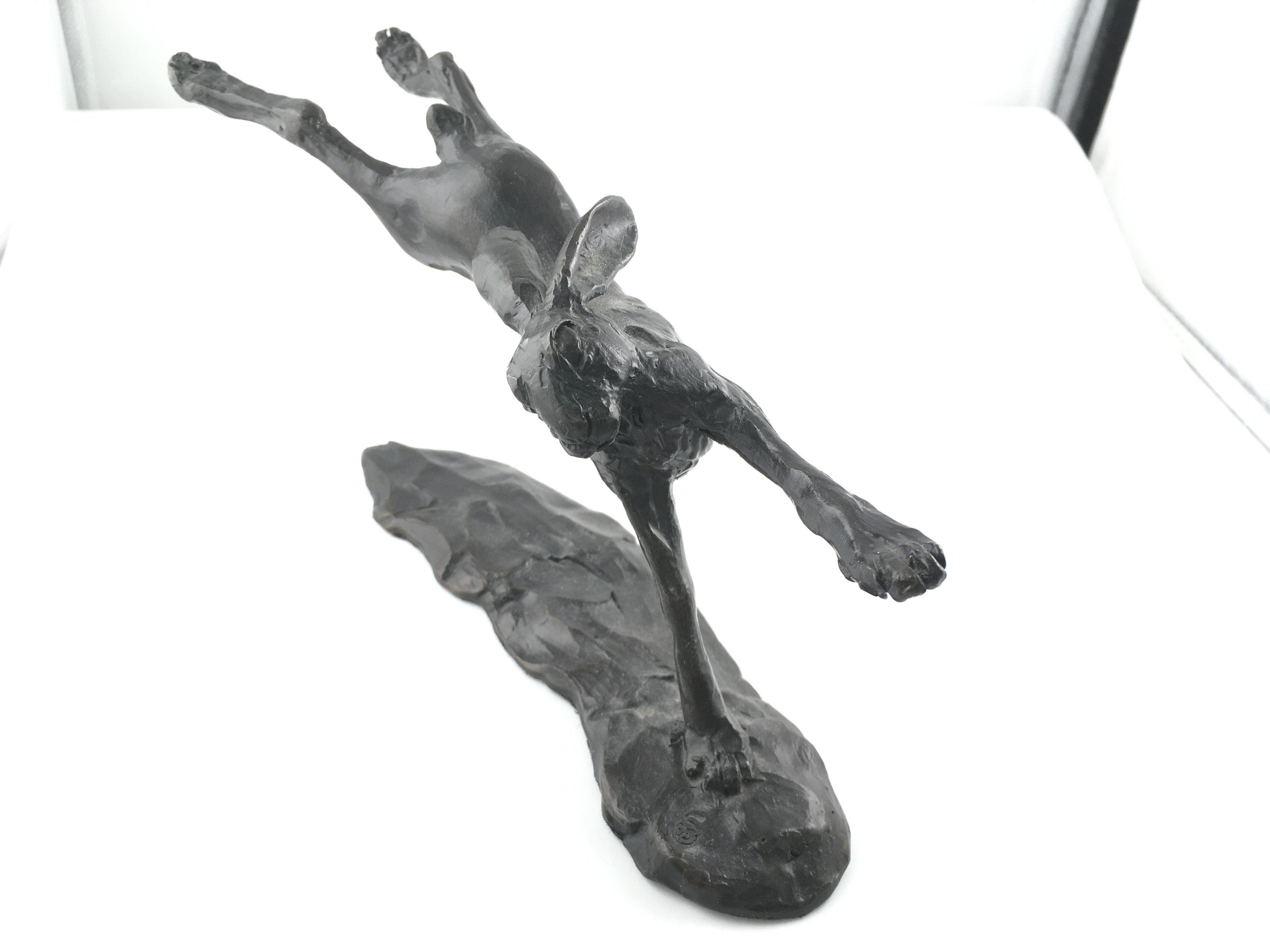 A Nelson and Forbes bronze flying hare. 22cm long and 10cm tall.Postage B