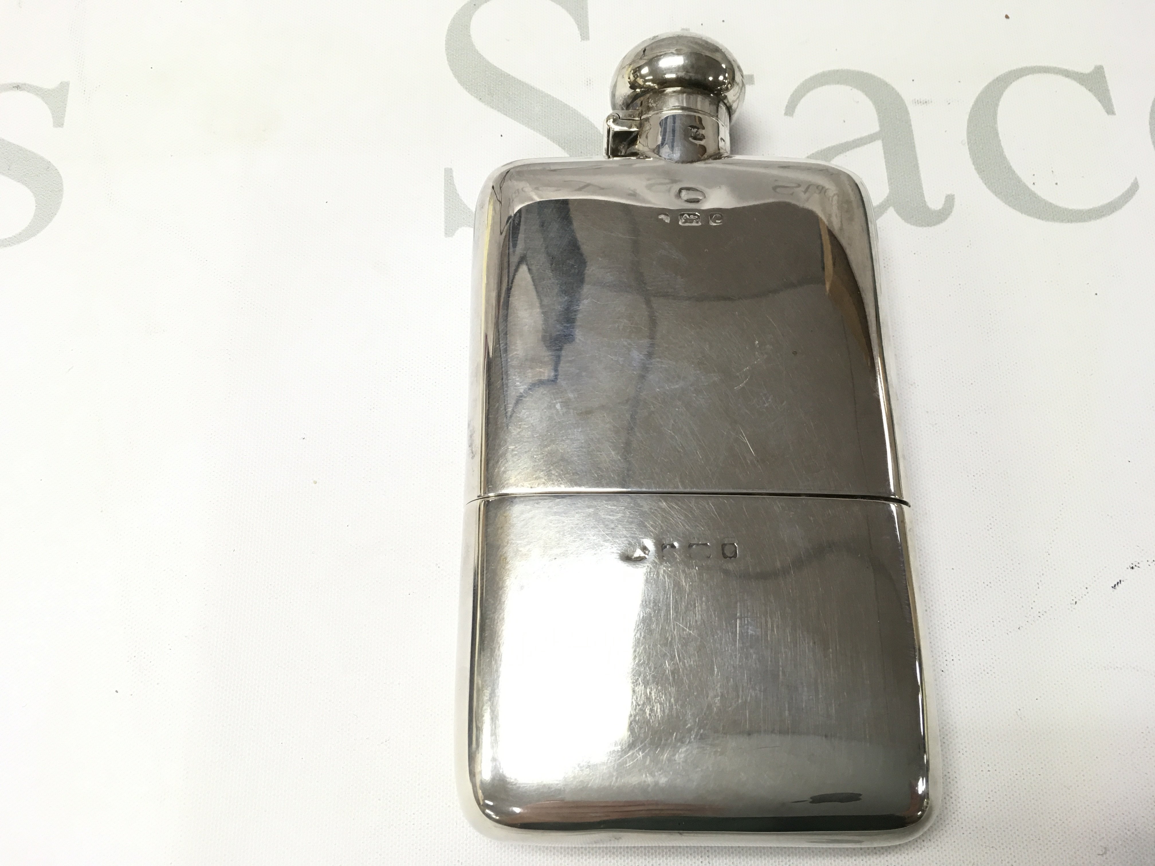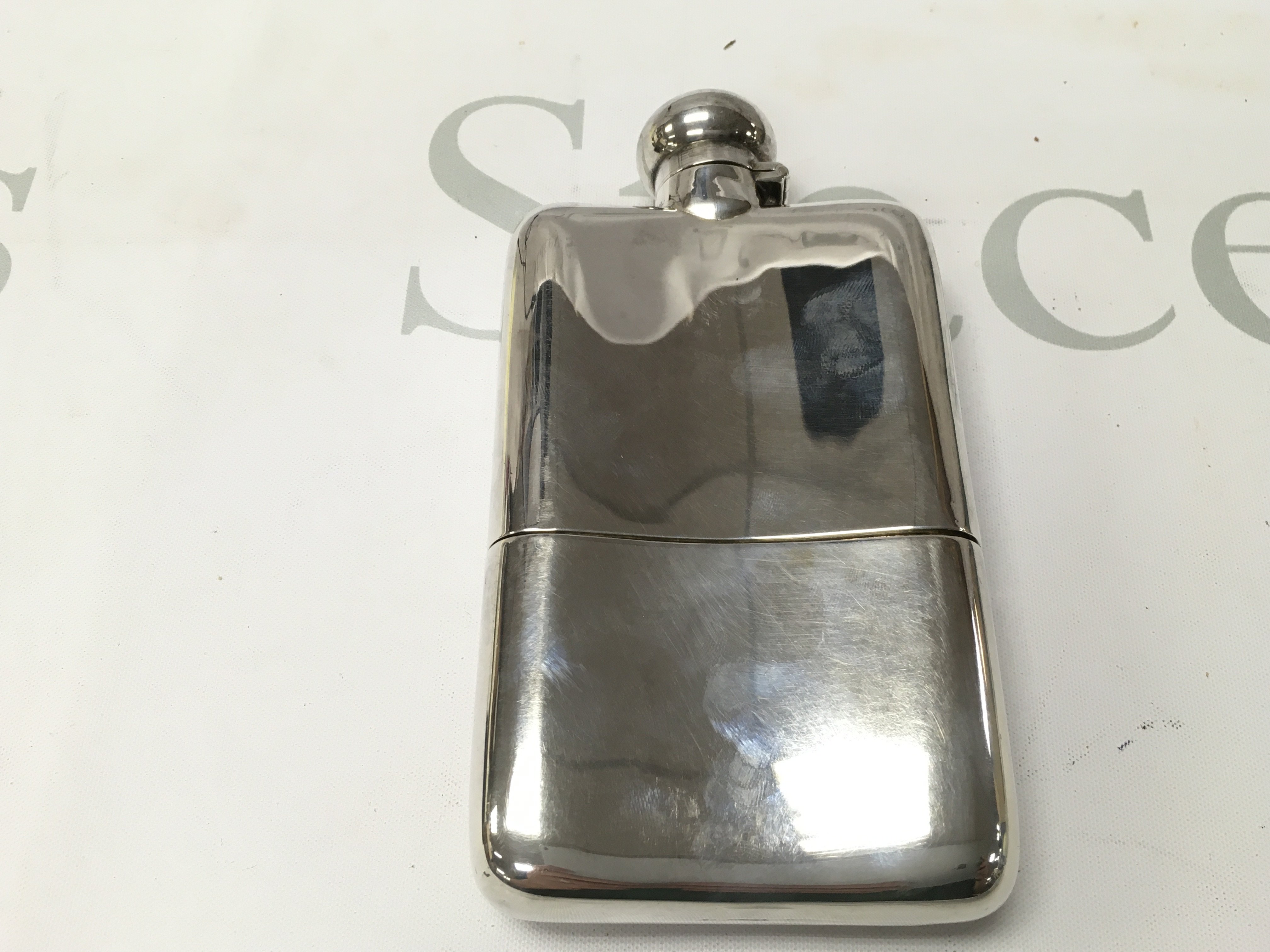 A silver Birmingham hallmarked hip flask. 196g 15x8cm Postage B