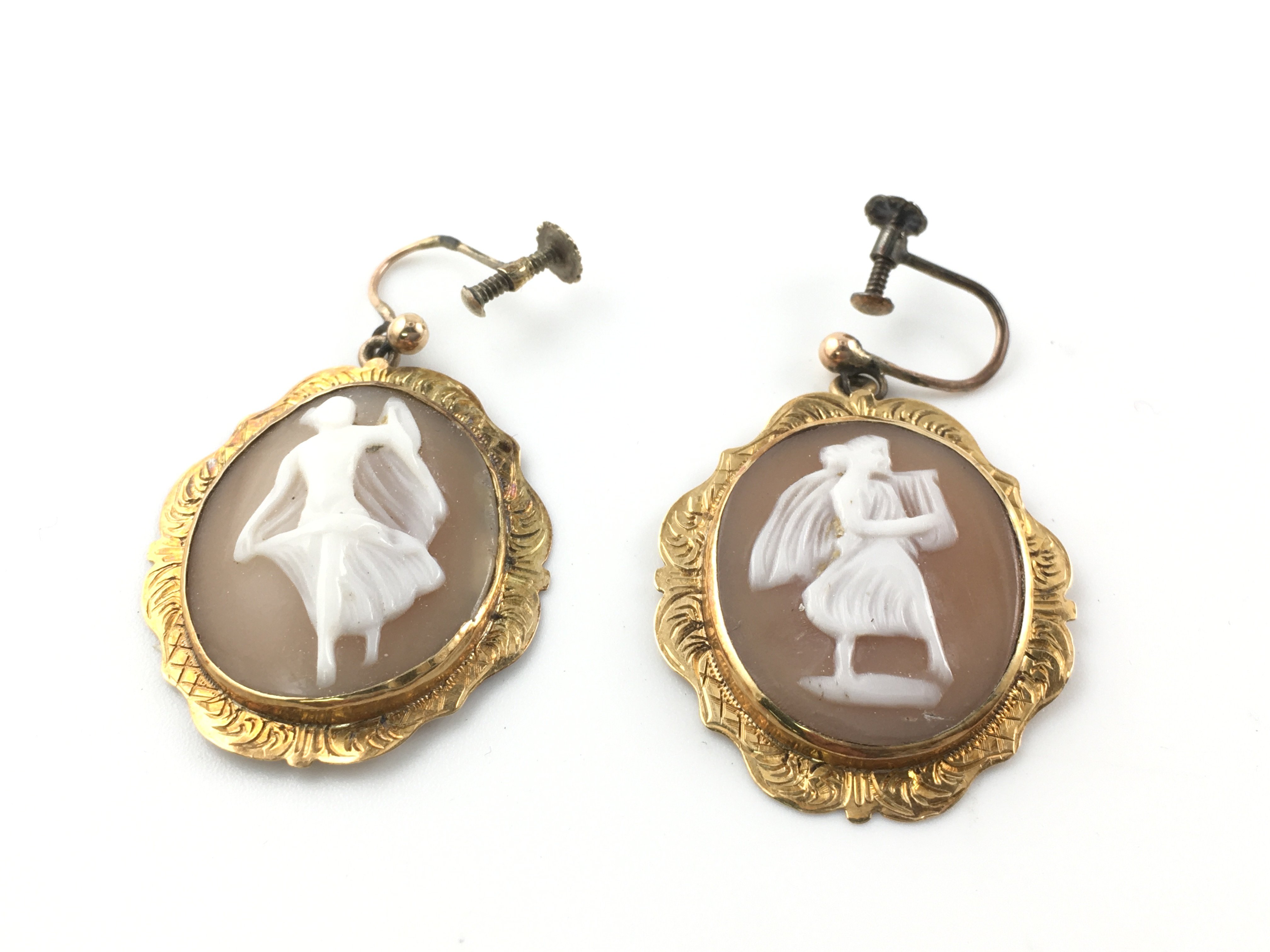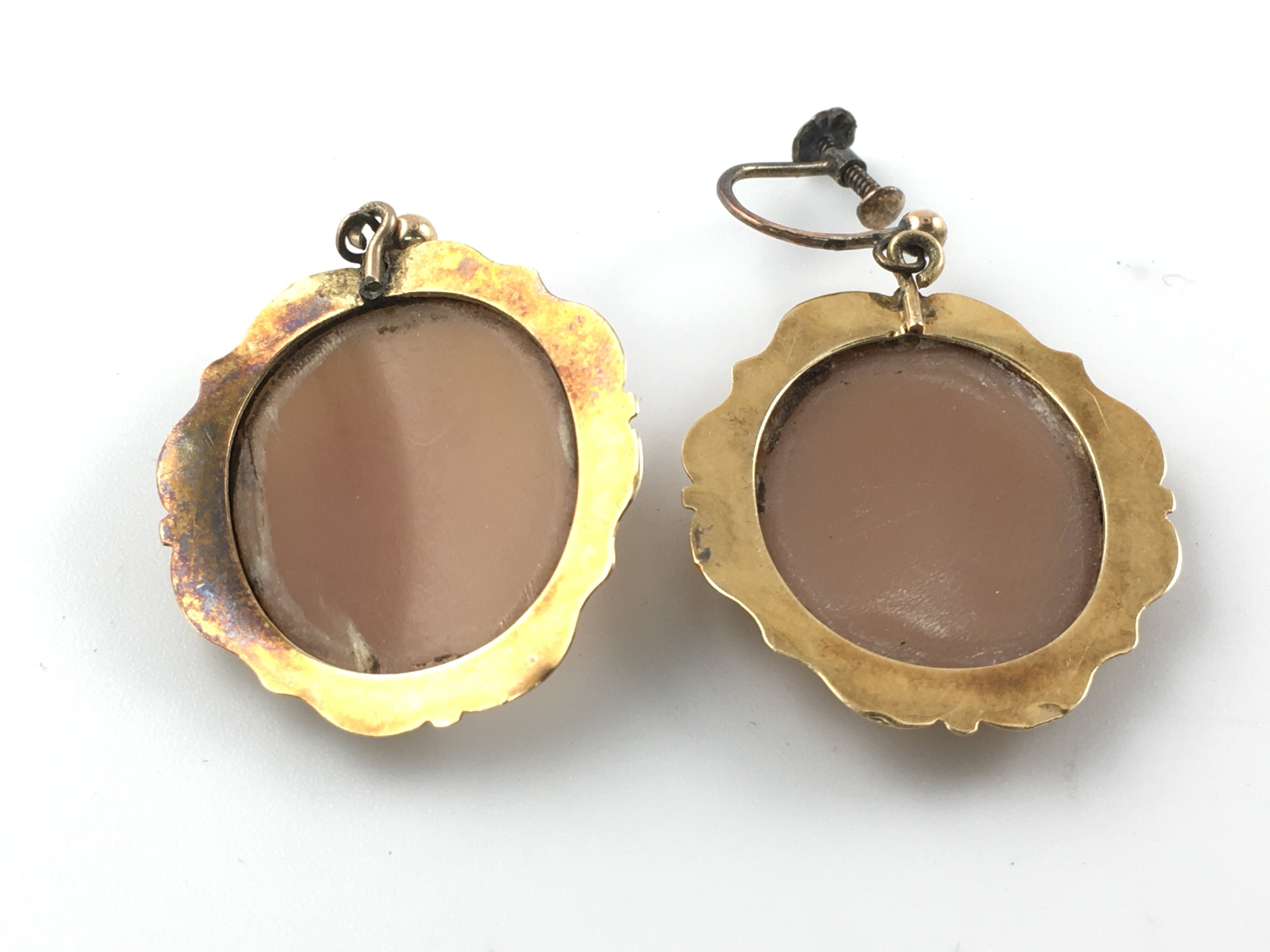 A pair of vintage cameo earrings. Approximately 30mm by 25mm Postage A