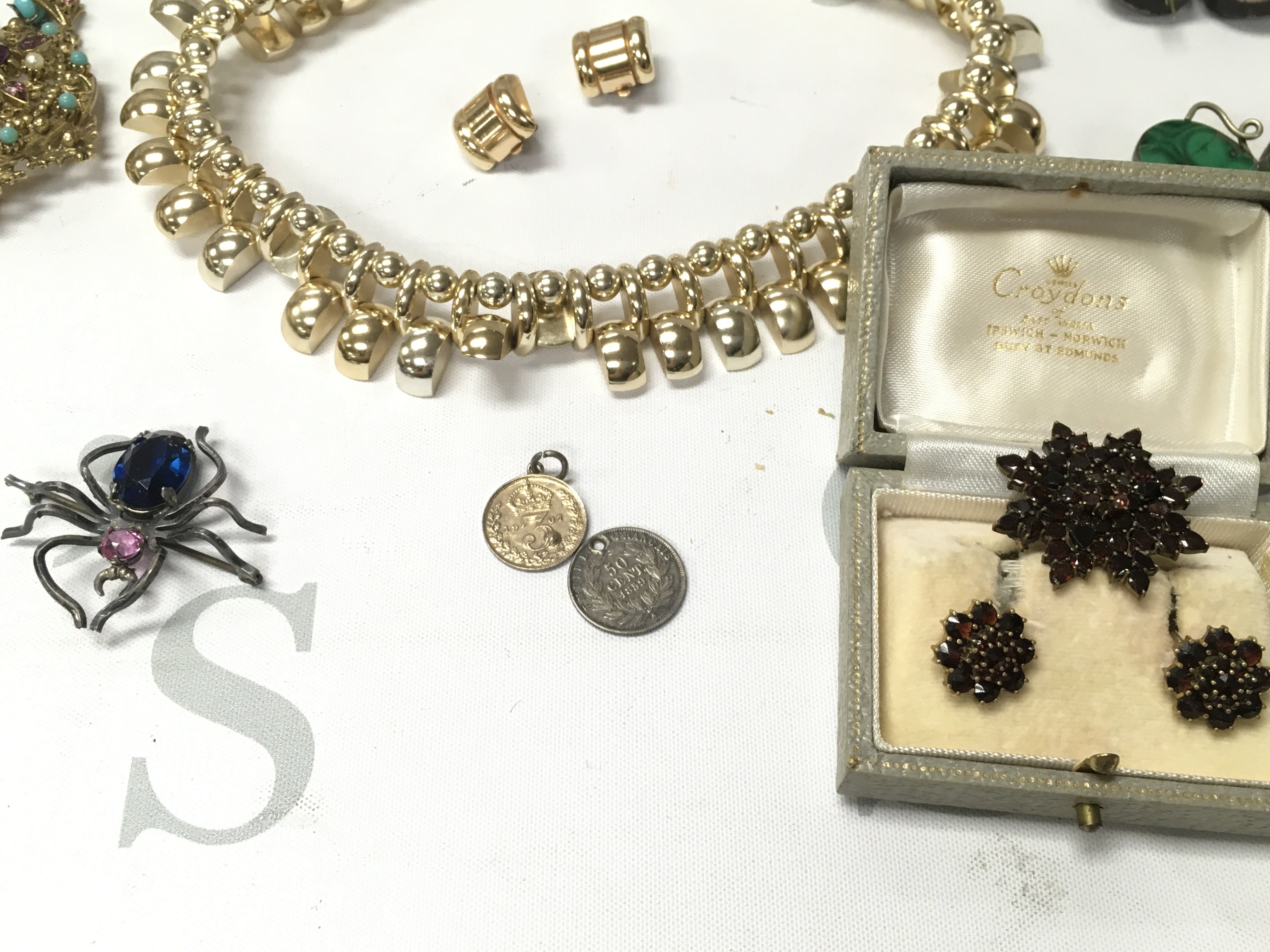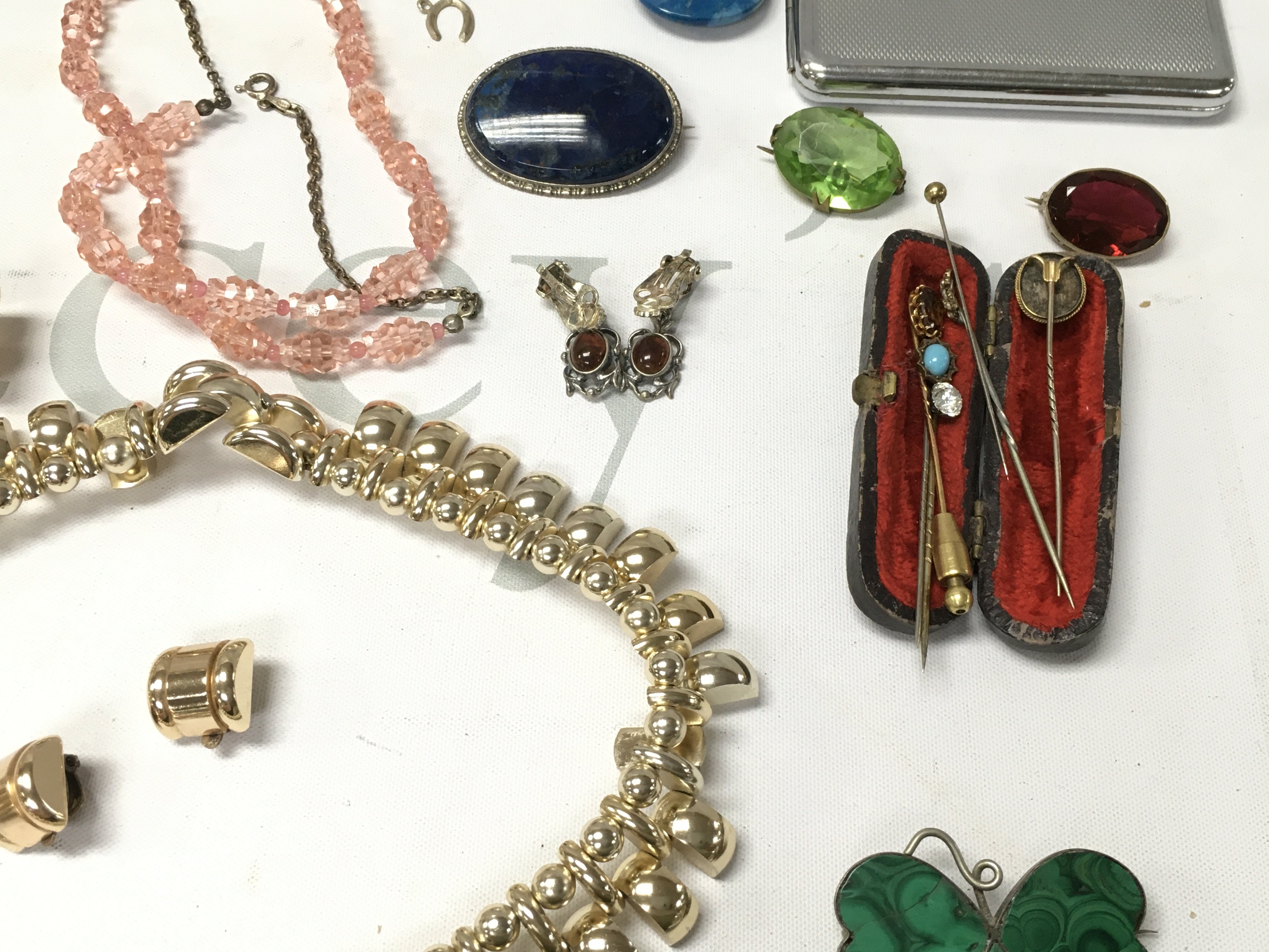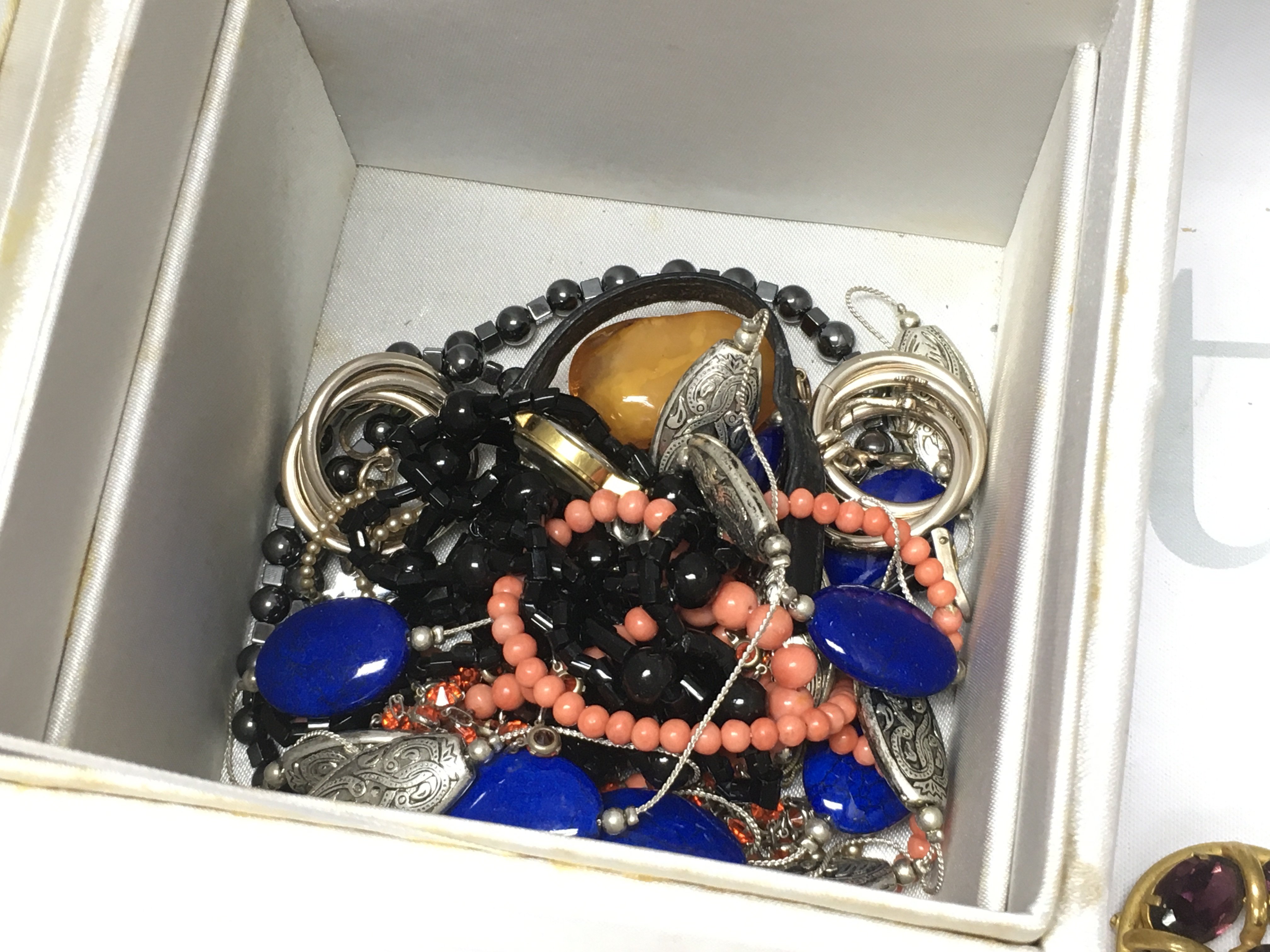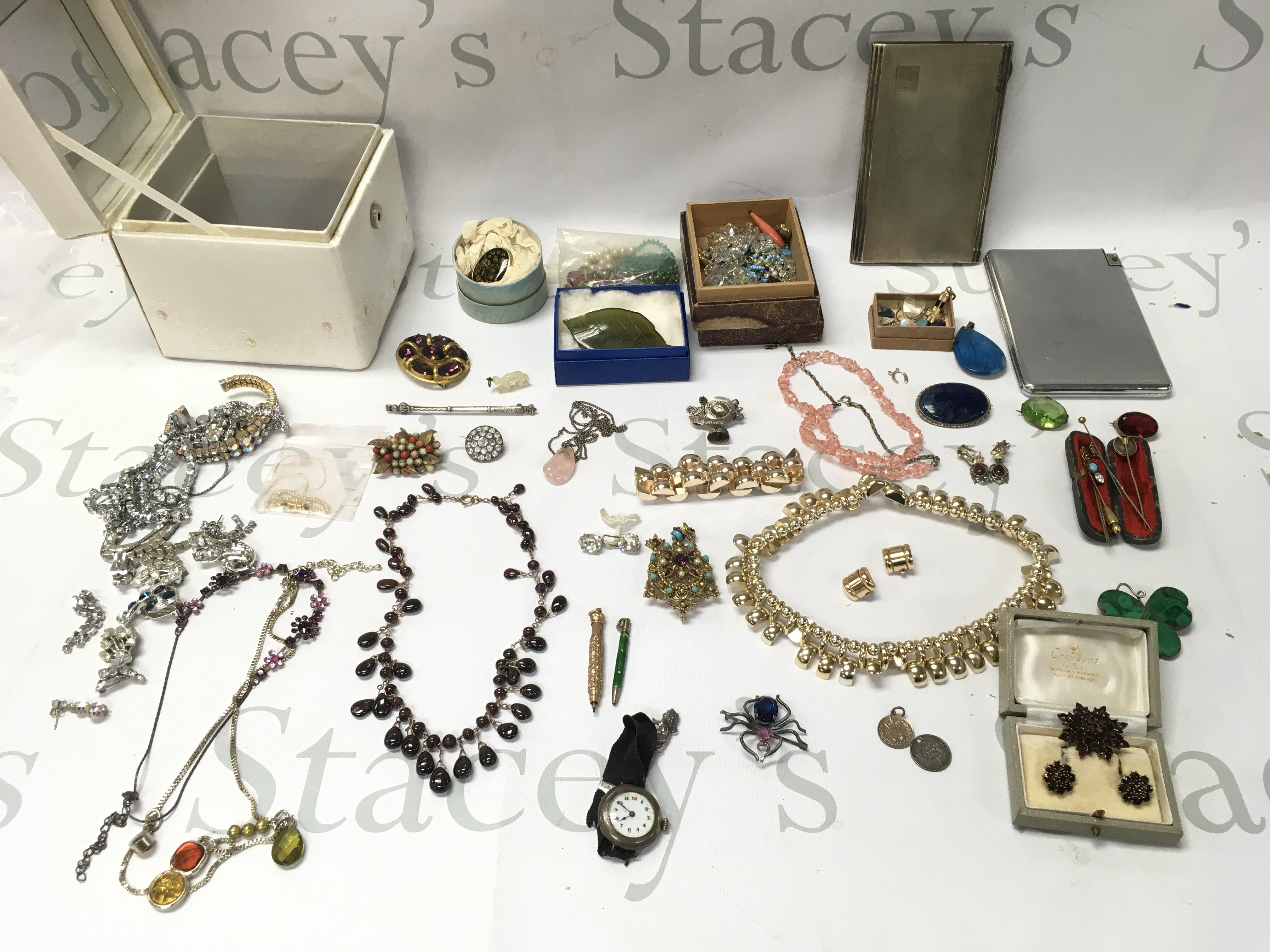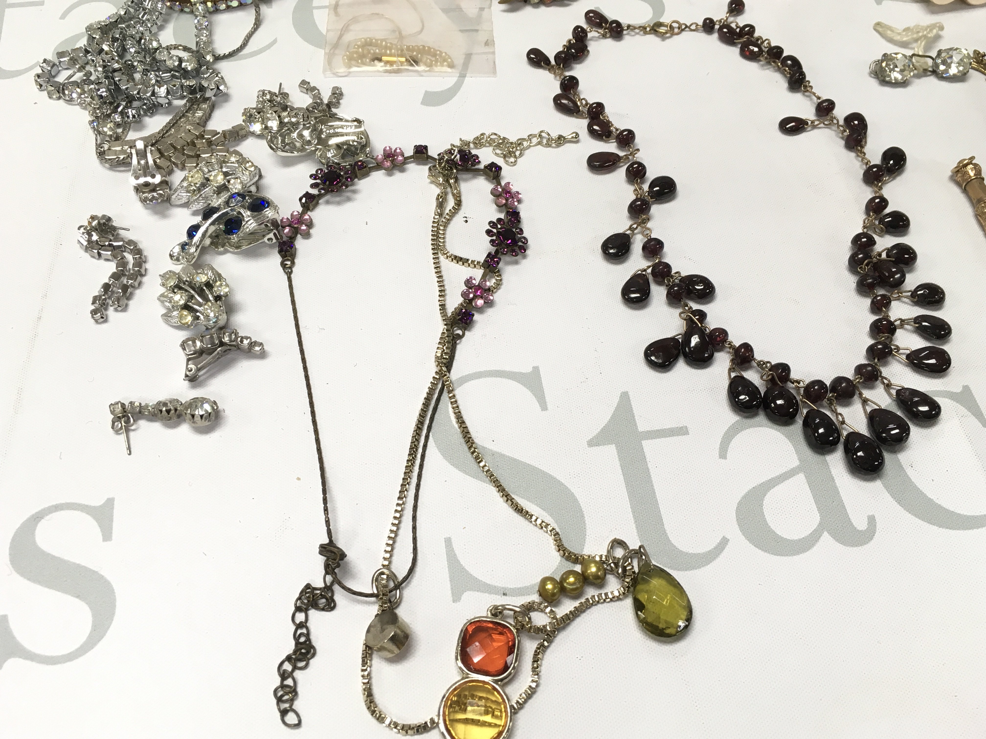 A collection of assorted costume jewellery including necklaces brooches silver watch Etc. Postage B