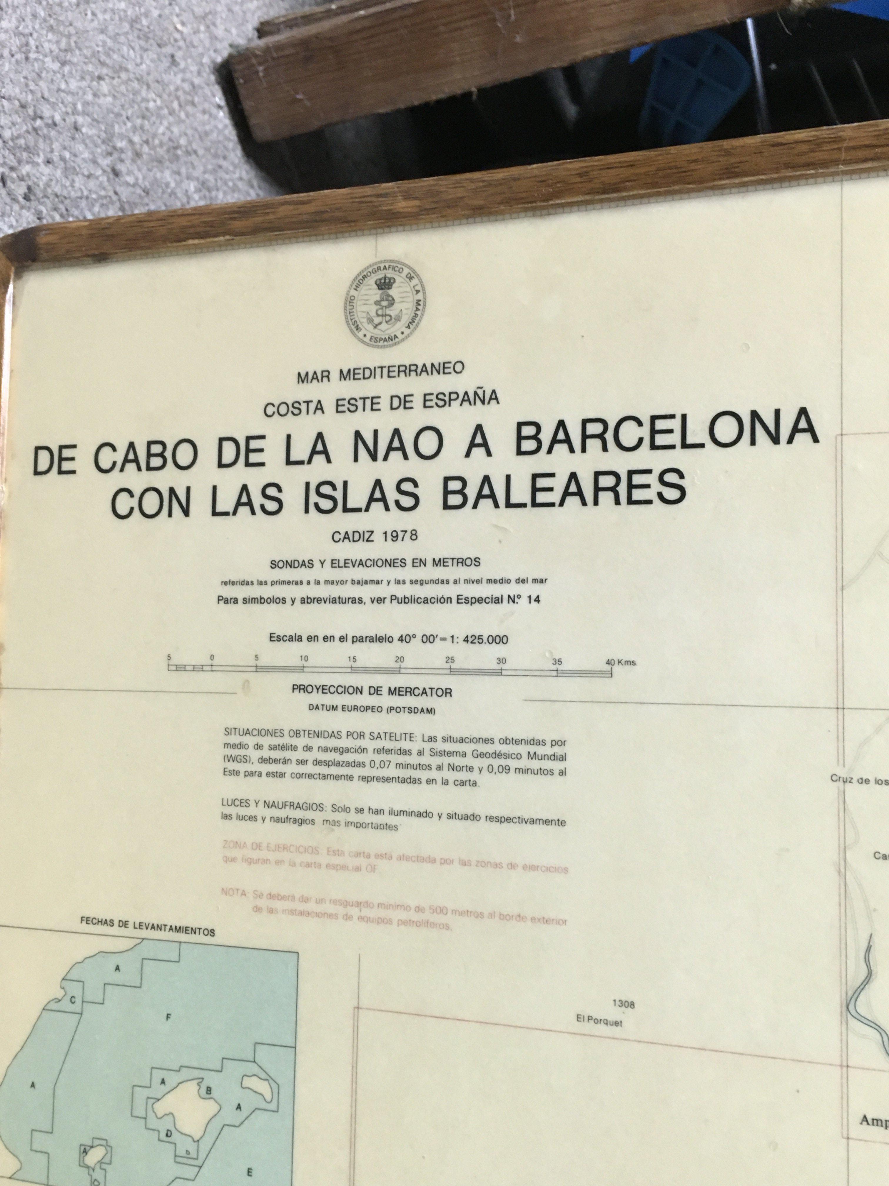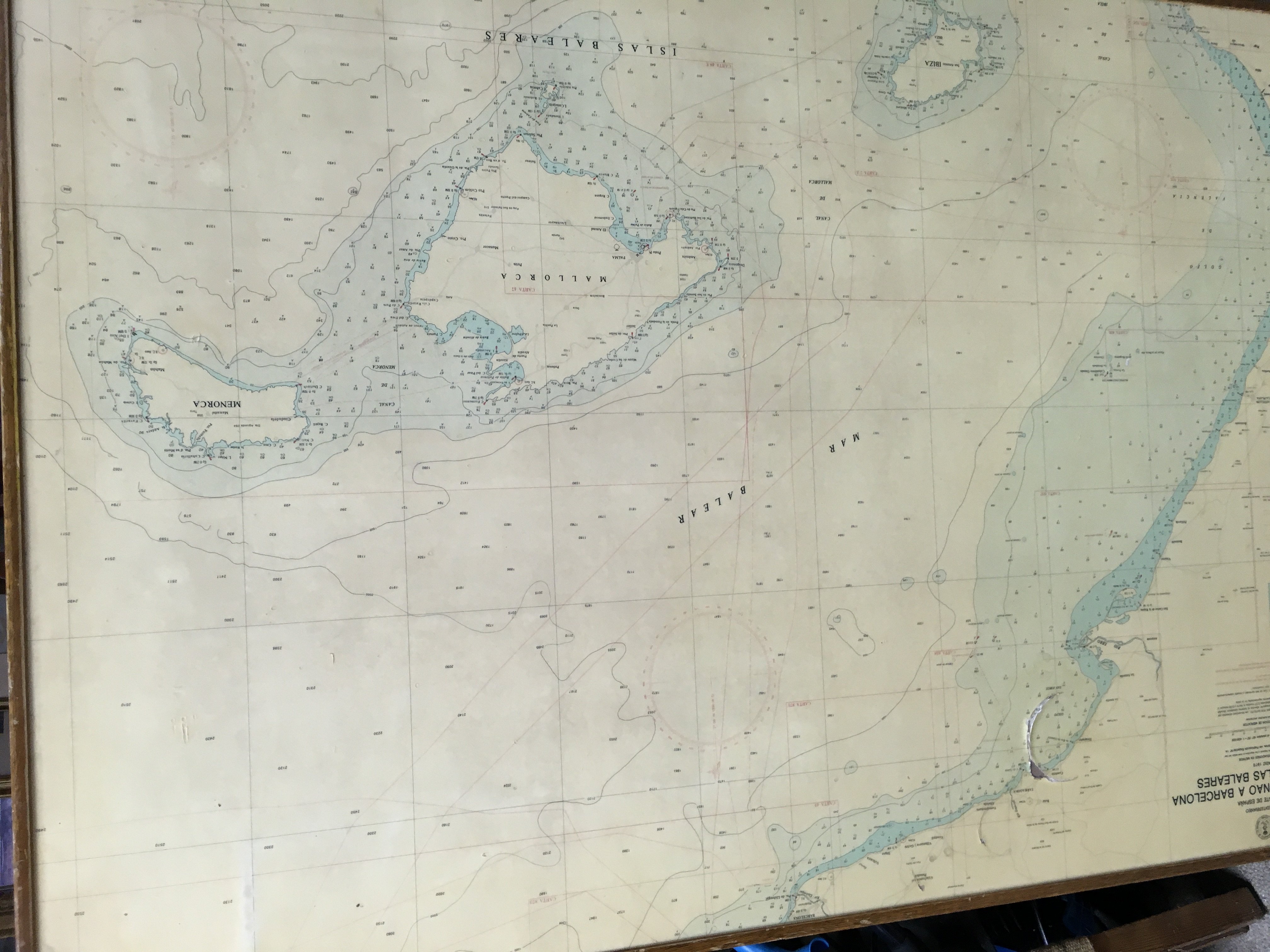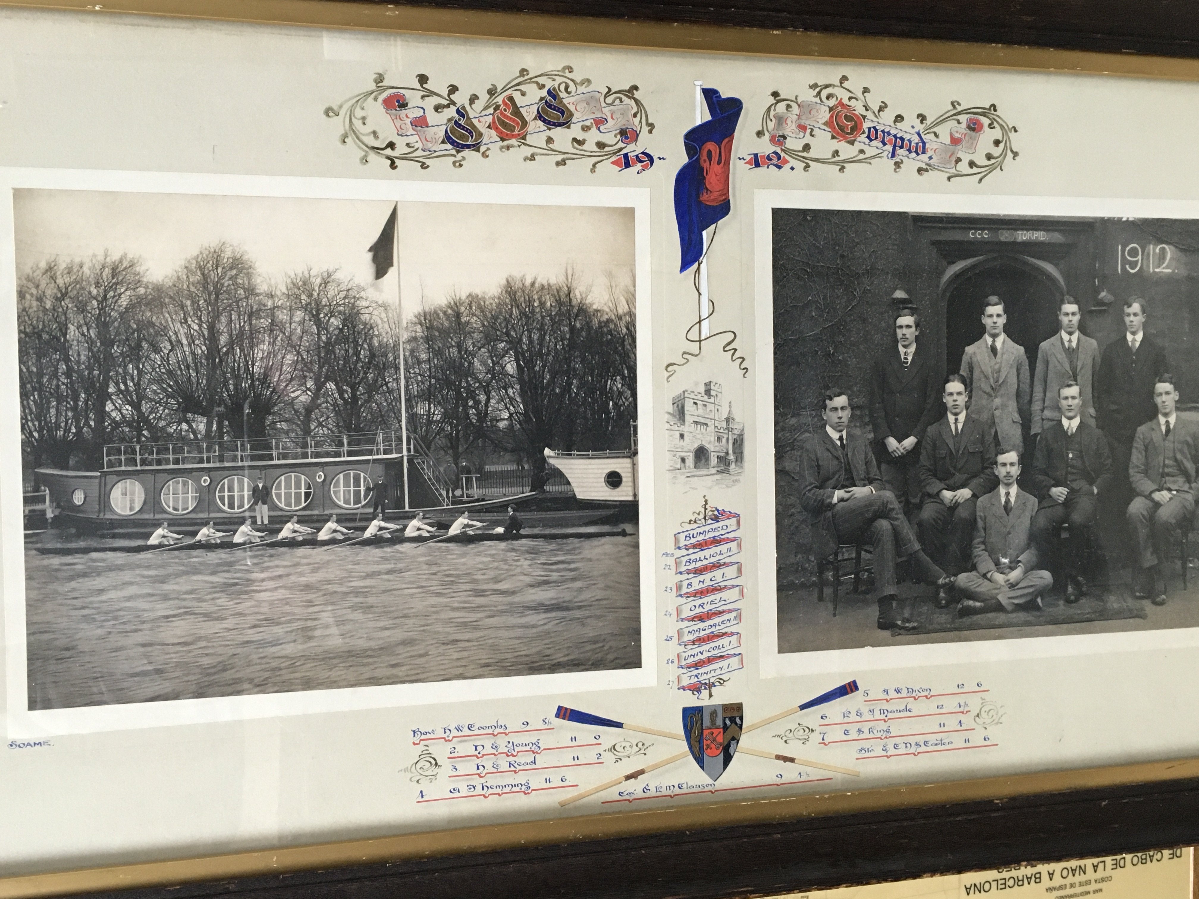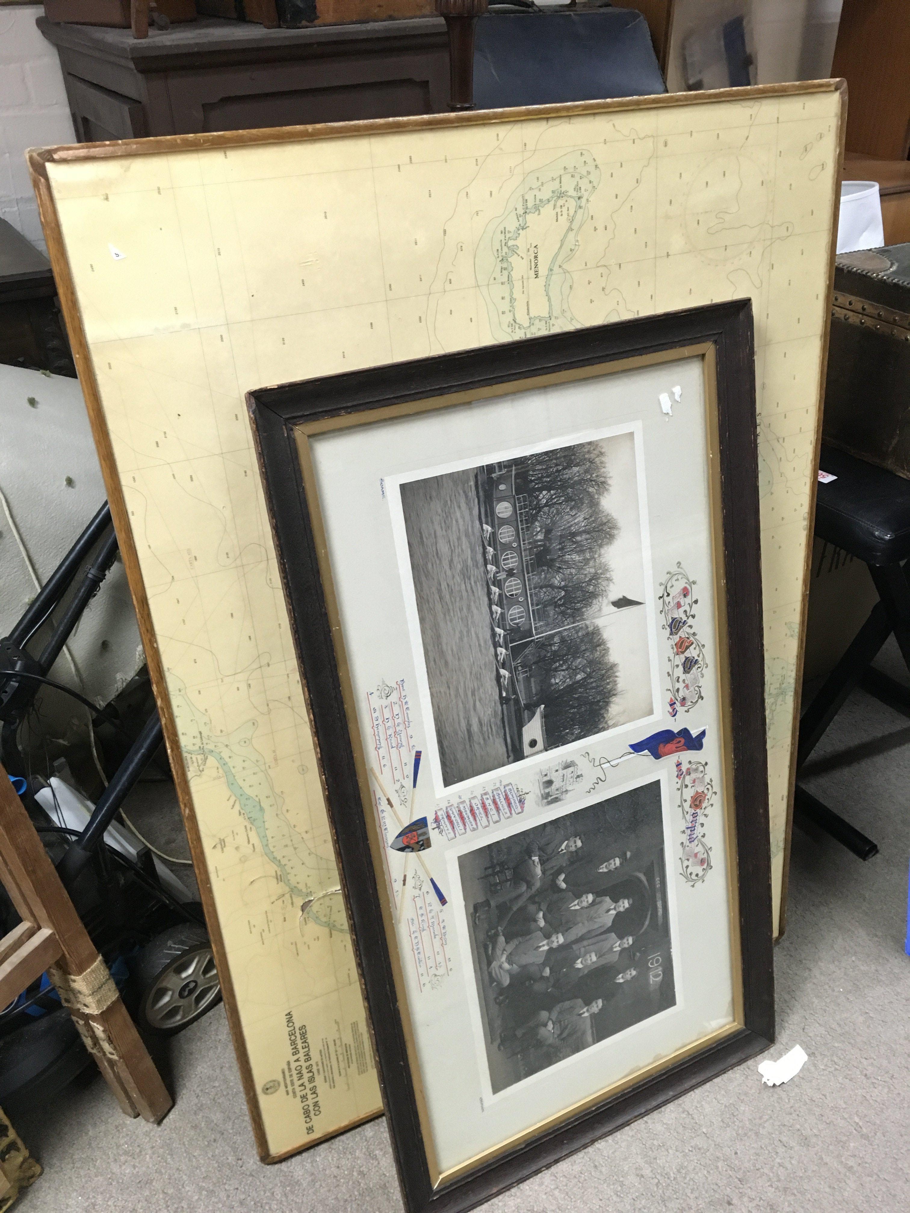 A framed Edwardian Rowing association B/W photograph group and a folding table map of the Mediterranean Sea , EAST COAST OF SPAIN FROM CABO DE LA NAO TO BARCELONA WITH THE BALEARIC ISLANDS