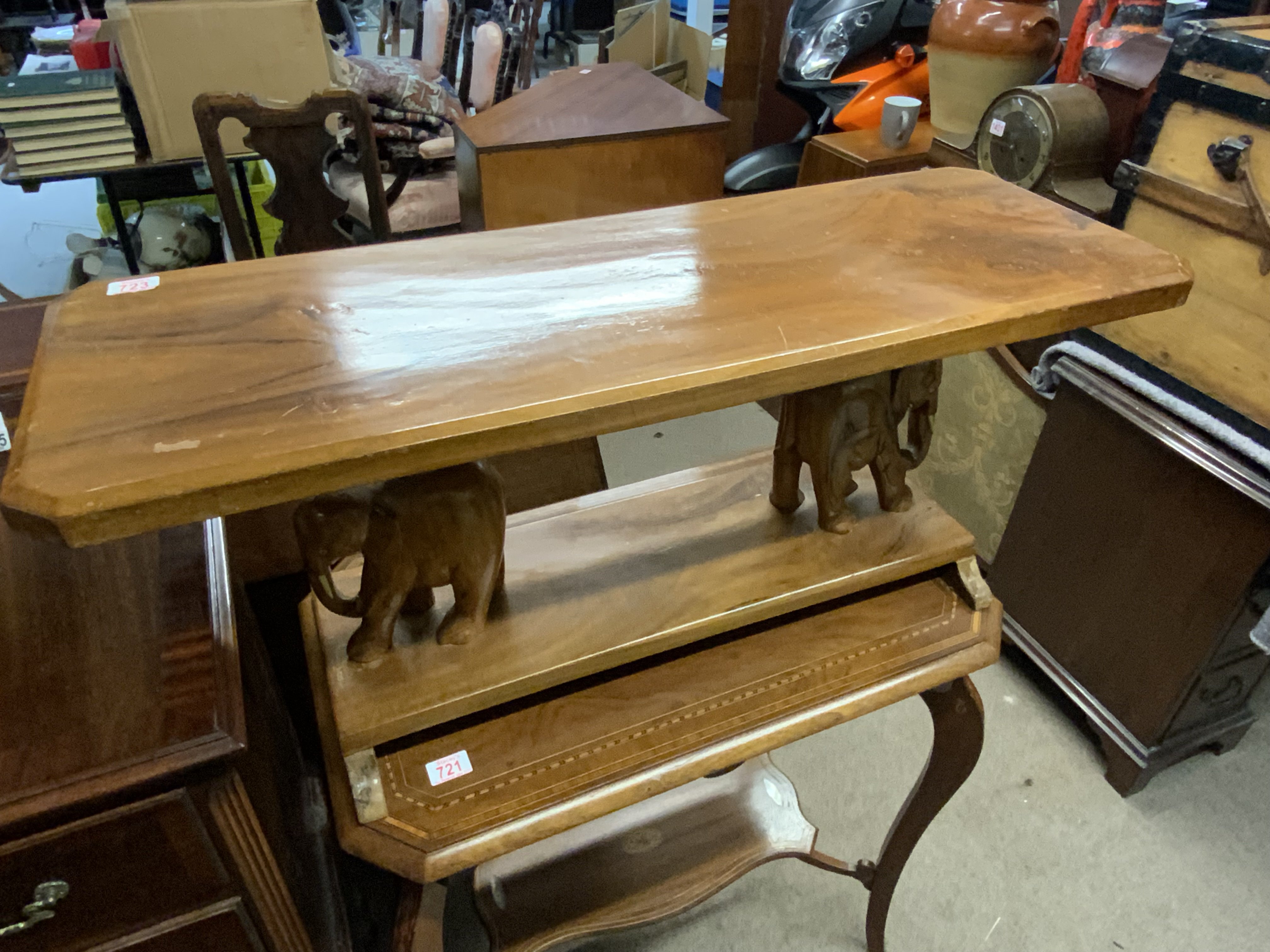 A teak wood carved elephant table 97cm x 34.5cm x 39cm