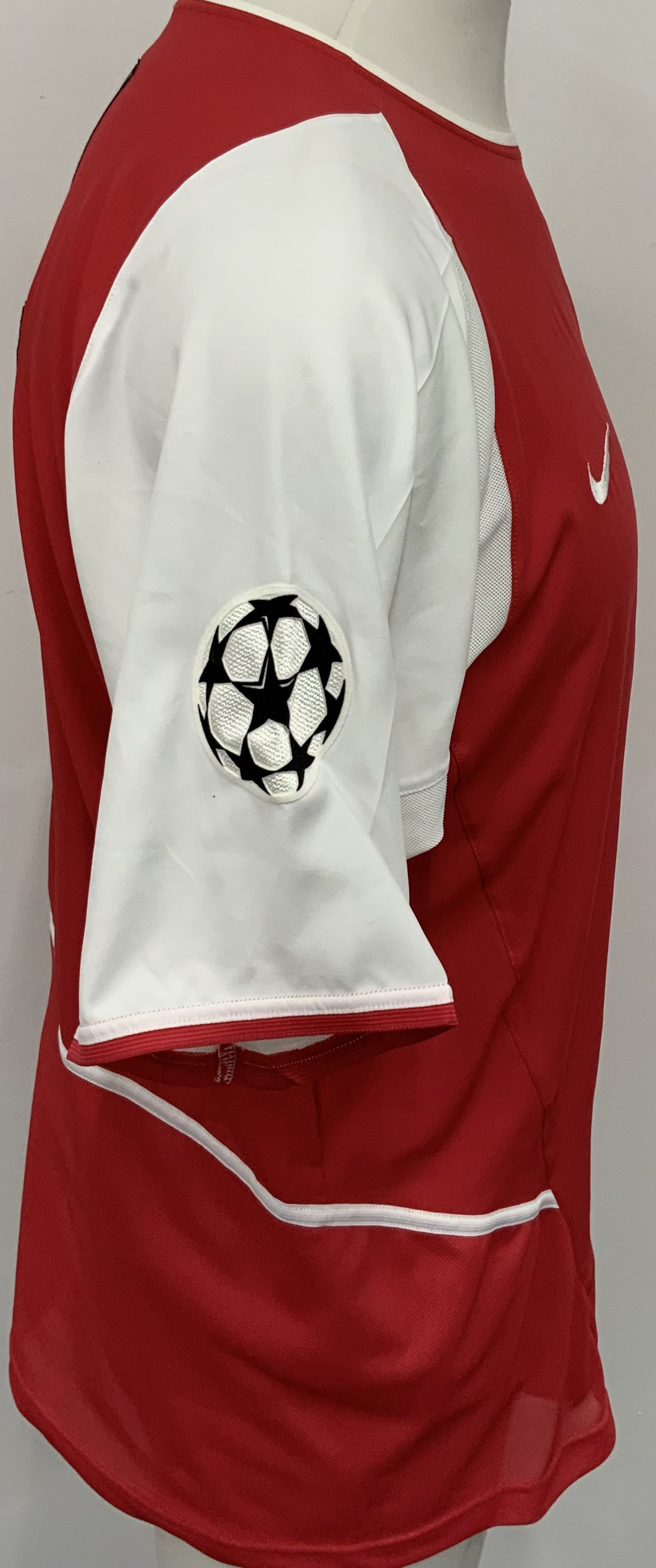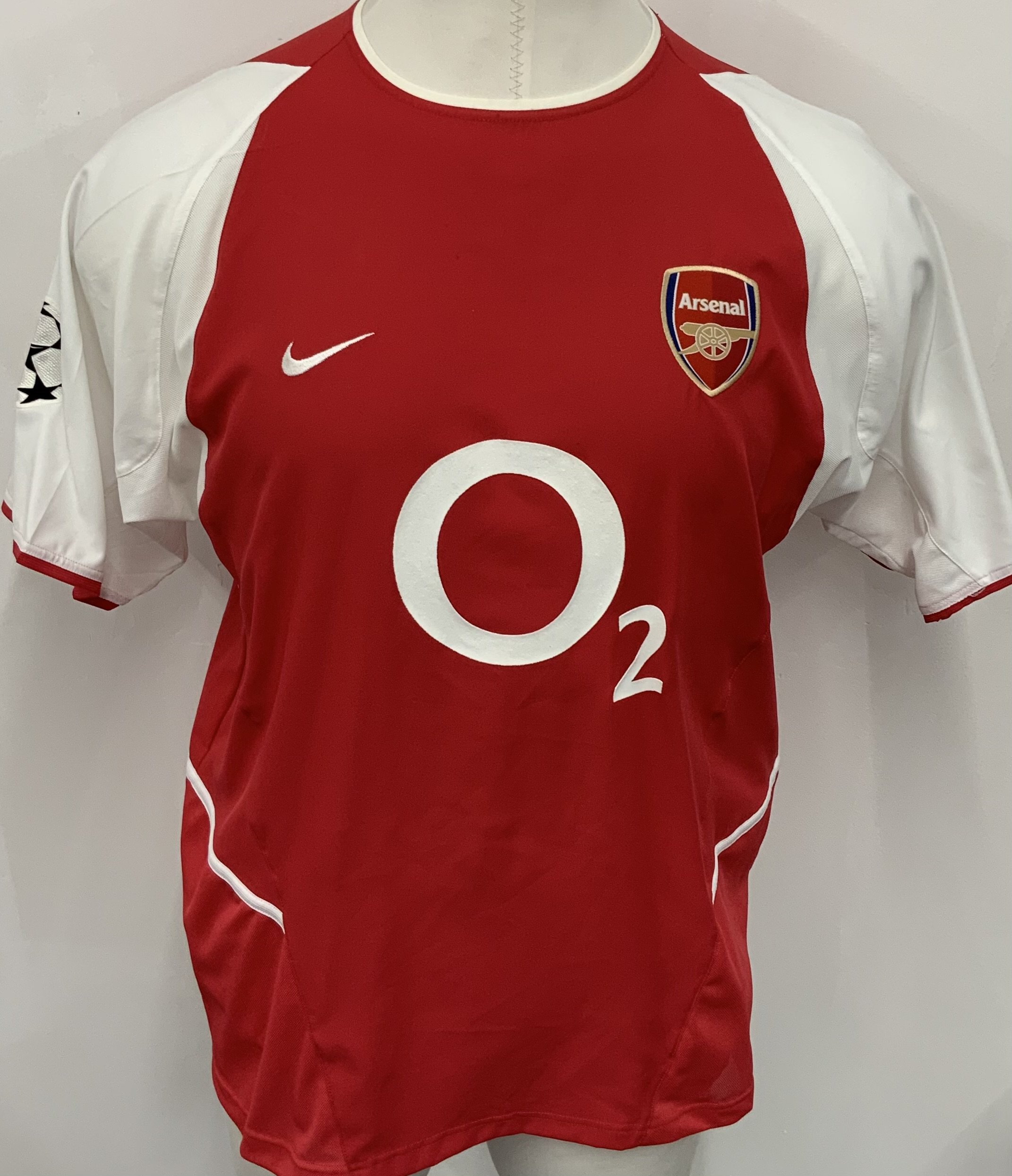 Arsenal 2002 - 2003 Home Match Worn Football Shirt: Red and white short sleeve Nike shirt with Champions League badging to sleeve. Edu 17 to rear.