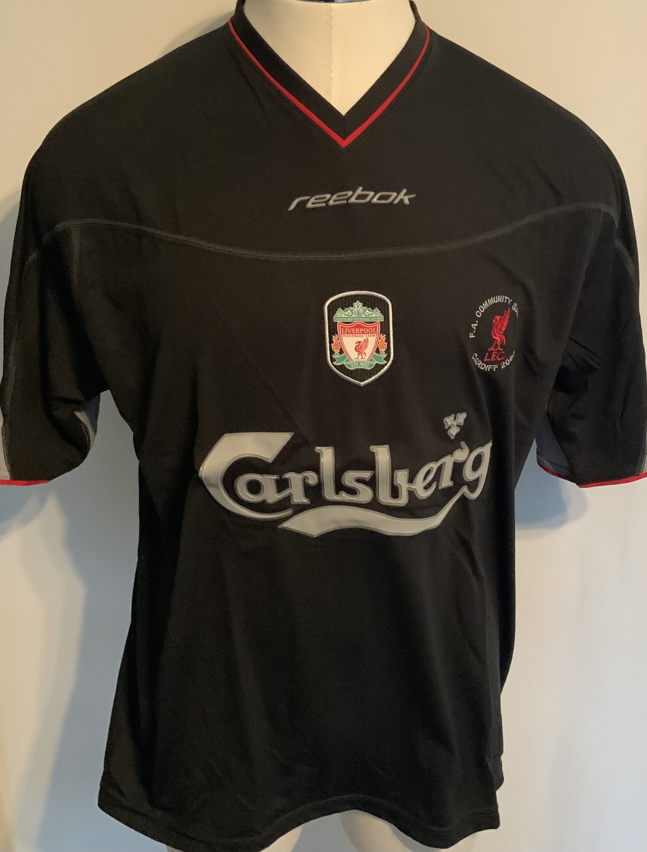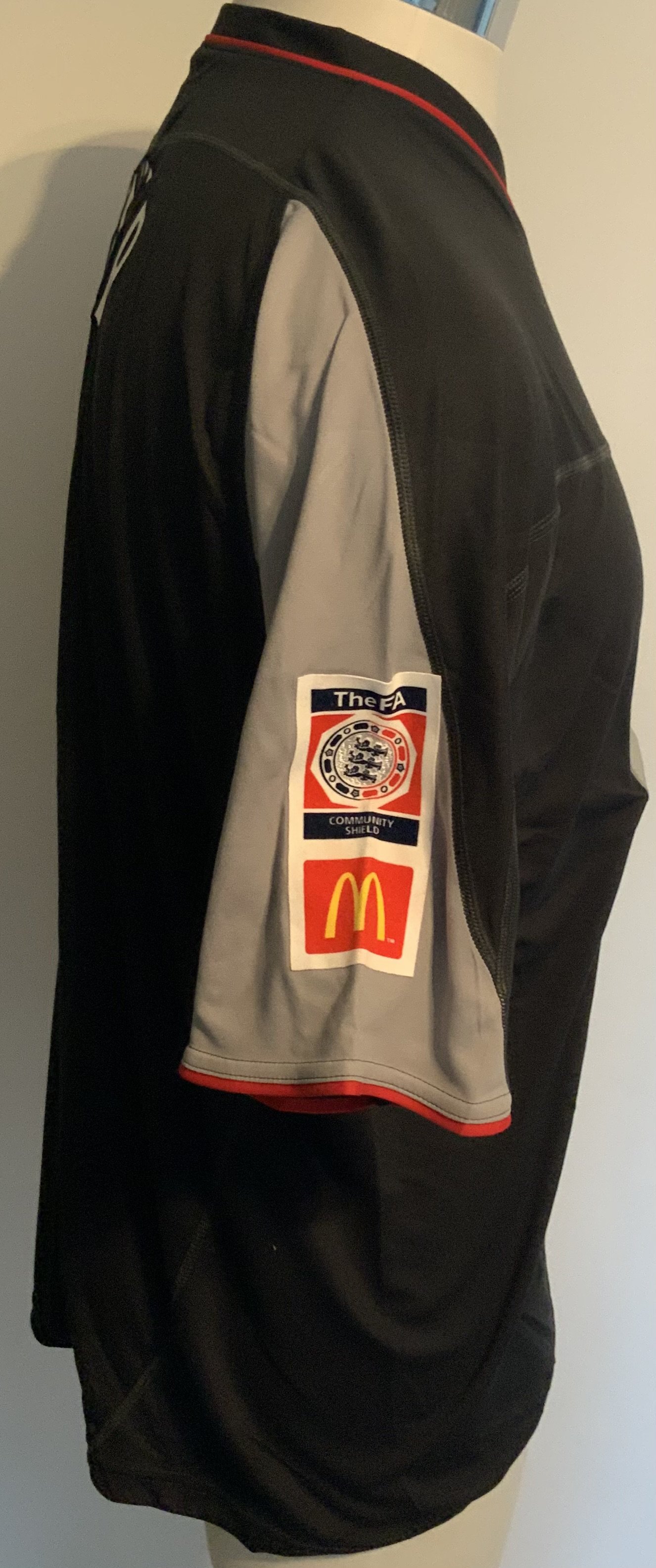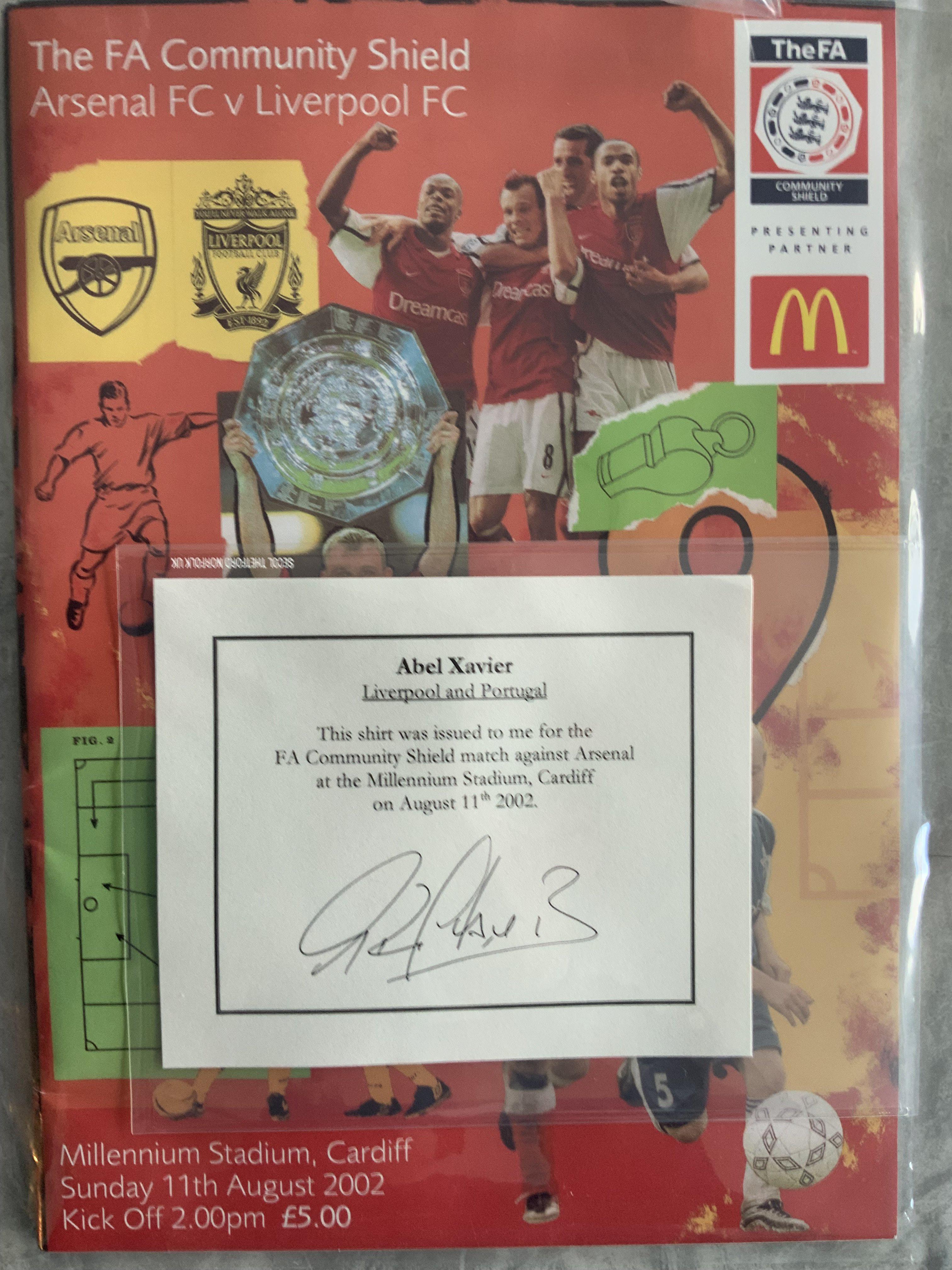 Liverpool 2002 Match Issued Charity Shield Football Shirt: Black short sleeve Reebok shirt with FA Community Shield badging to sleeves. Xavier 3 to rear. Issued v Arsenal on 11 August 2002. Comes with signed COA from the player. Matchday programme is included.