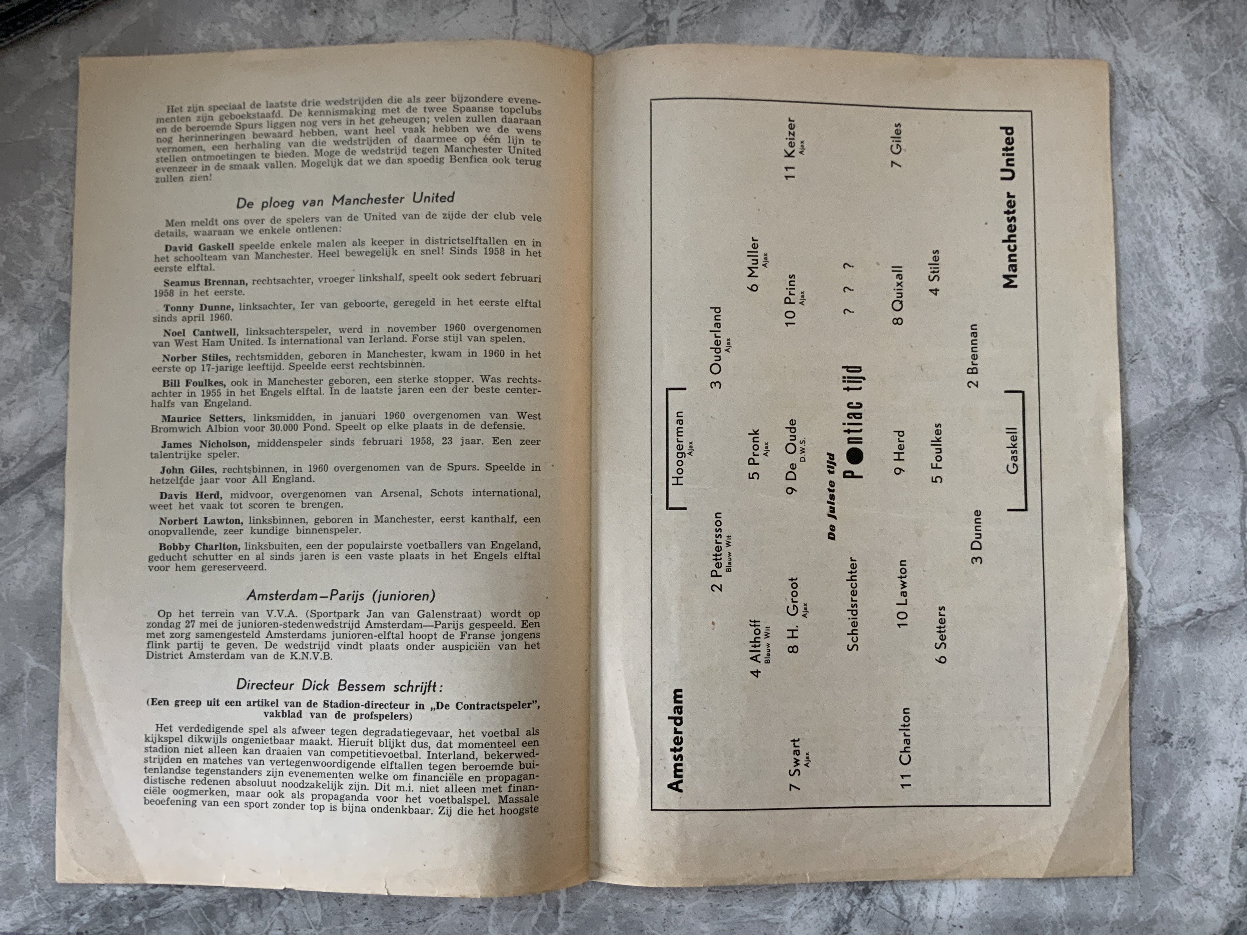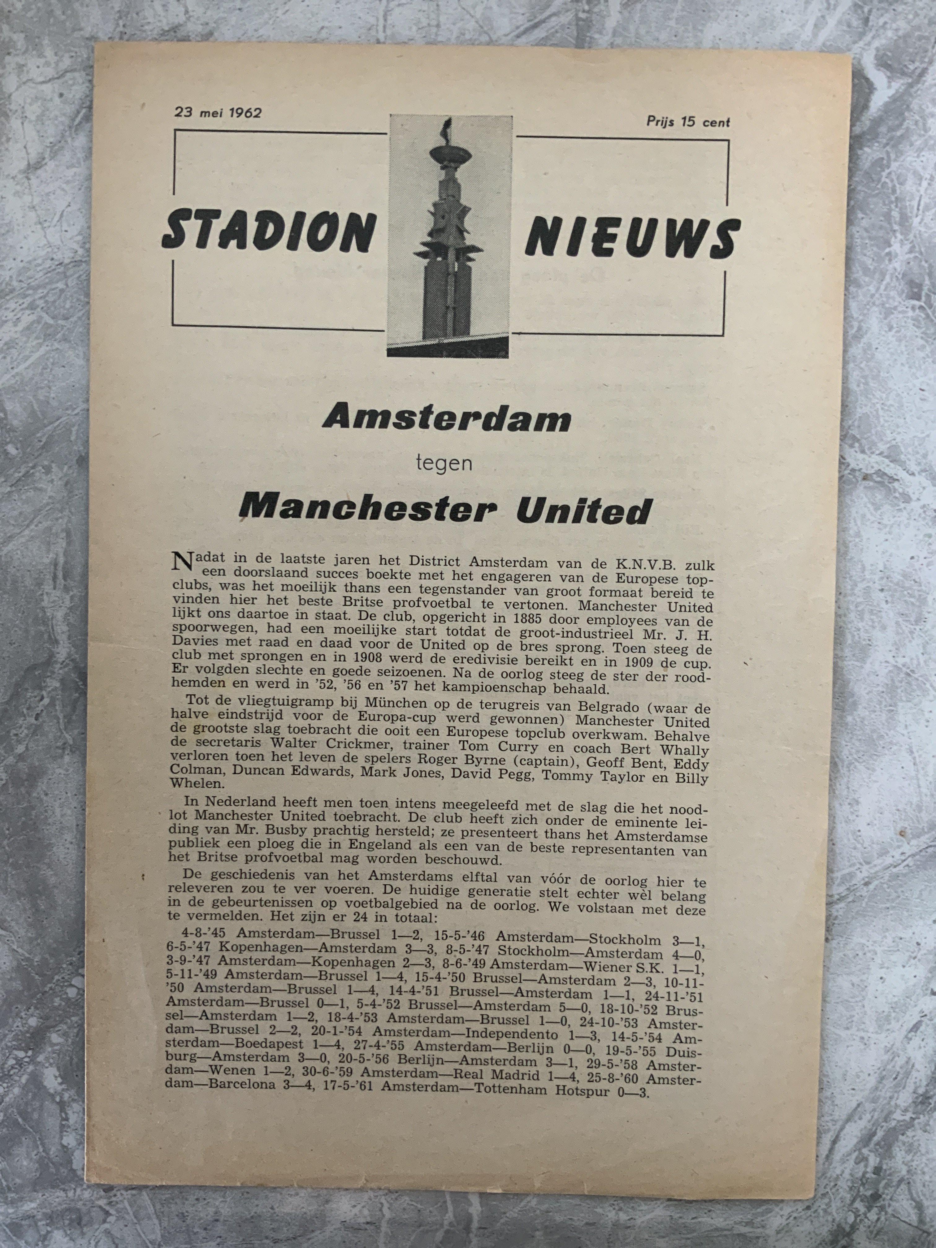 61/62 Amsterdam v Manchester United Football Programme: Excellent condition 4 pager with no writing dated 23 5 1962. Instructions to sell.