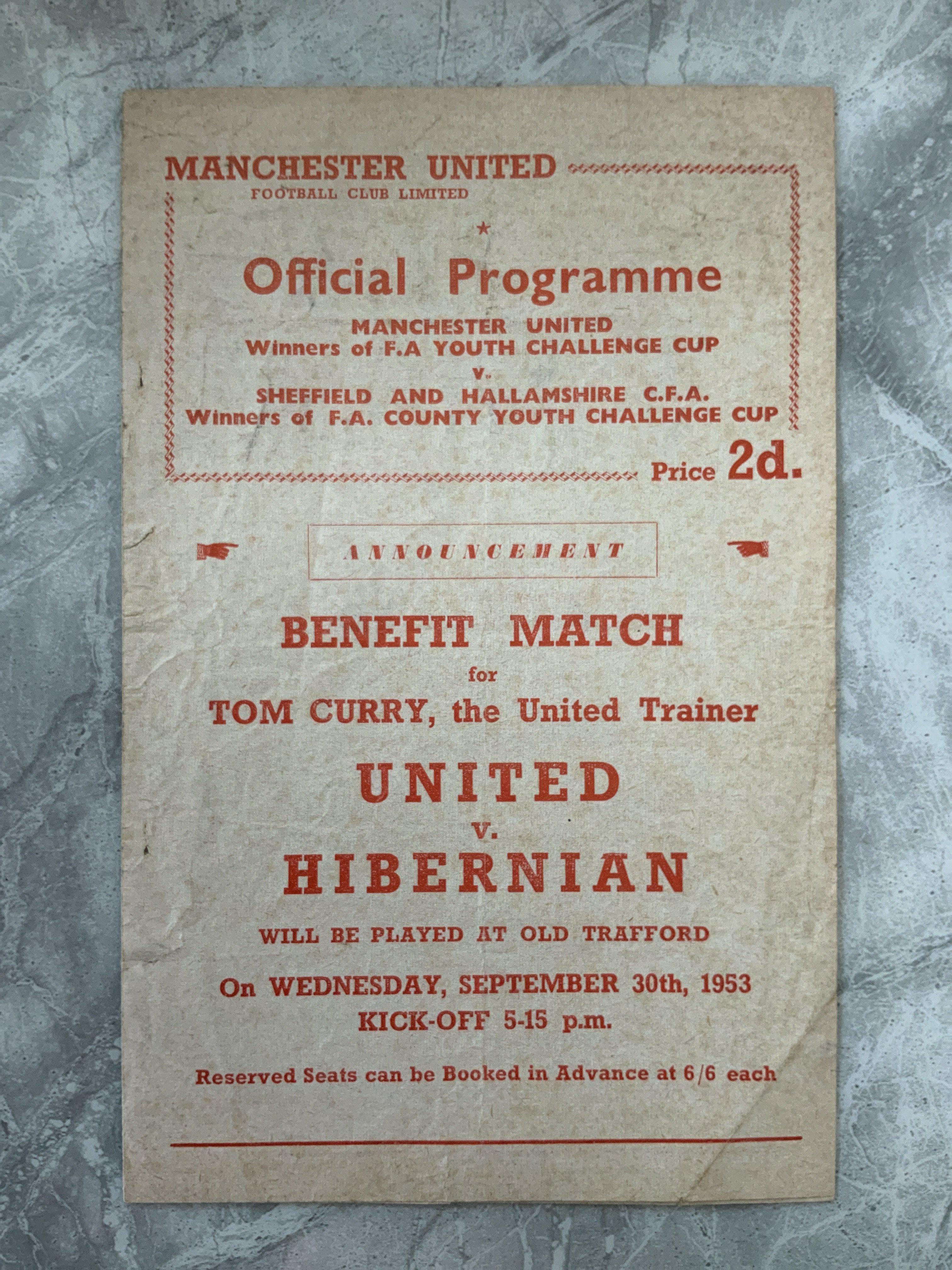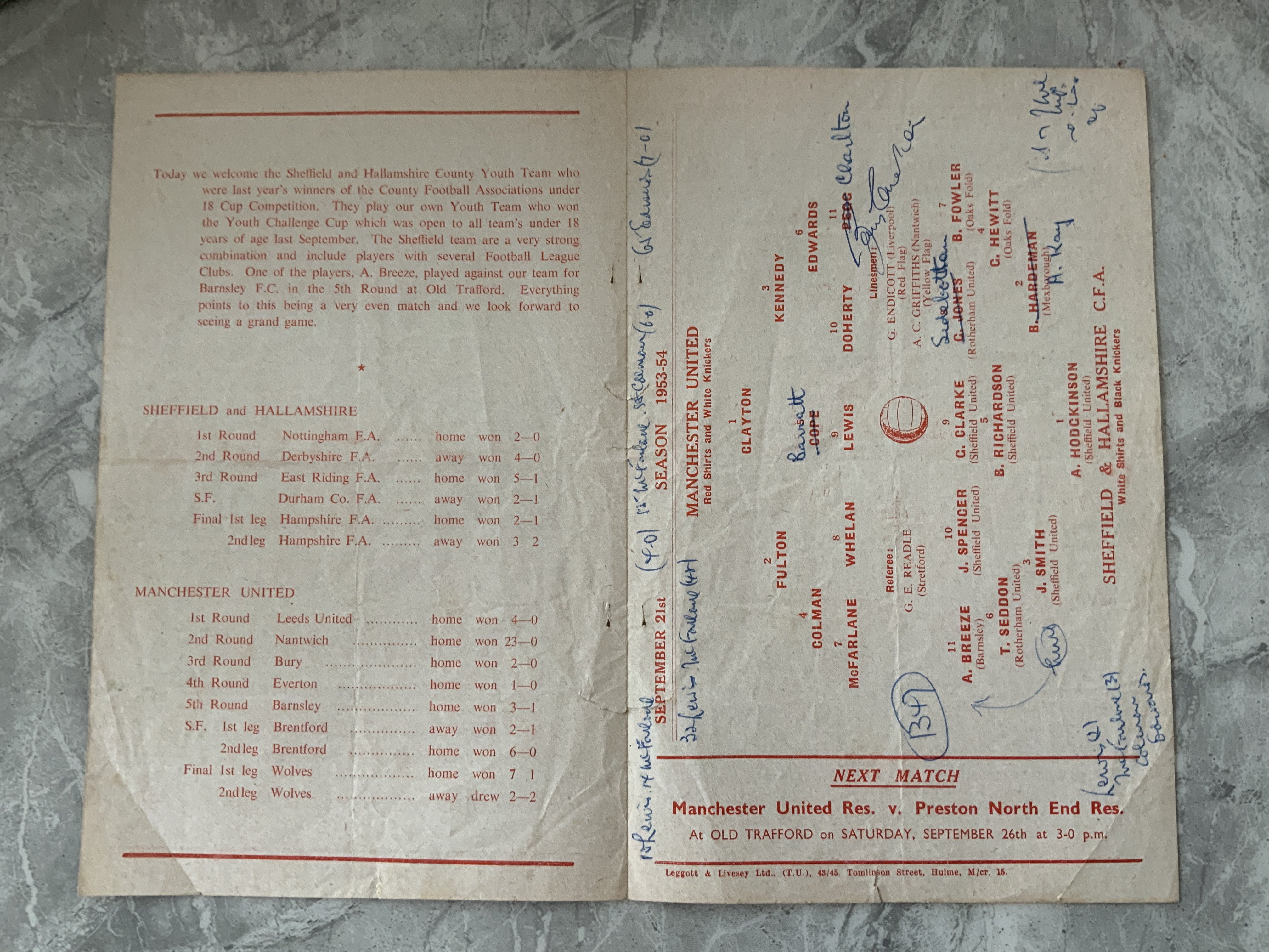 53/54 Manchester United Youth Cup Winners v Sheffield + Hallam Football Programme: Fair