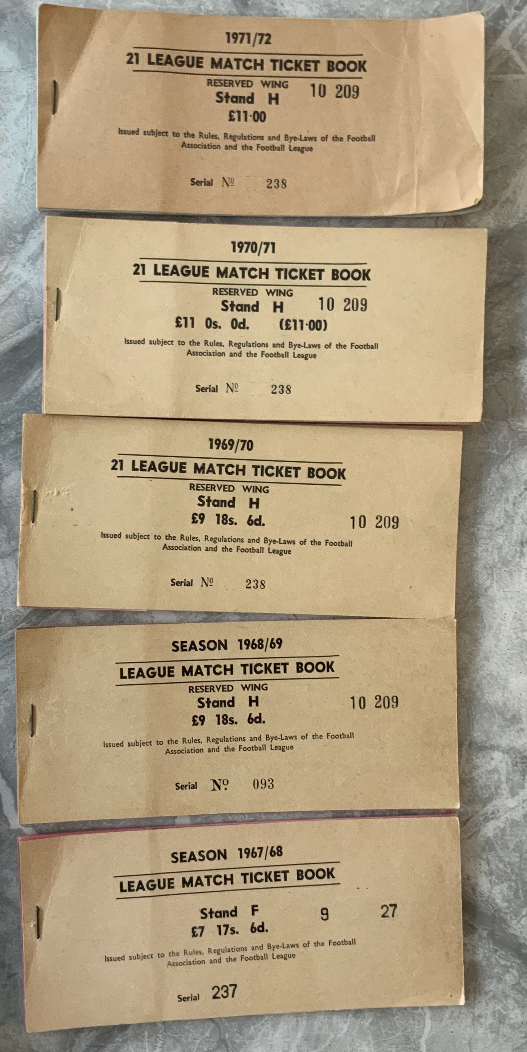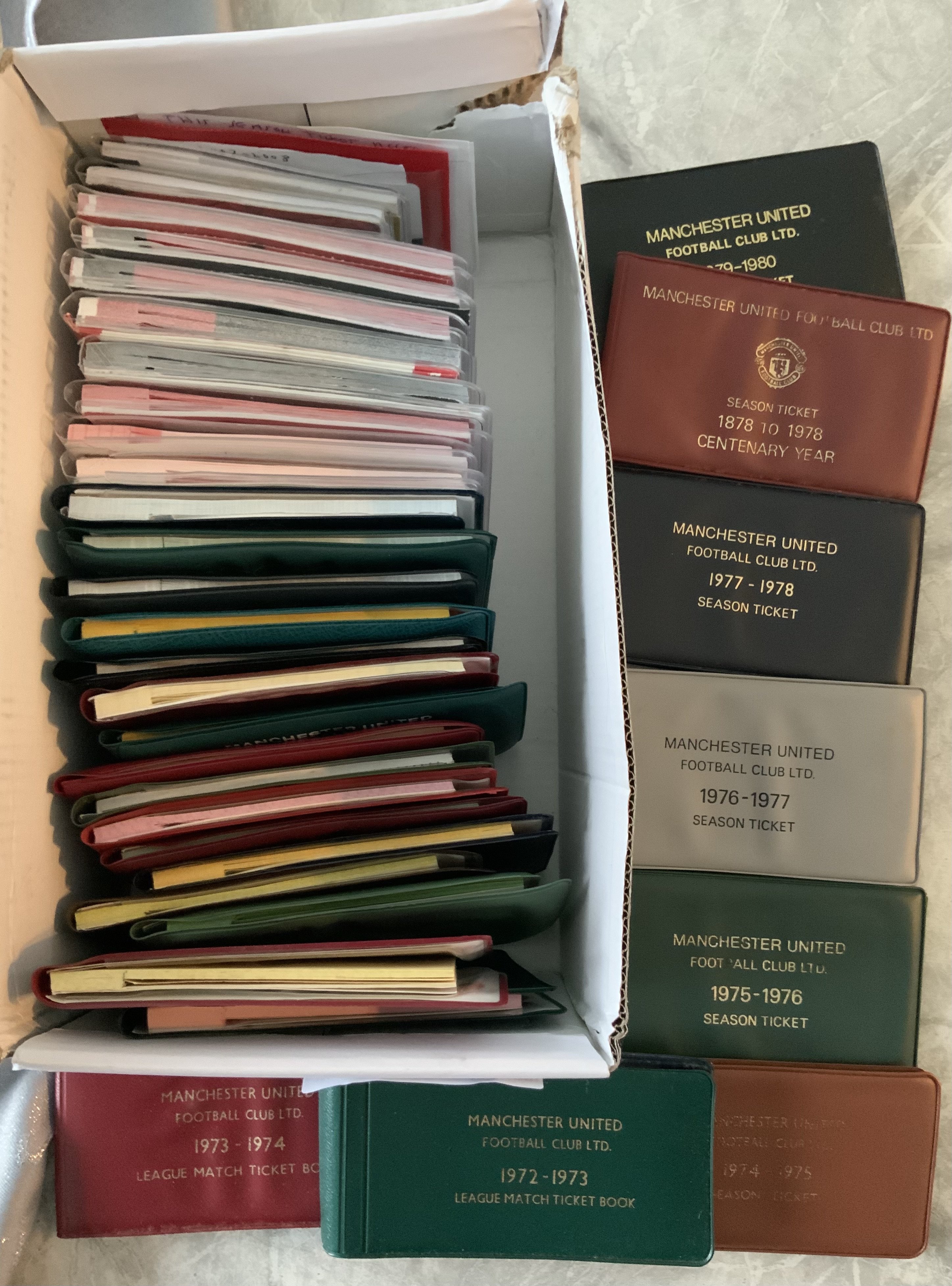Manchester United Complete Football Season Ticket Collection: Complete run in different styles from the famous season of 67/68 up to 2007/2008. The first 5 seasons were long ticket books and there are complete tickets with counterfoils for the infamous first two matches of 71/72 which were played at Liverpool v Arsenal and West Brom. They are the only tickets mentioning individual matches in the collection the others are often numbered vouchers. Additionally there are season ticket cards for 2010/2011 to 2016/2017 plus 13 duplicates from the mid 70s to the early 80s. Nice collection. (50+)