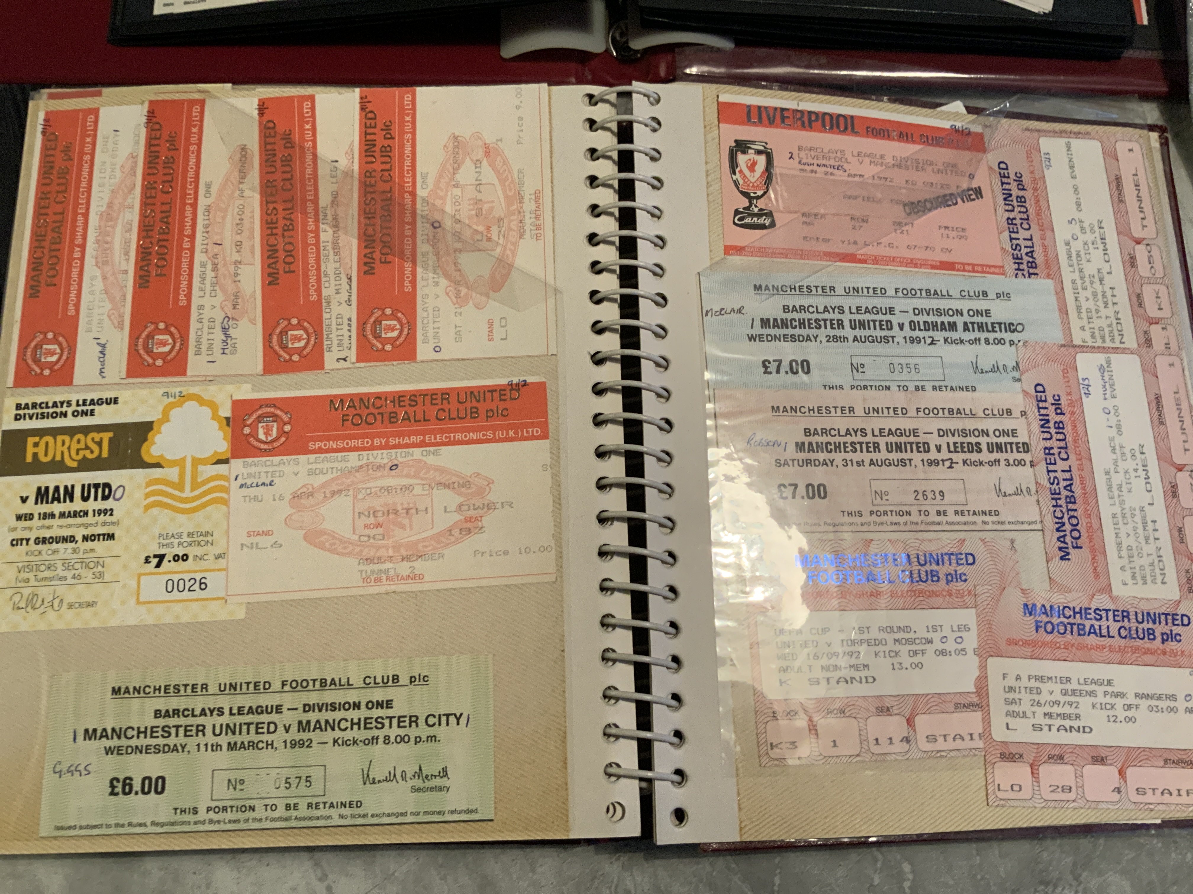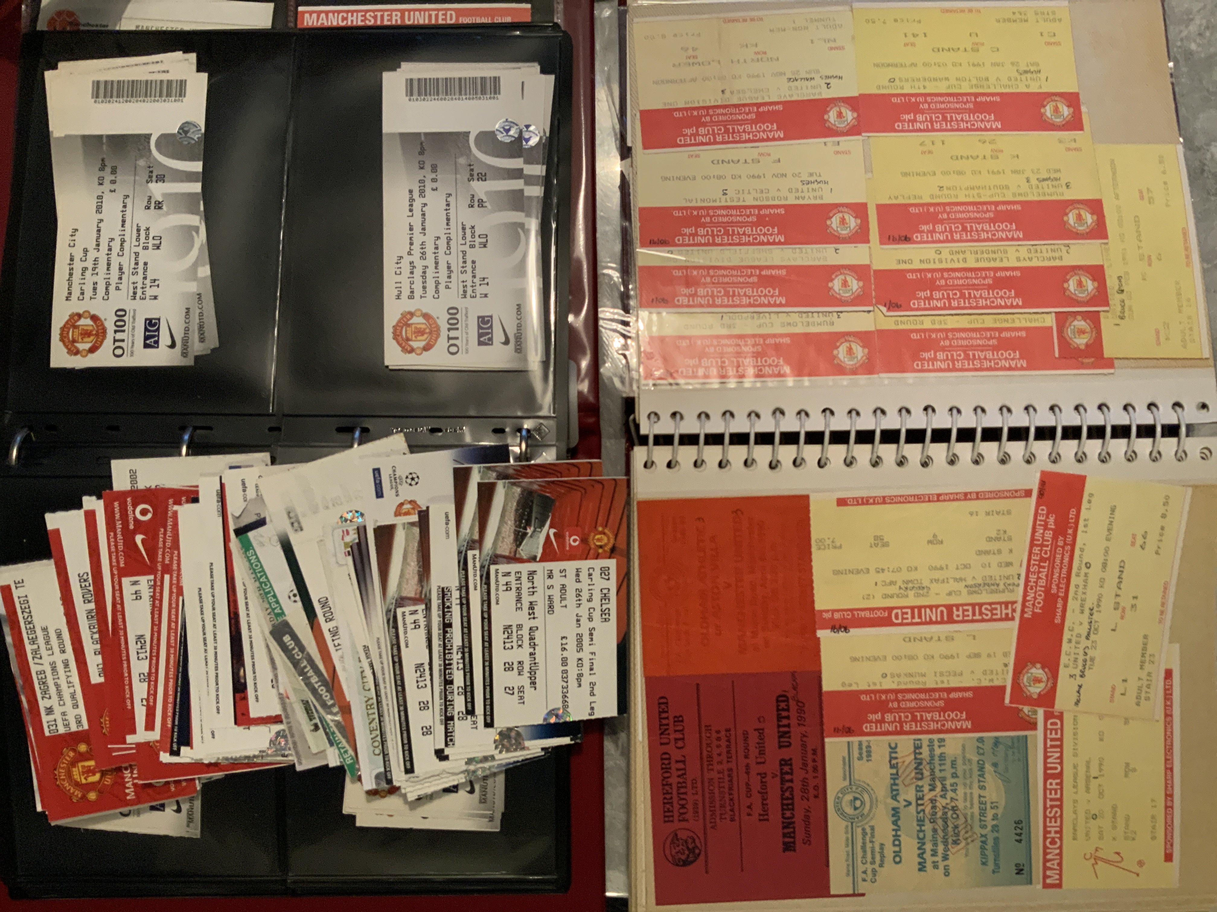 Manchester United Football Ticket Collection: Quantity of tickets with duplication mainly from the 90s and 2000s but with 70s and 80s included. There are big match, car park tickets, plus 94/95 Goteburg away. Some tickets have score written. Many hundreds.