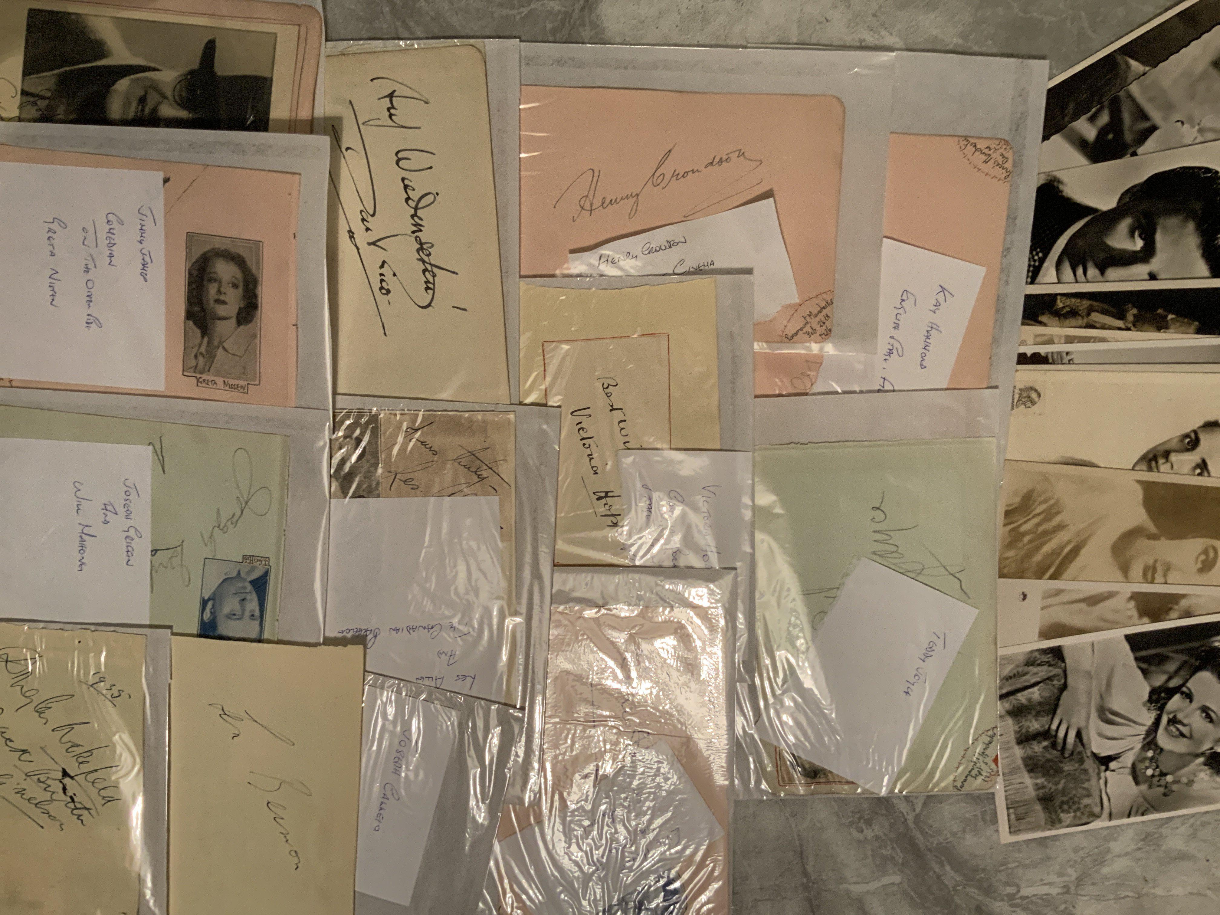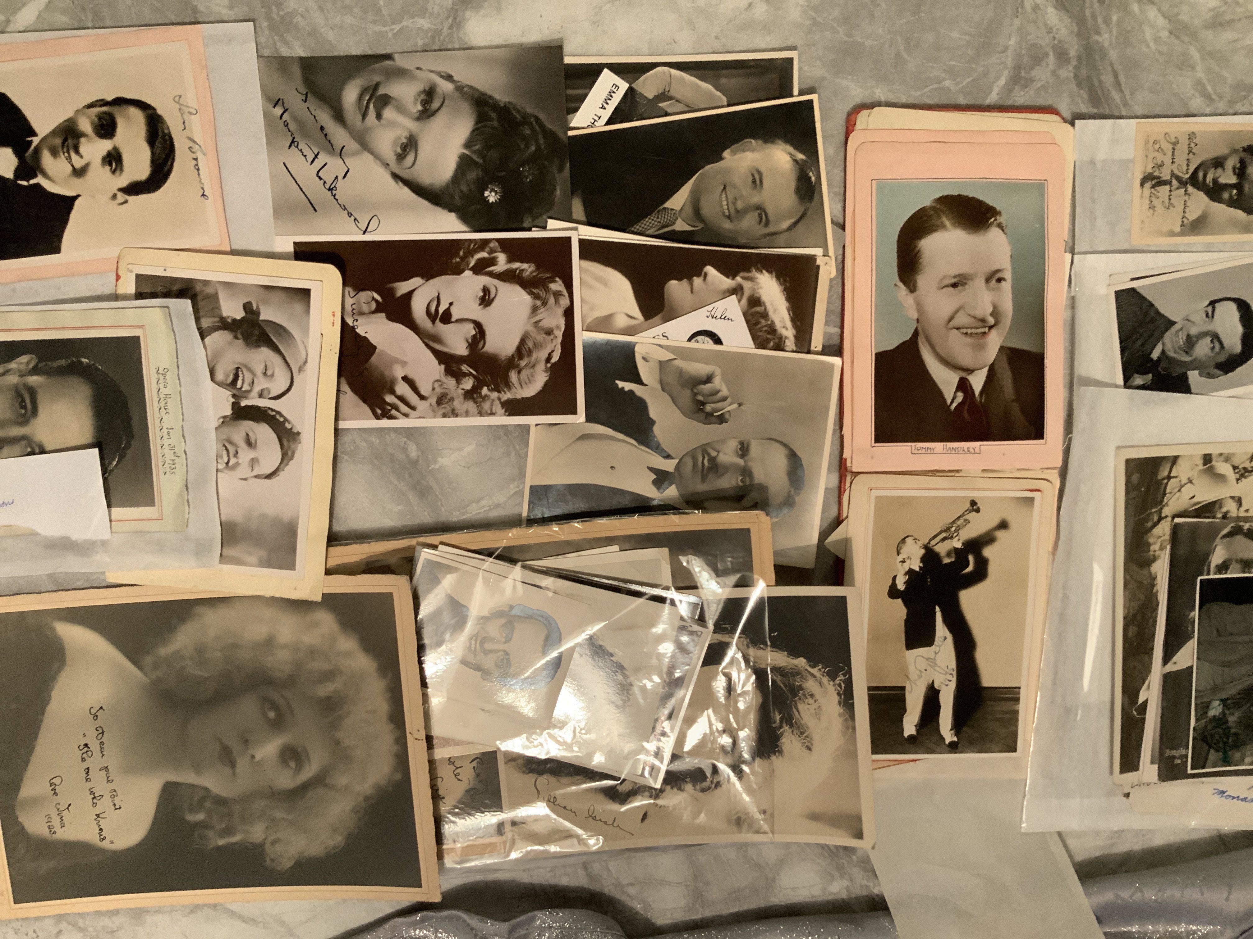 Pre War Film + Star Autograph Collection: Must view collection to include unsigned postcards, signed autograph pages signed photos etc. Bound to be some interesting signatures amongst these with many identified. Lots of 1920s and 1930s with a few older and newer. Quantity.