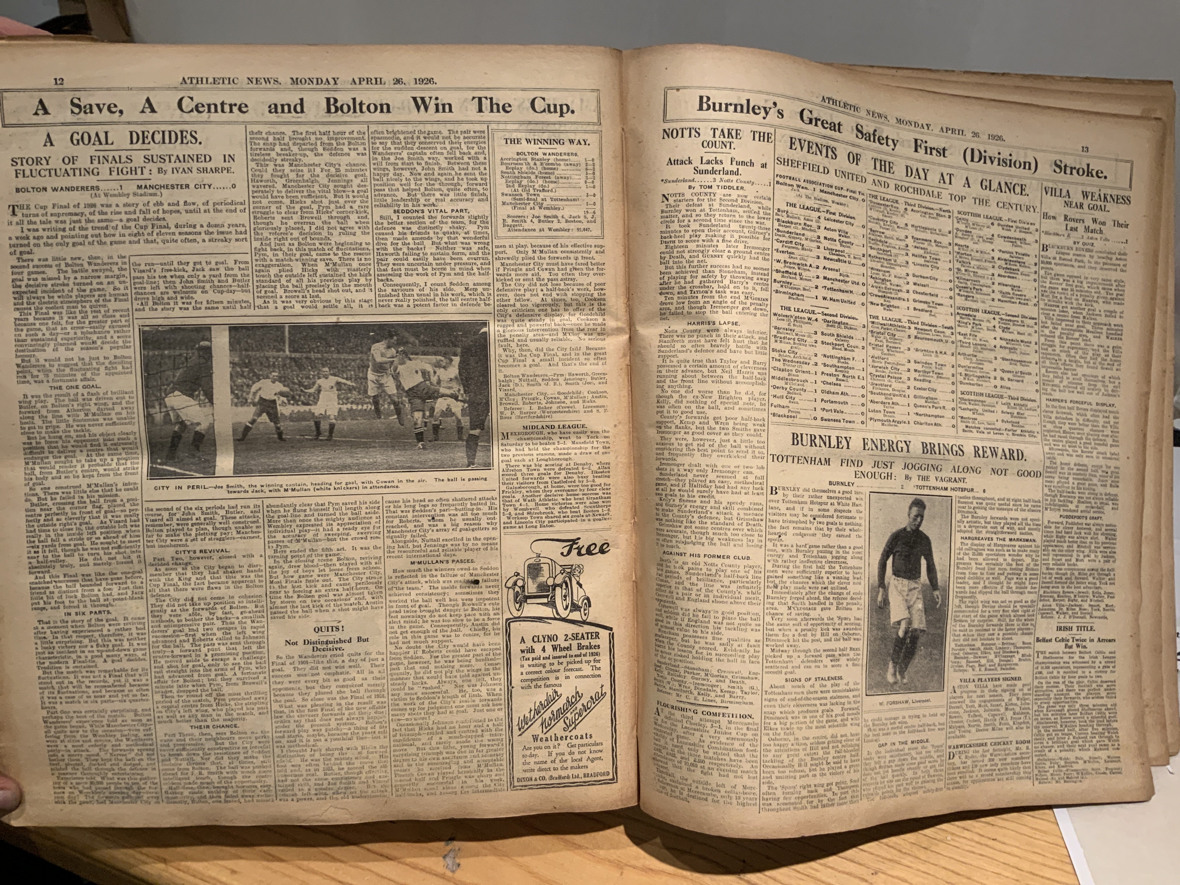 1925 - 1926 Athletic News Bound Volume Of Sport Magazines: From August 3rd 1925 to May 3rd 1926 and we believe this is a complete run of the weekly newspaper. Every volume covers football including the Bolton v Manchester City FA Cup final. Northern coverage always good with Central League well covered. Other sports include Cricket, Rugby Union + League, Athletics, Running and more. Small format heavy bound volume.