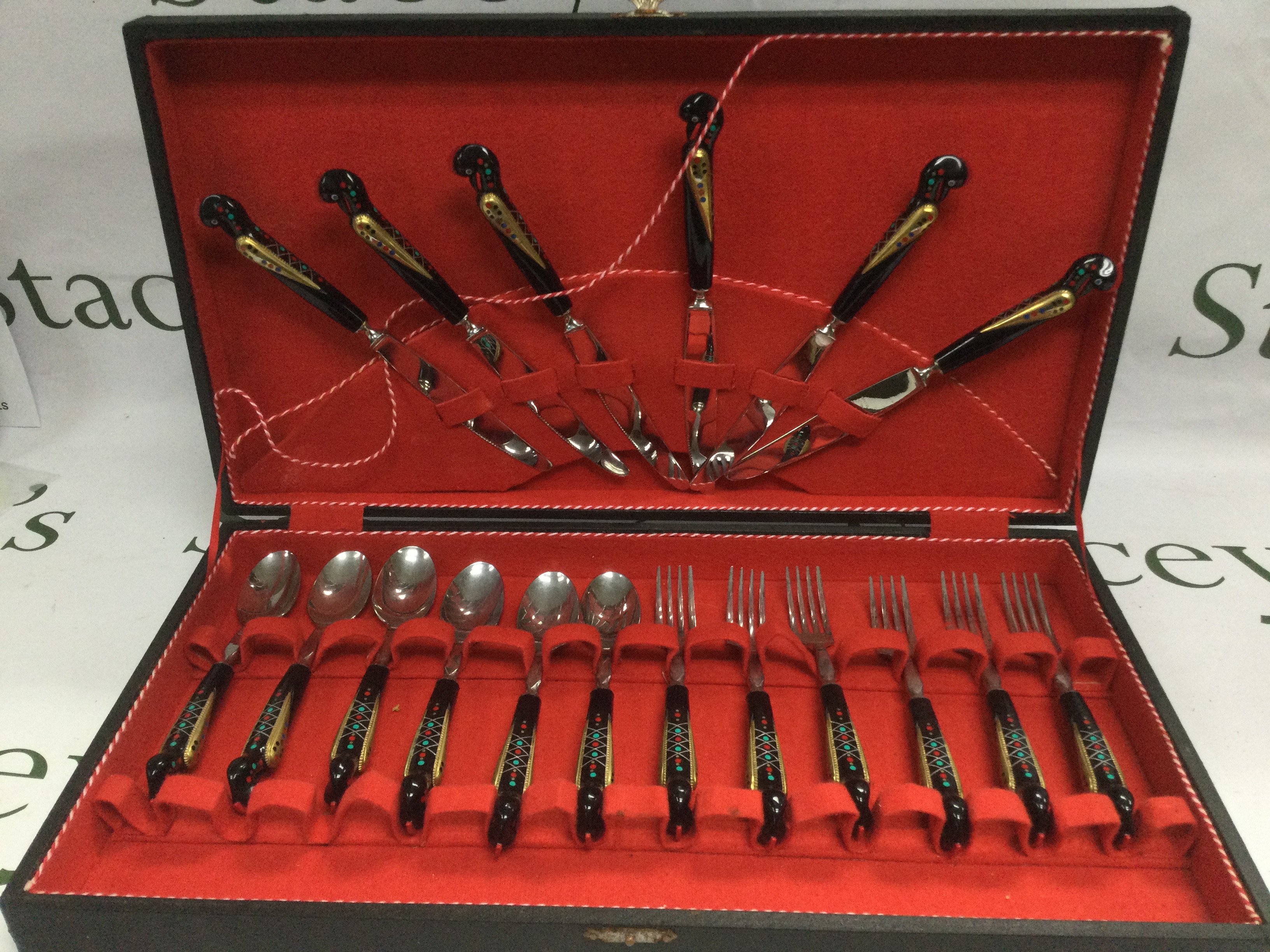Three cased cutlery sets including a gold plated Solingen set. Shipping category D.