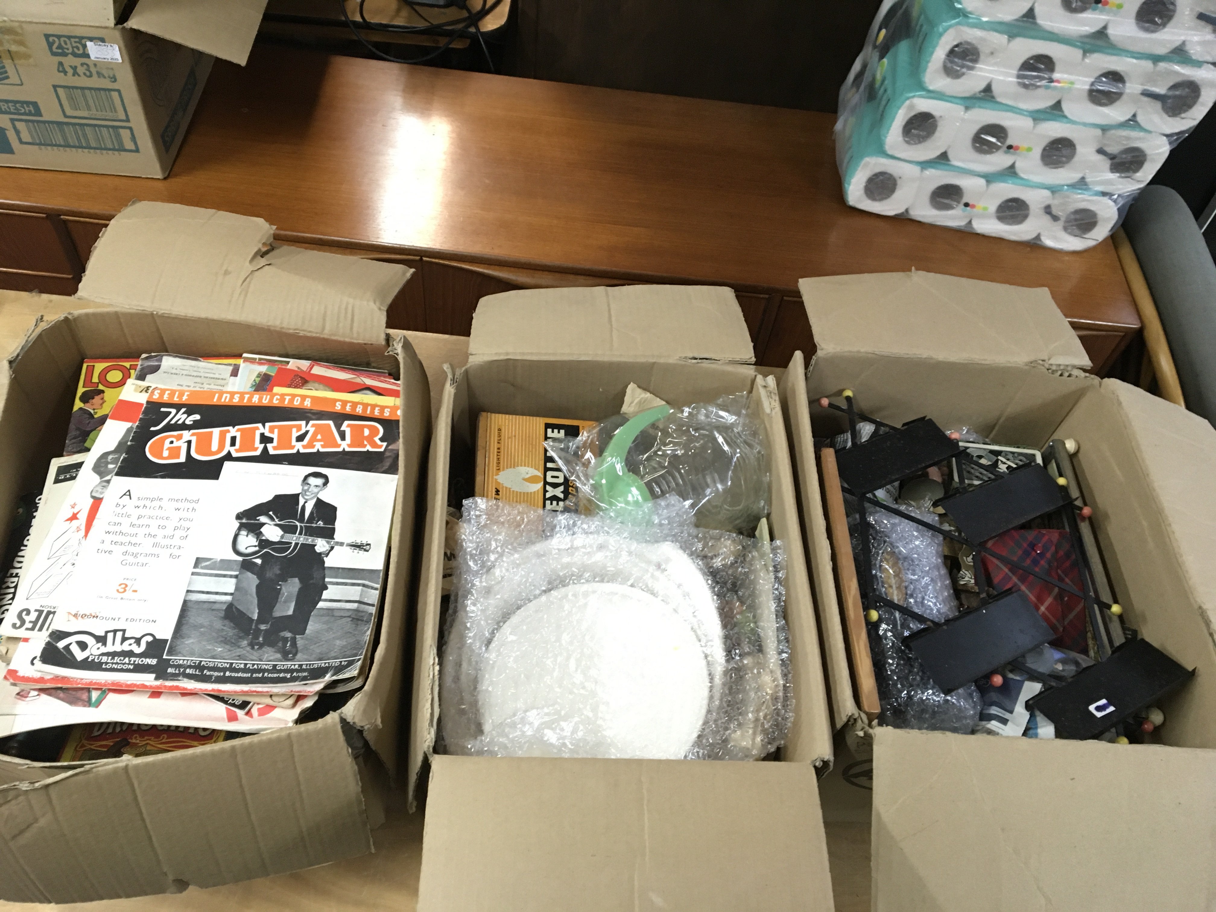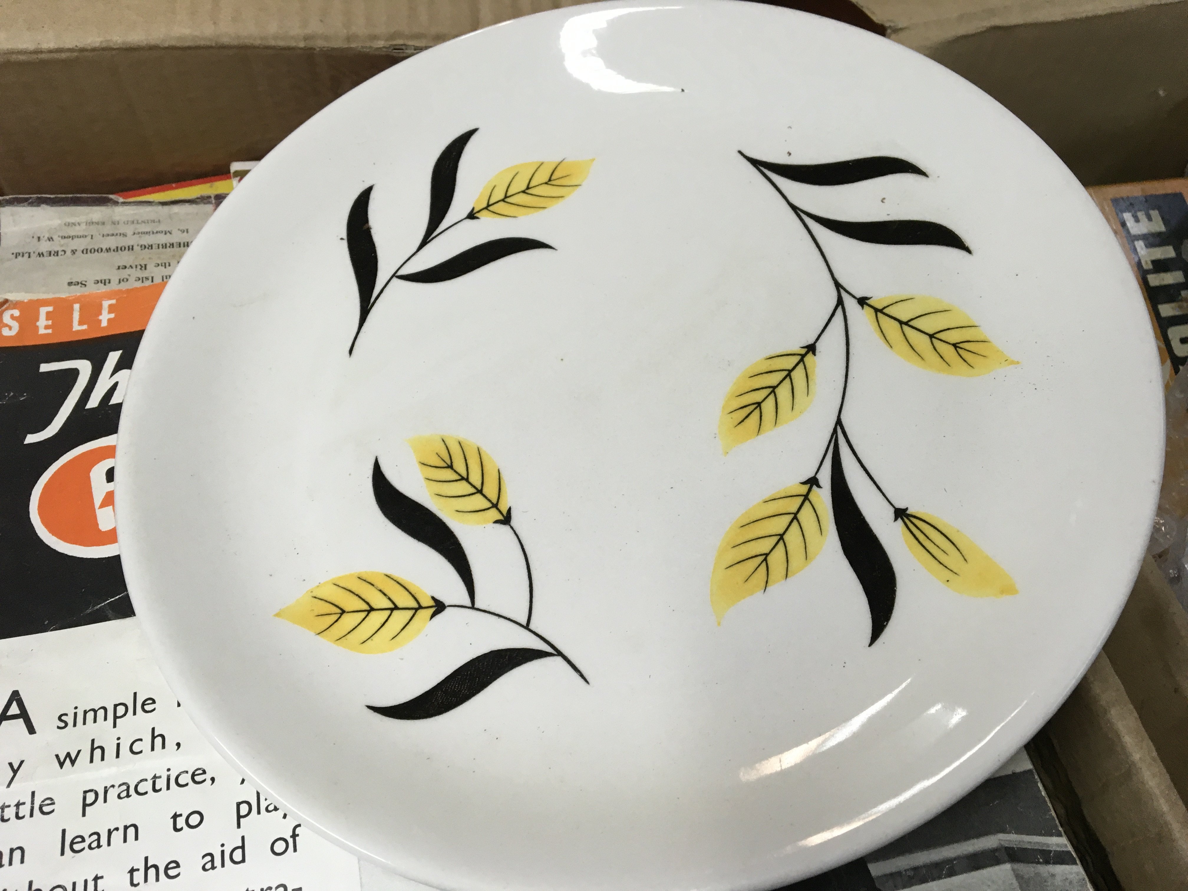 A collection of vintage items including games,magazines, seaside trivets, shoe expanders, plates including Swinnertons, sugar shaker