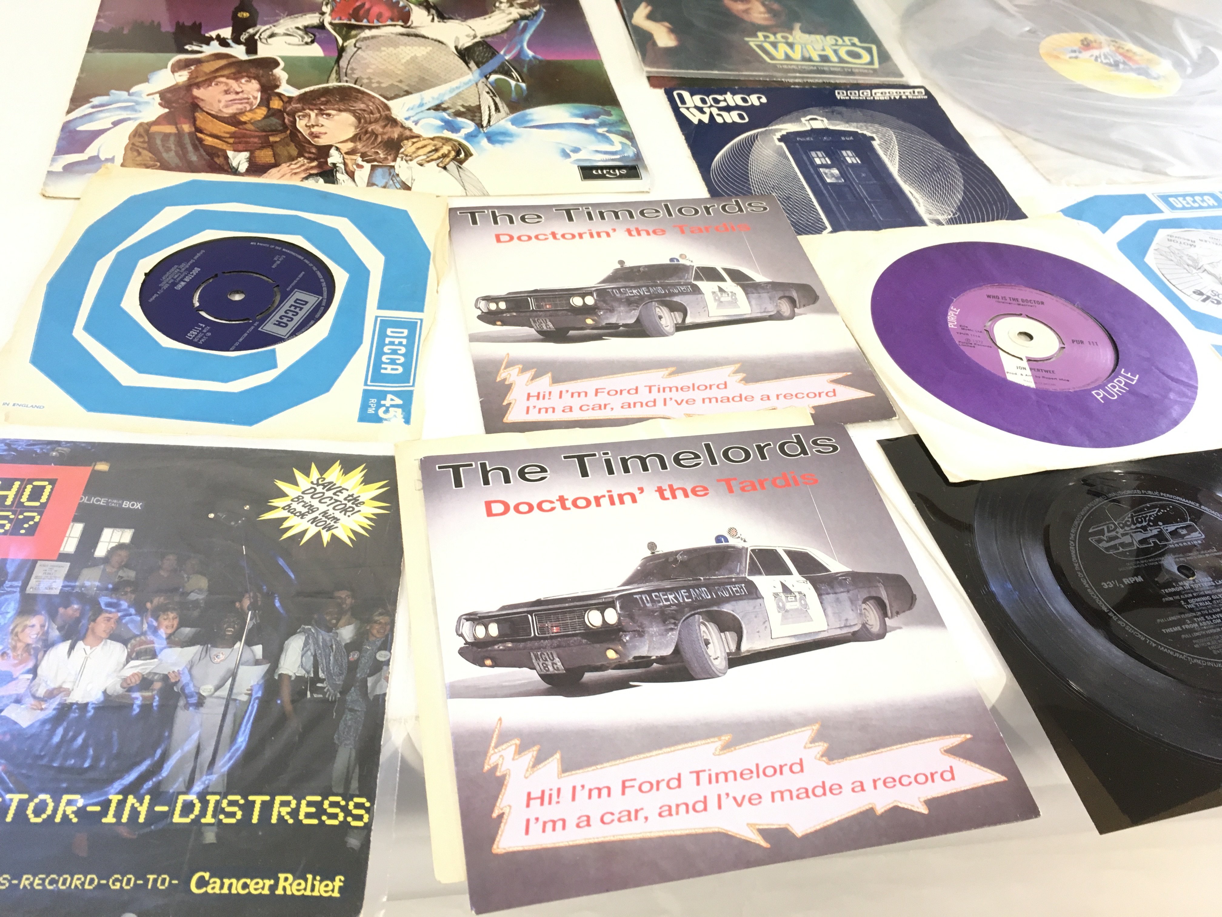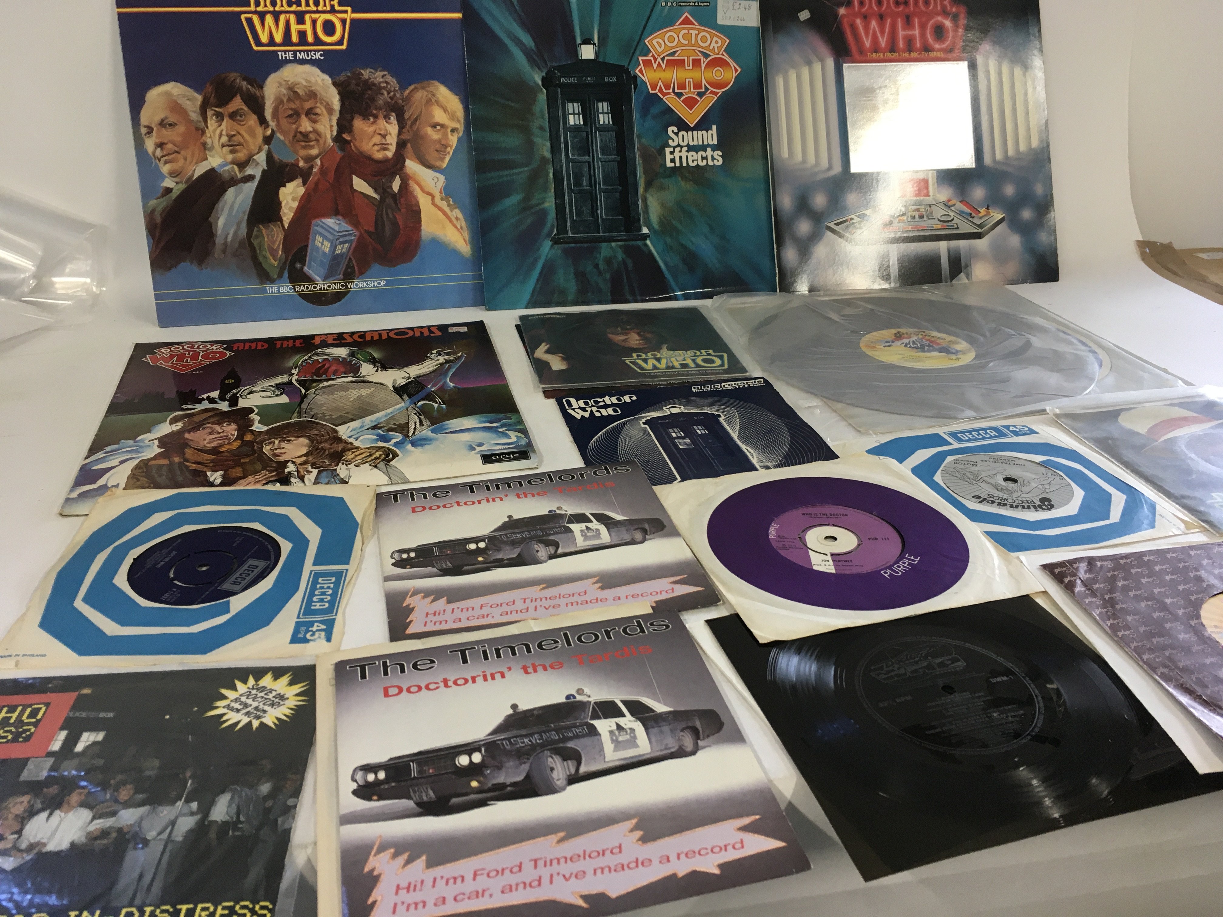 A collection of Vinyl albums and singles all related to Dr Who including soundtracks from the series and stories NO RESERVE
