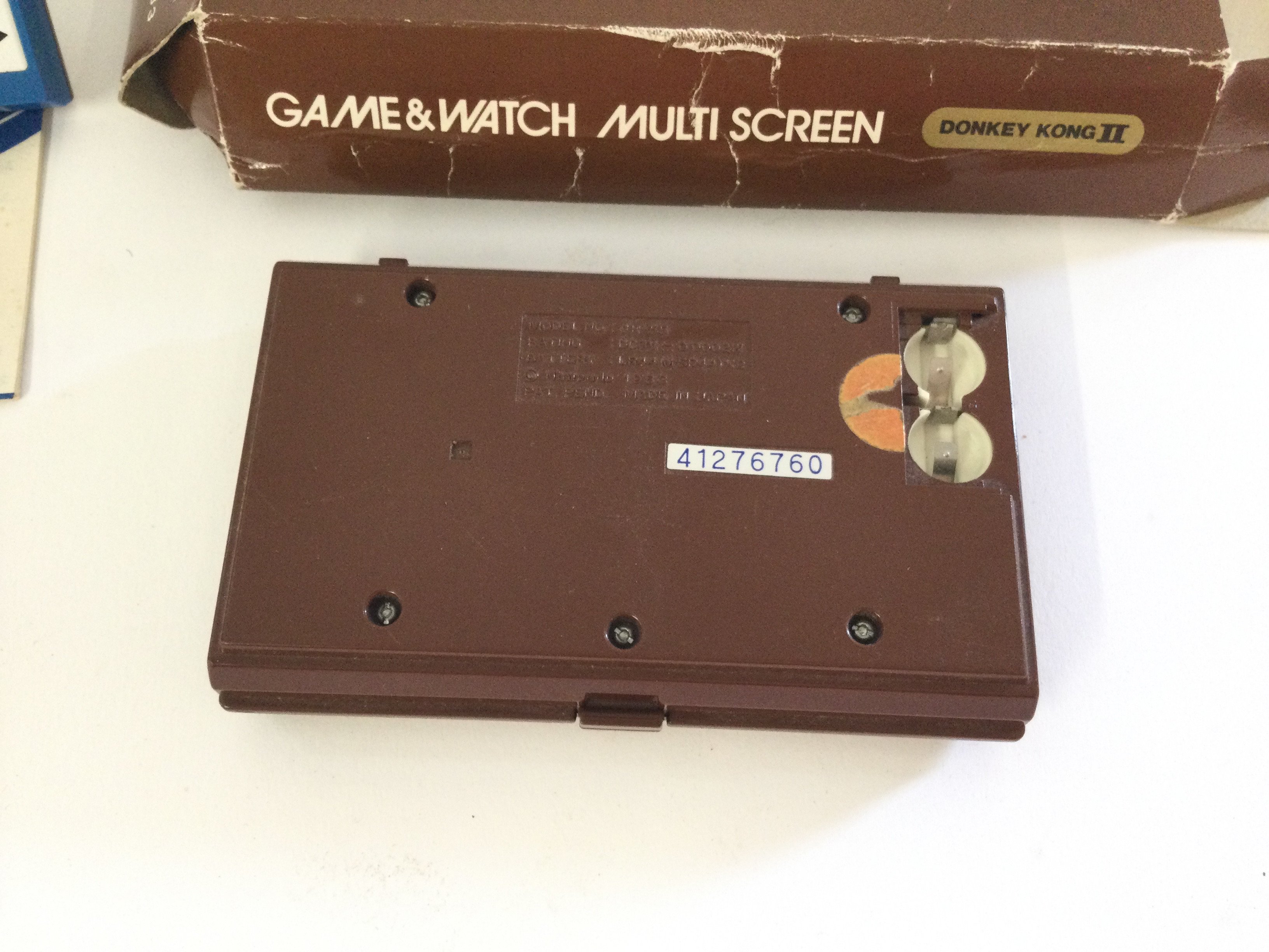 A Boxed Nintendo Donkey Kong Multi Screen , missing battery cover, a unboxed Gakken Donkey Angler with instructions, plus a Nintendo Lifeboat multi screen box with instructions, the game console is missing.