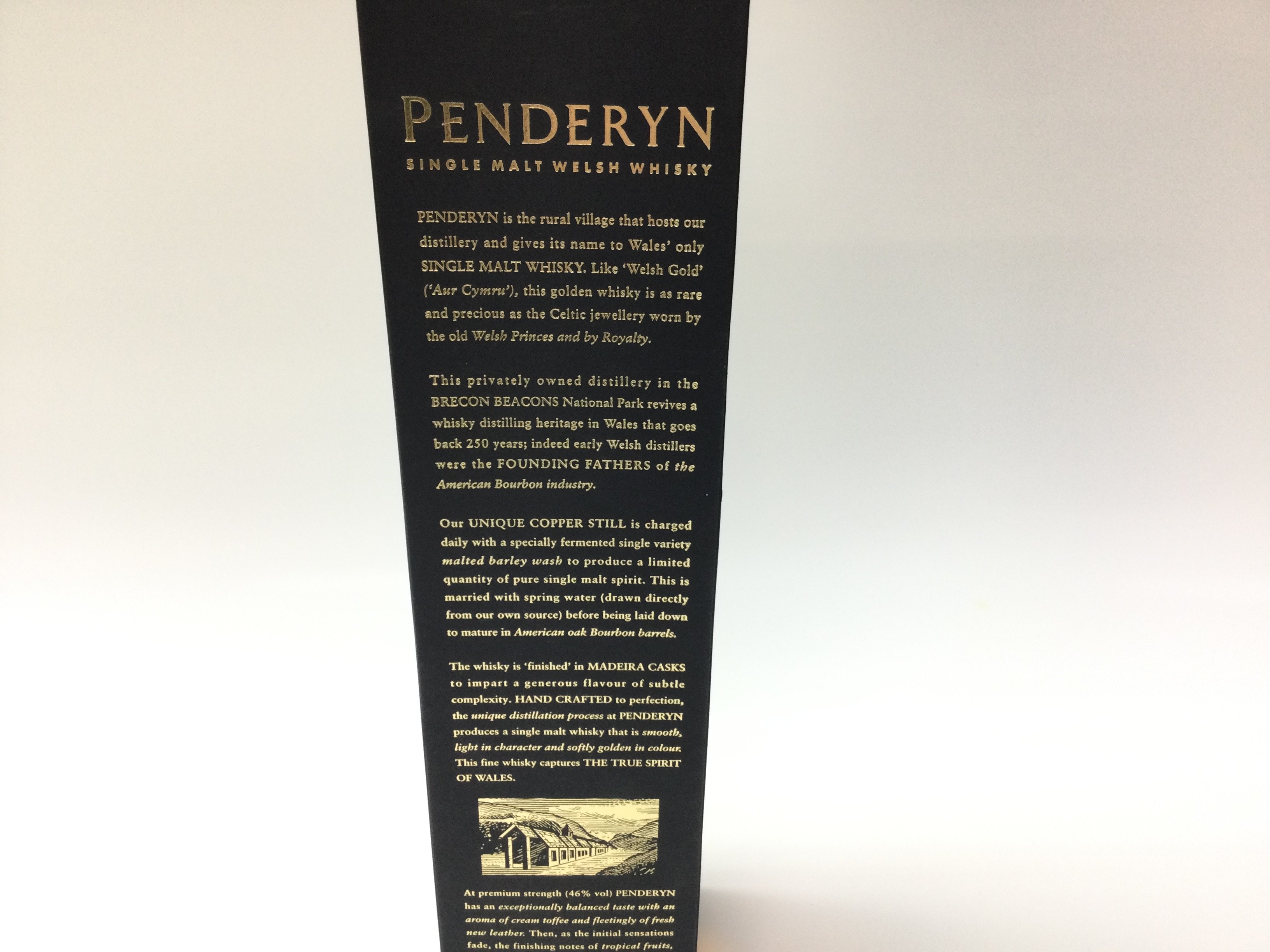 A bottle of Penderyn single malt whisky. 700ml sealed bottle.