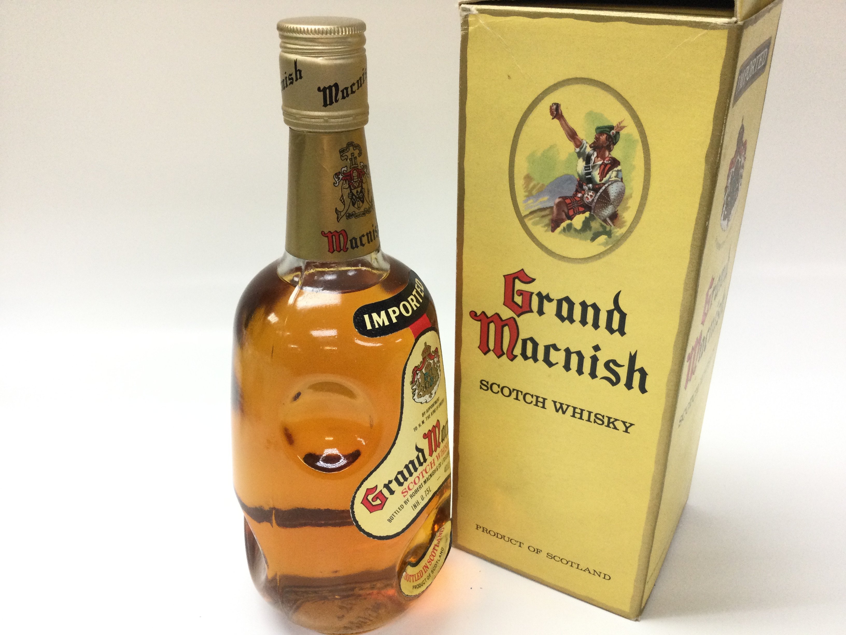 A bottle of Grand Macnish whisky. 750ml sealed bottle with box