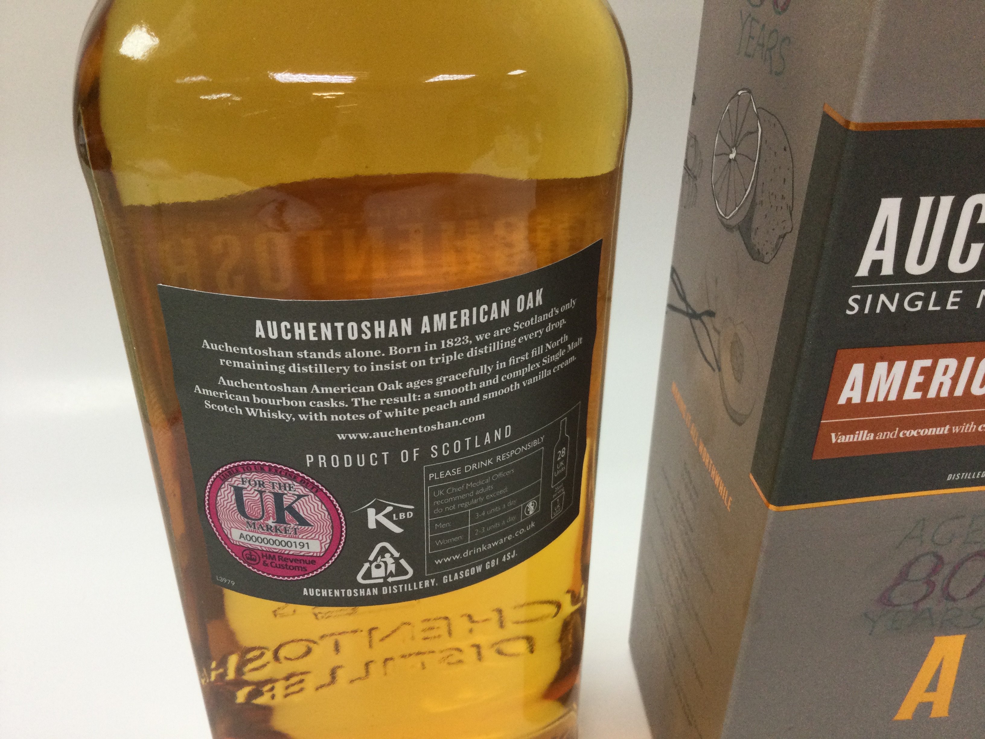A bottle of Auchentoshan single malt whisky. 700ml sealed and boxed.