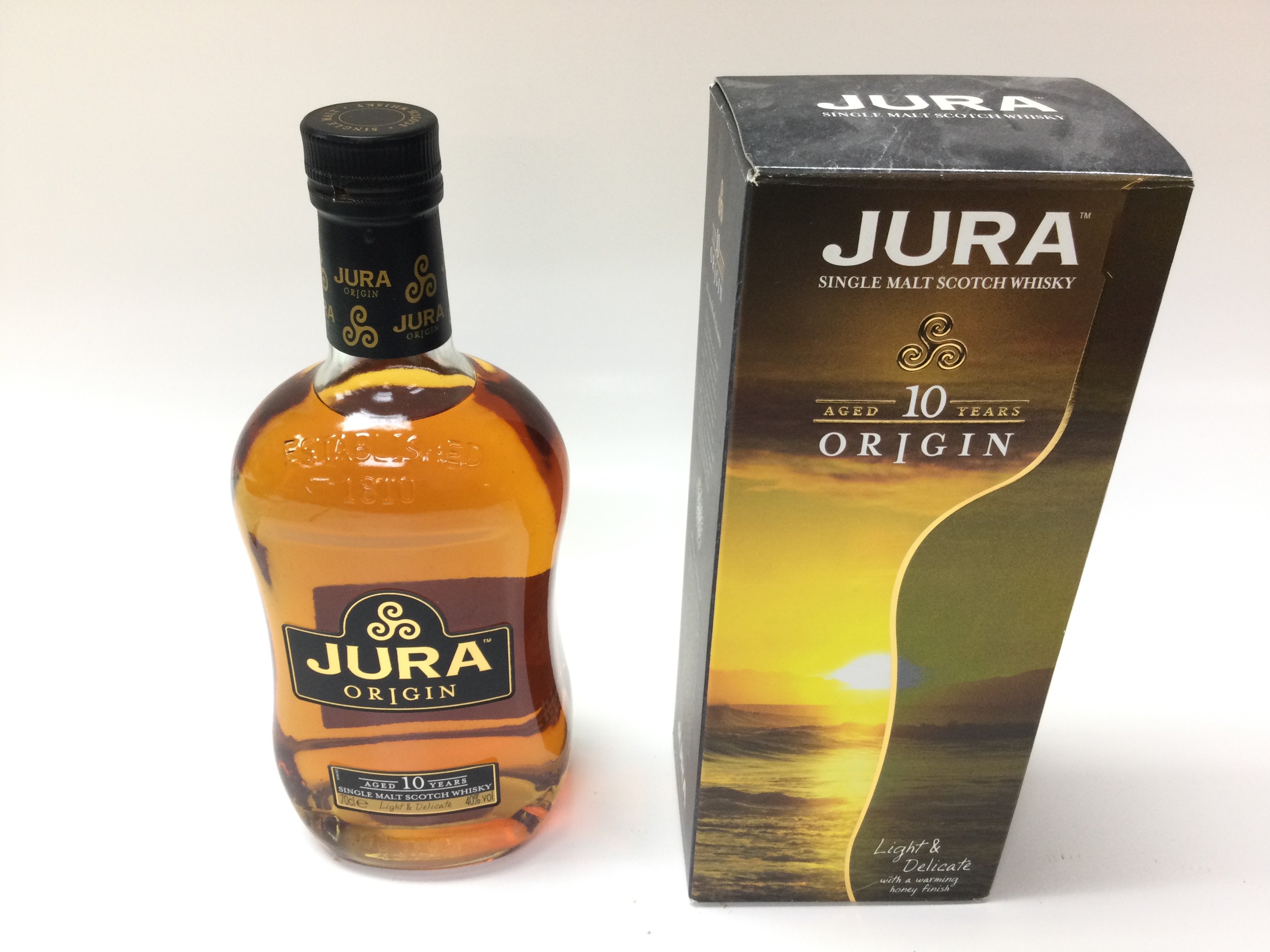 A bottle of Jura 10 years single malt whisky. 700ml sealed and boxed.