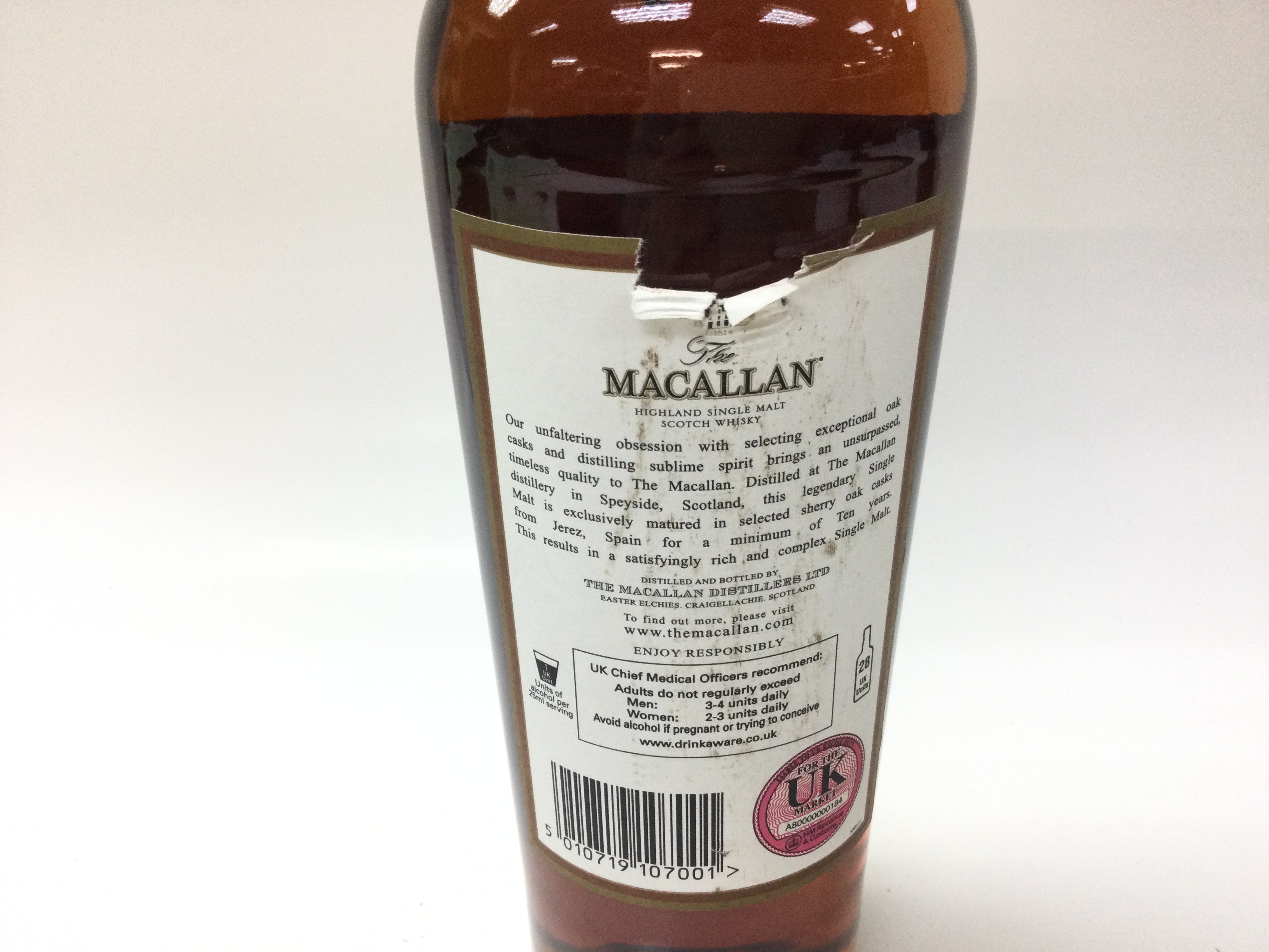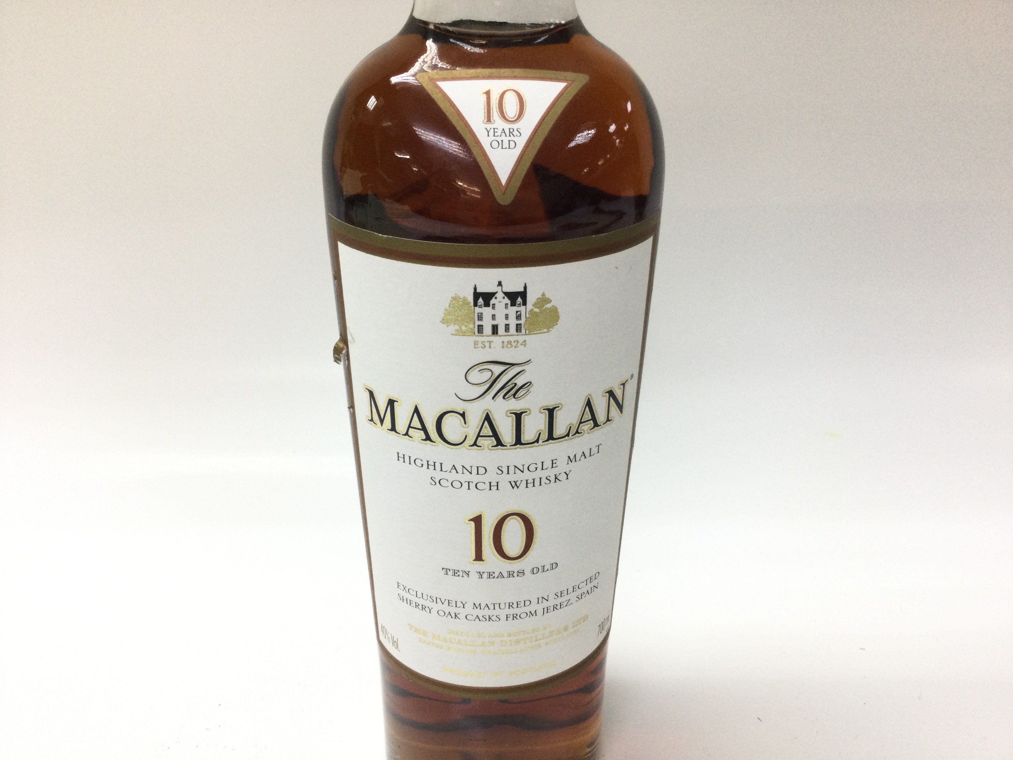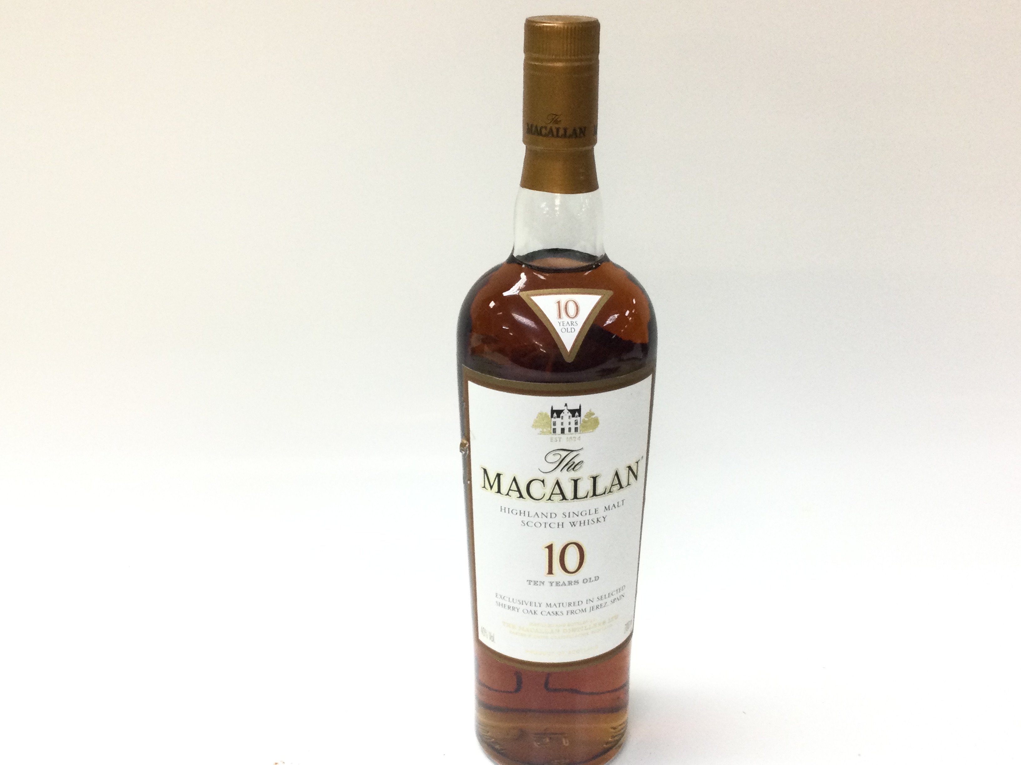 A bottle of MacAllan 10 years single malt whisky. 700ml and sealed.