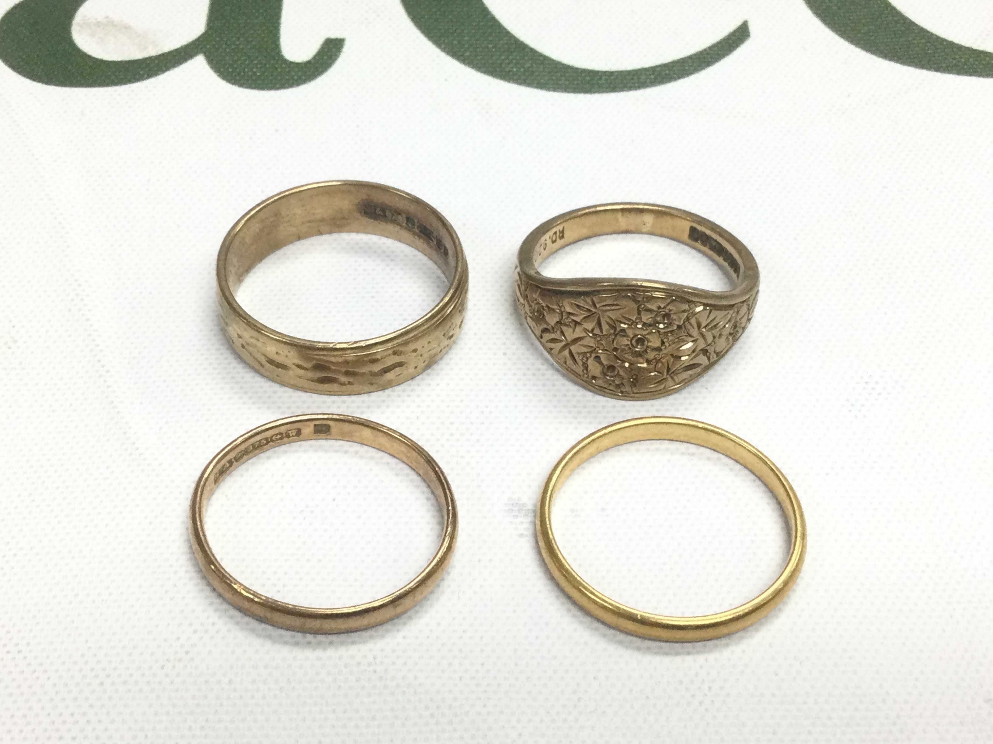 Four gold rings approx total weight 12.1g. Shipping category A.