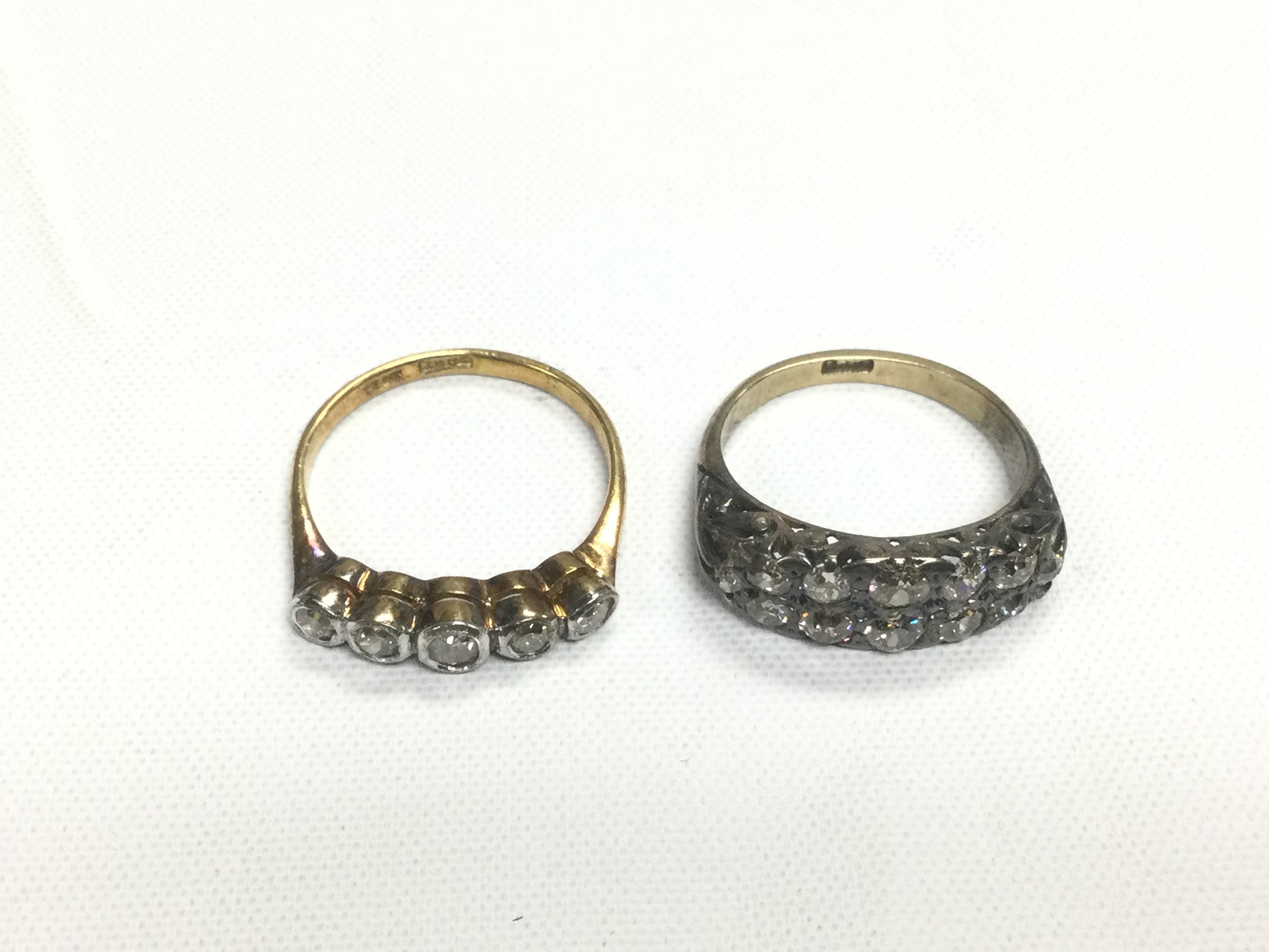 Two gold rings inset with old cut diamonds, approx total weight 7g. Shipping category A.