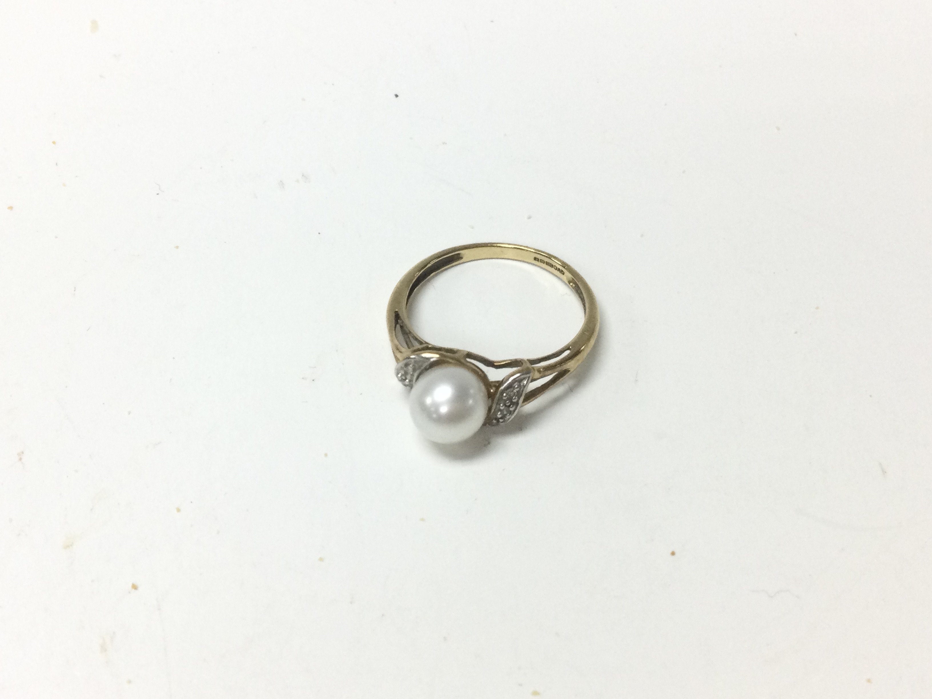 A 9ct gold pearl ring. Approx weight 1.81grams approx size L.