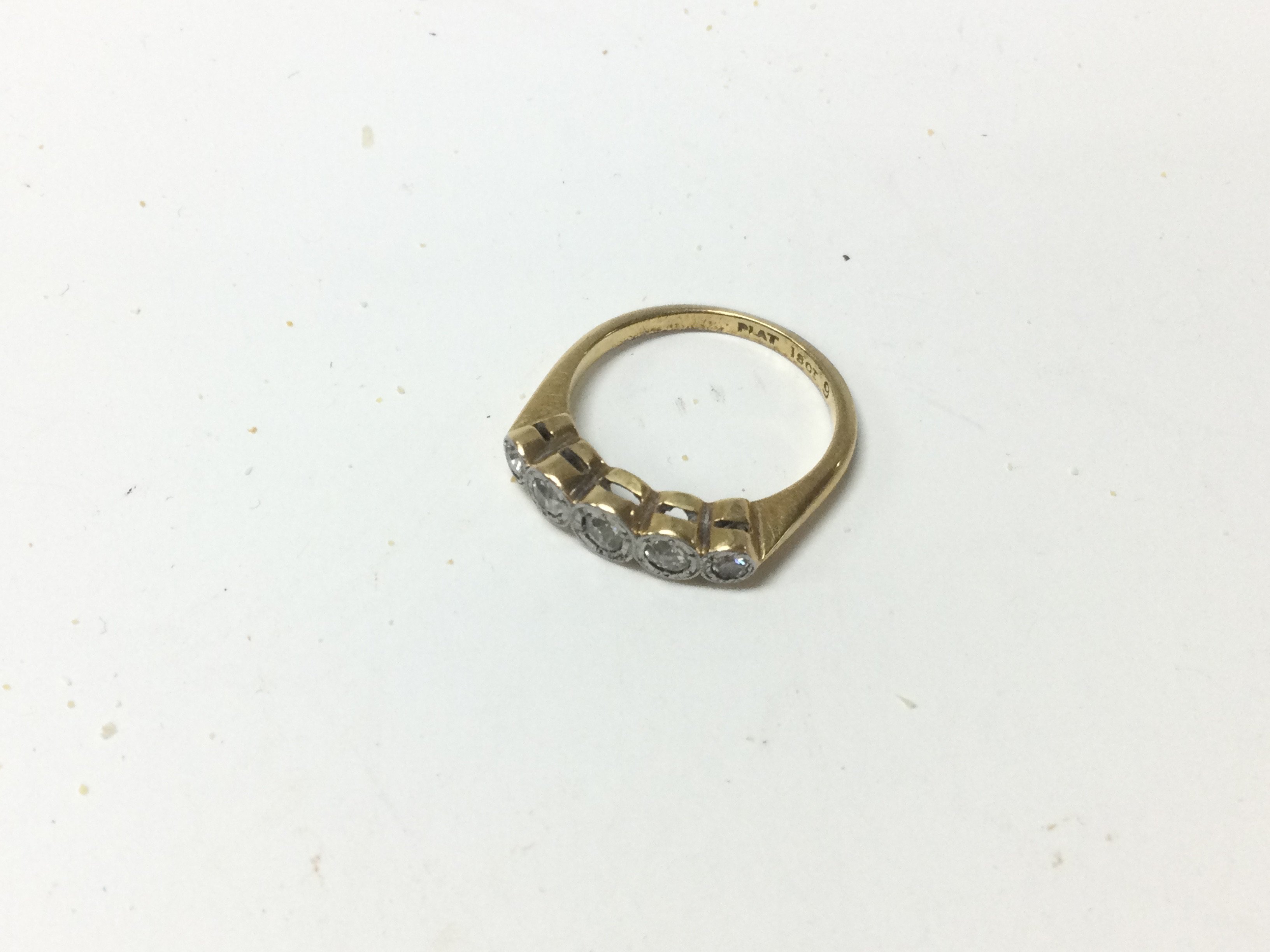 An 18ct gold five stone diamond illusion set ring. Approx weight 3.2 grams, size M.