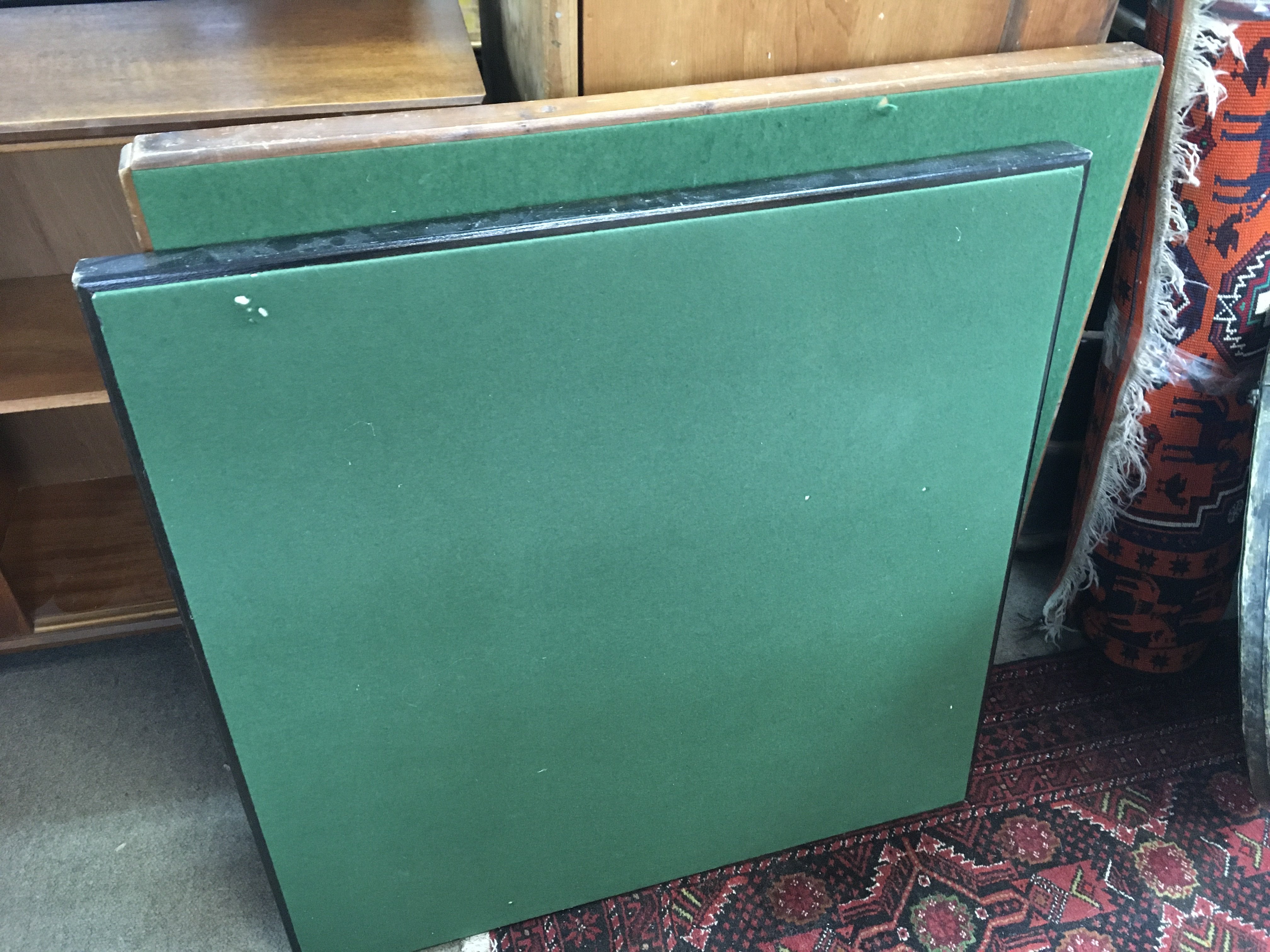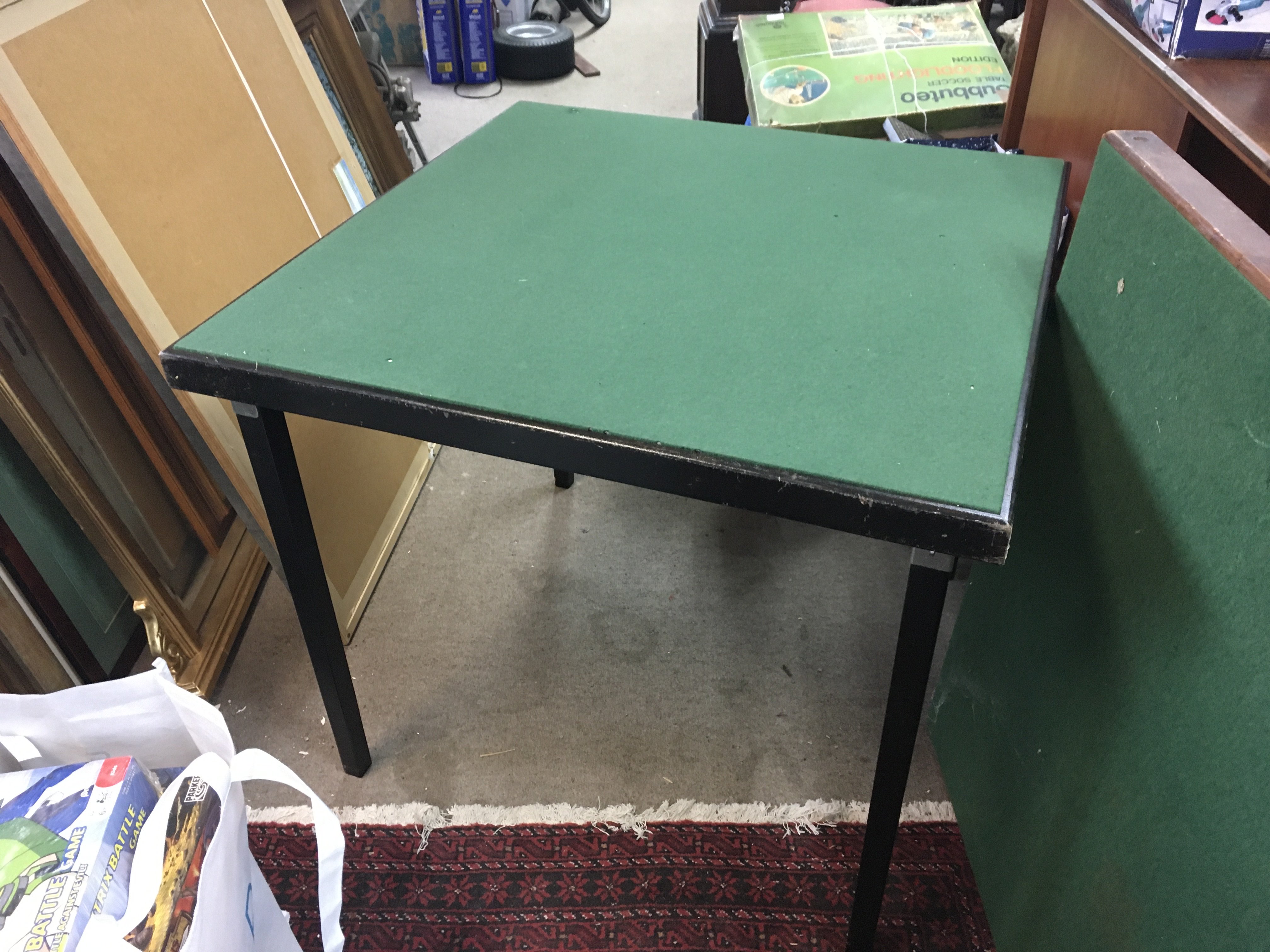 Three folding games tables with green beize tops. Smallest table 66cm wide, 76cm Long.
