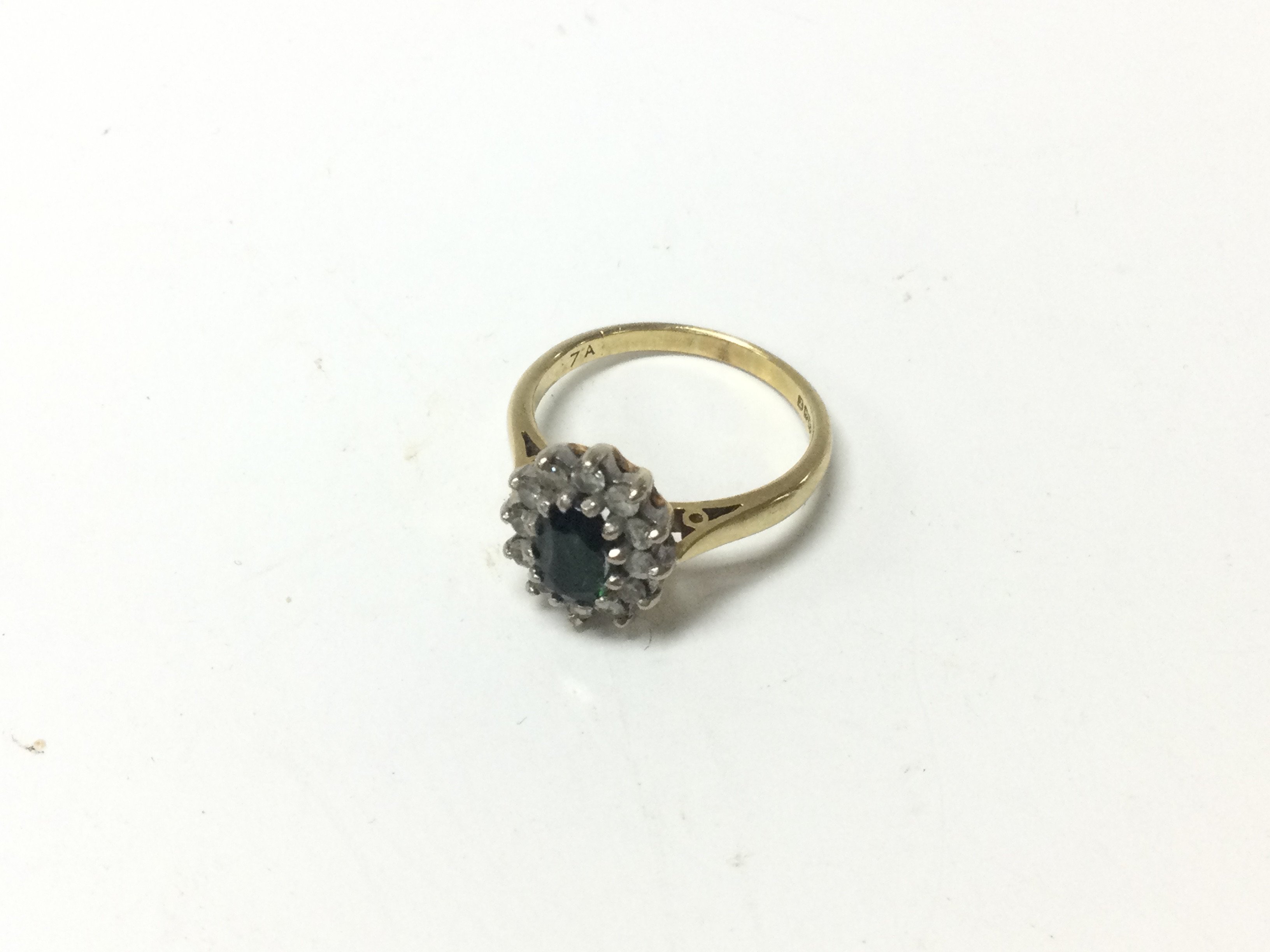 An 18ct gold green and white stone set ring. Approx weight 4.50 grams, size N.