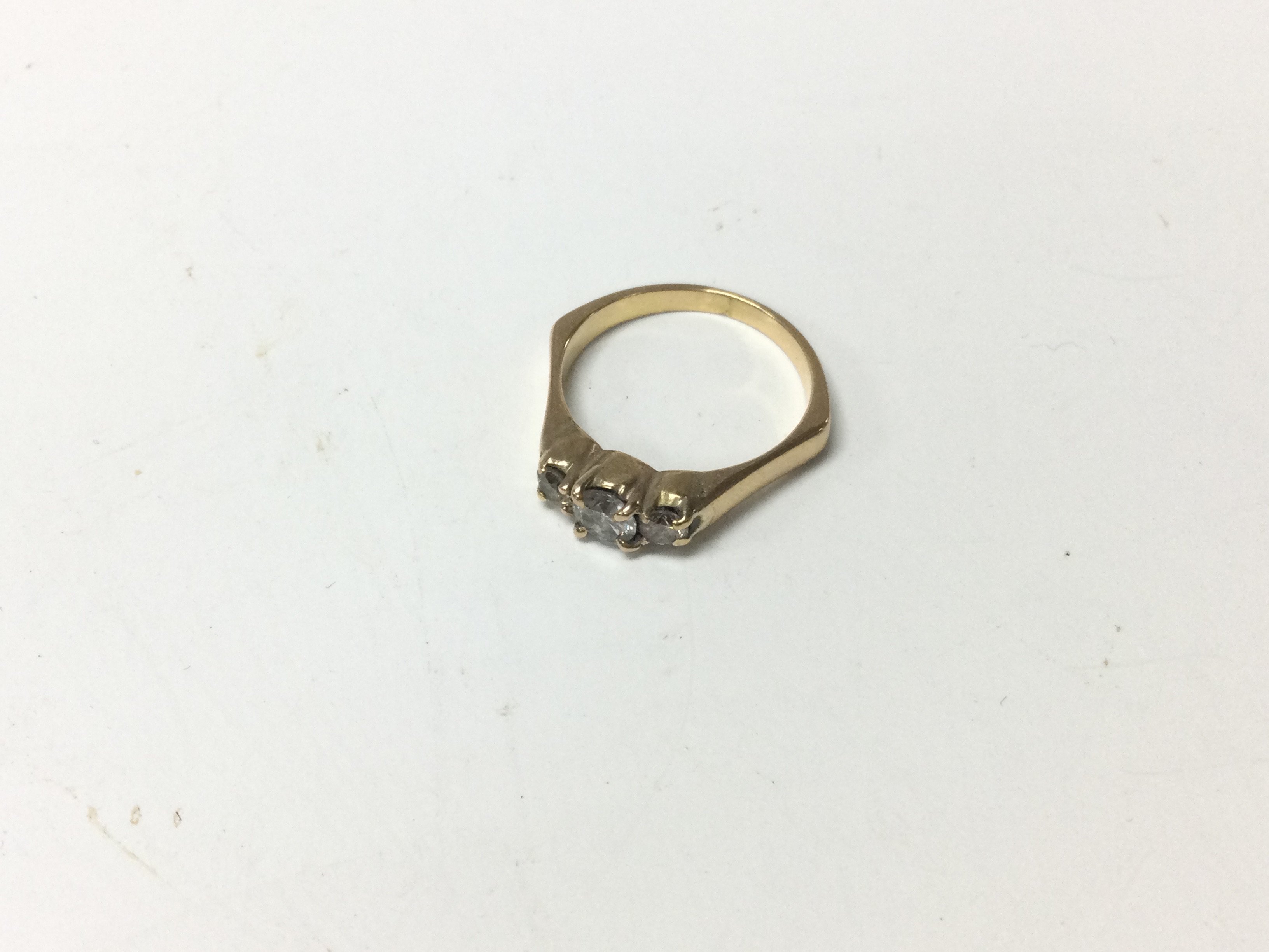 An 18ct gold three stone diamond ring. approx weight 3.7 grams, size M.