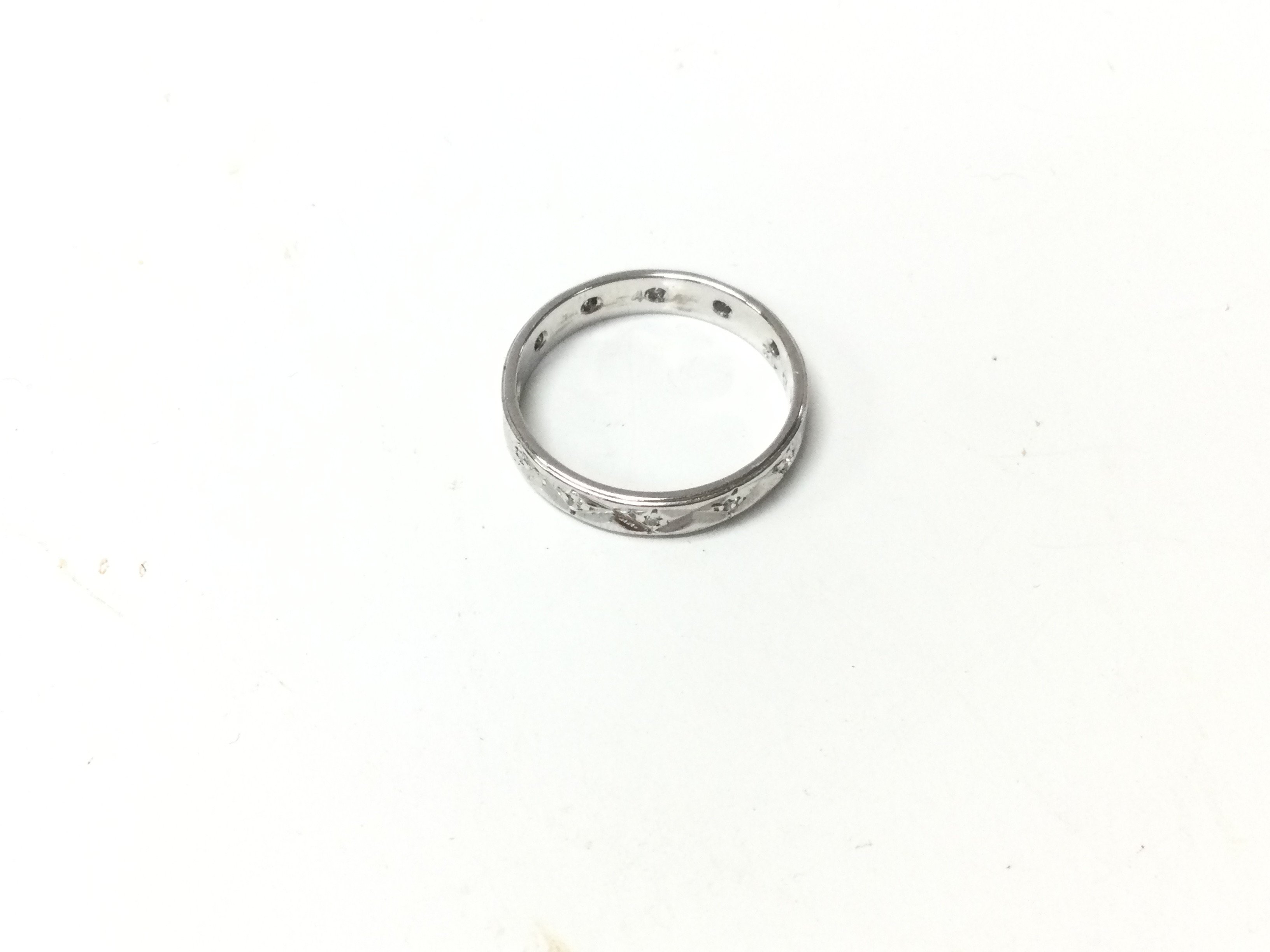 An 18ct white gold eternity band set with stones. Approx weight 3.17 grams, size O 1/2.