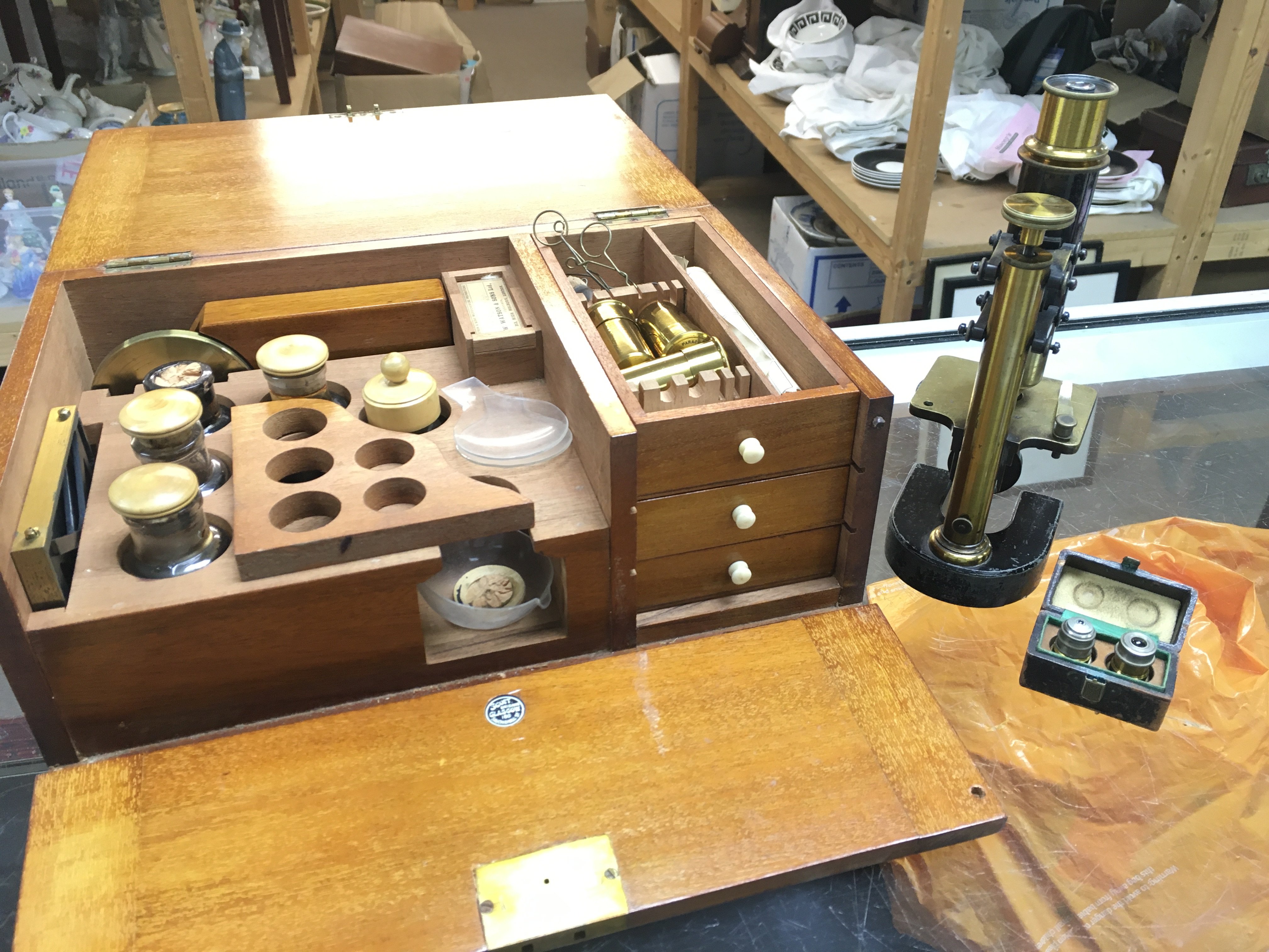 An Austrian microscope by C. Reichert Wien with a wooden case of lenses and other accessories. This lot cannot be posted