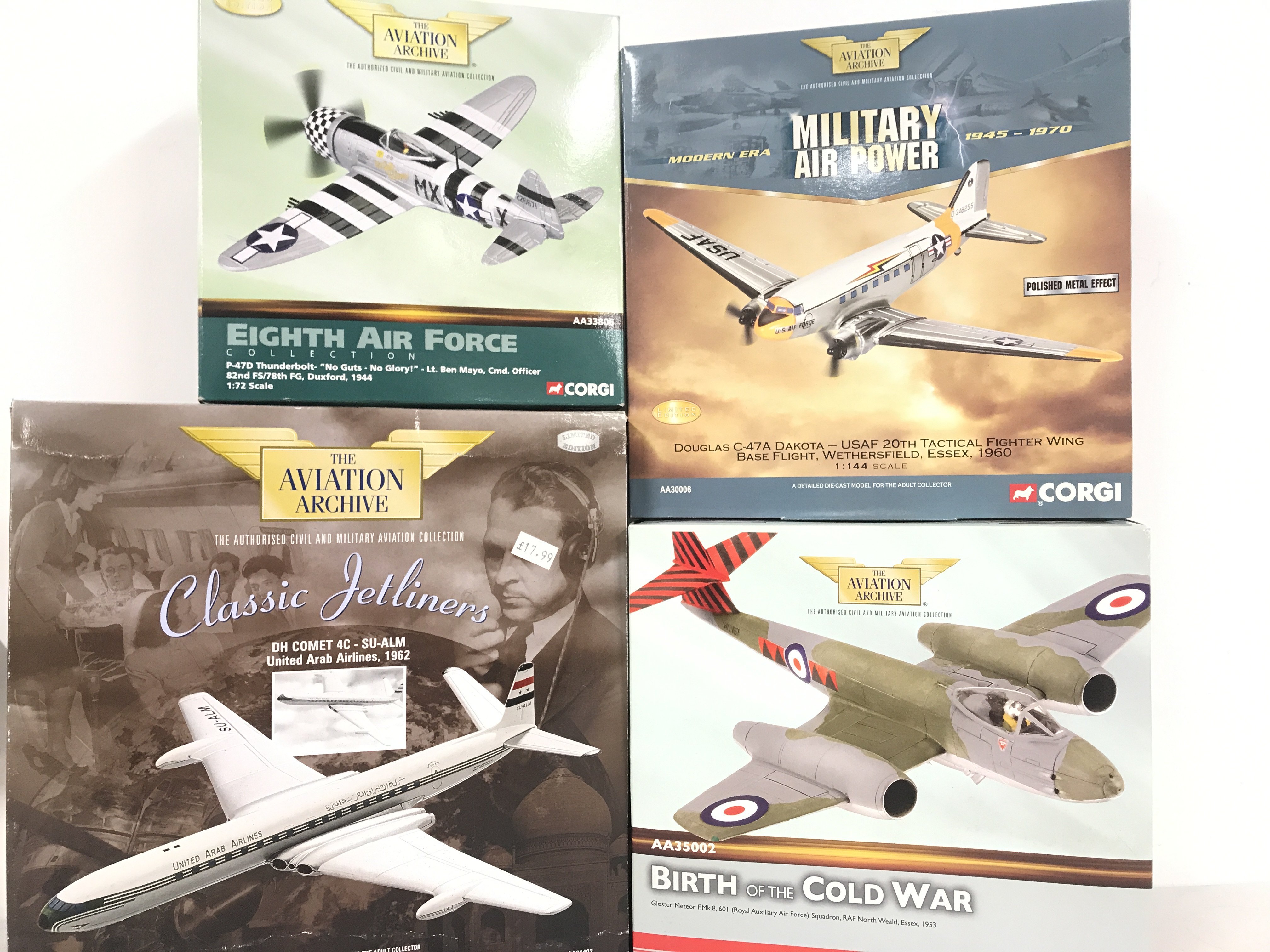 4 X Boxed Corgi Aviation Archive Diecast Models Including A P47 Thunderbolt. A Douglas C-47A. A DH Comet And A Gloster Meteor. No Reserve (4).