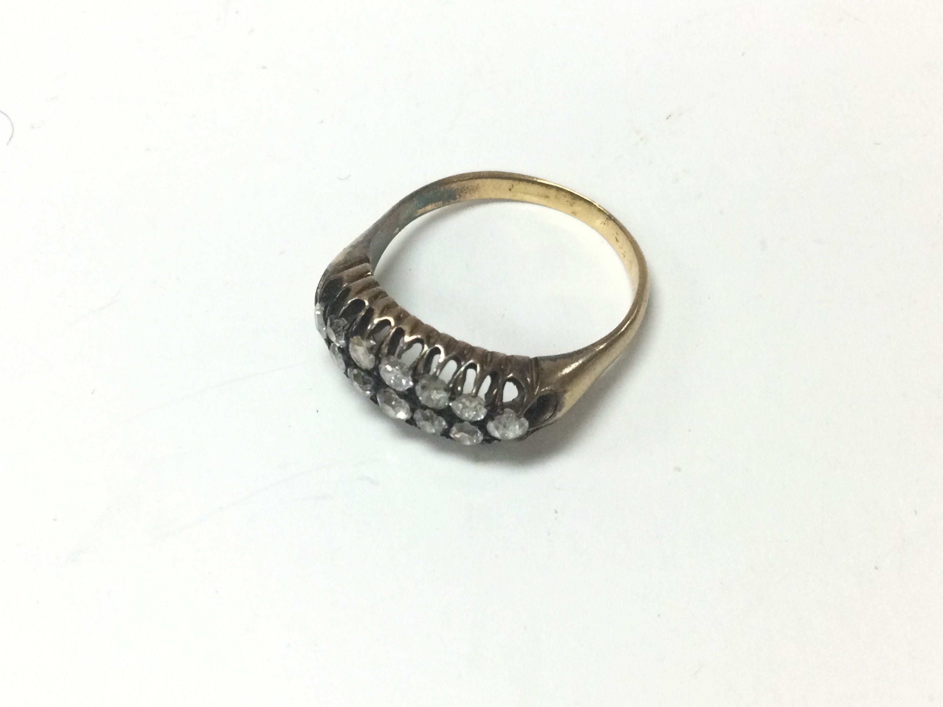 A yellow metal 12 stone set ring. Approx weight 5.78 grams, size S.