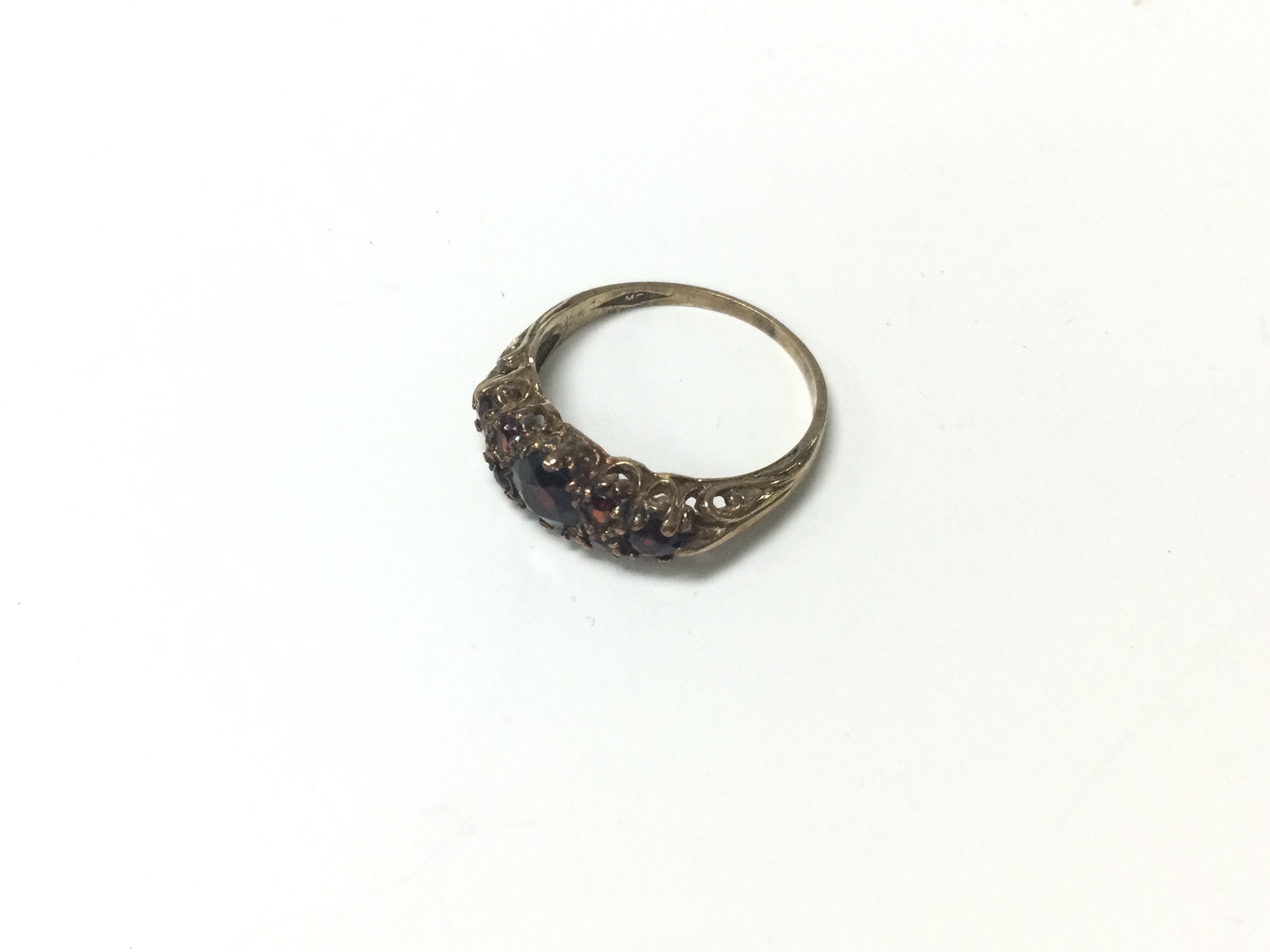 A 9ct gold Edwardian garnet ring. Approx weight 2.4 grams, size P.