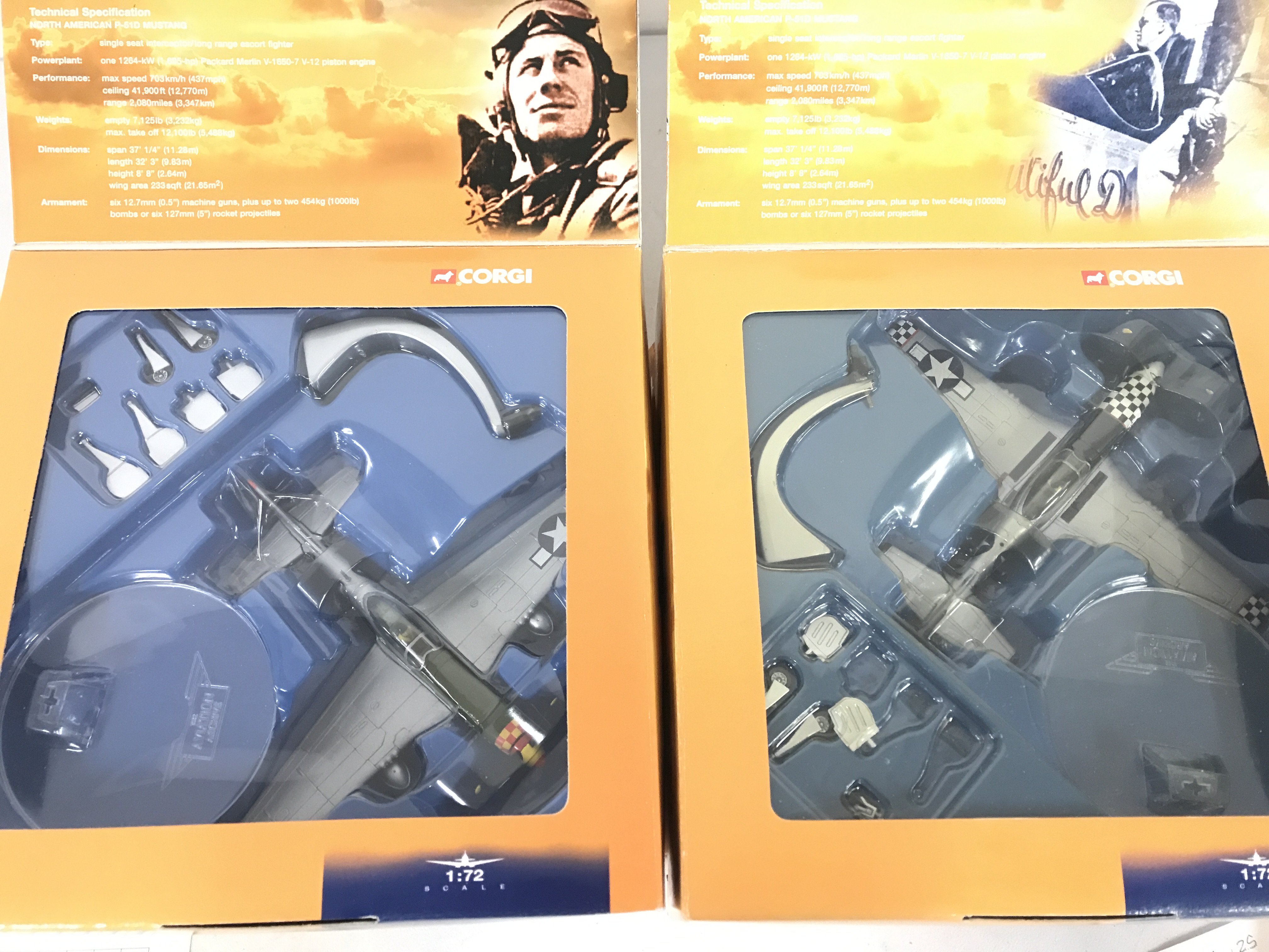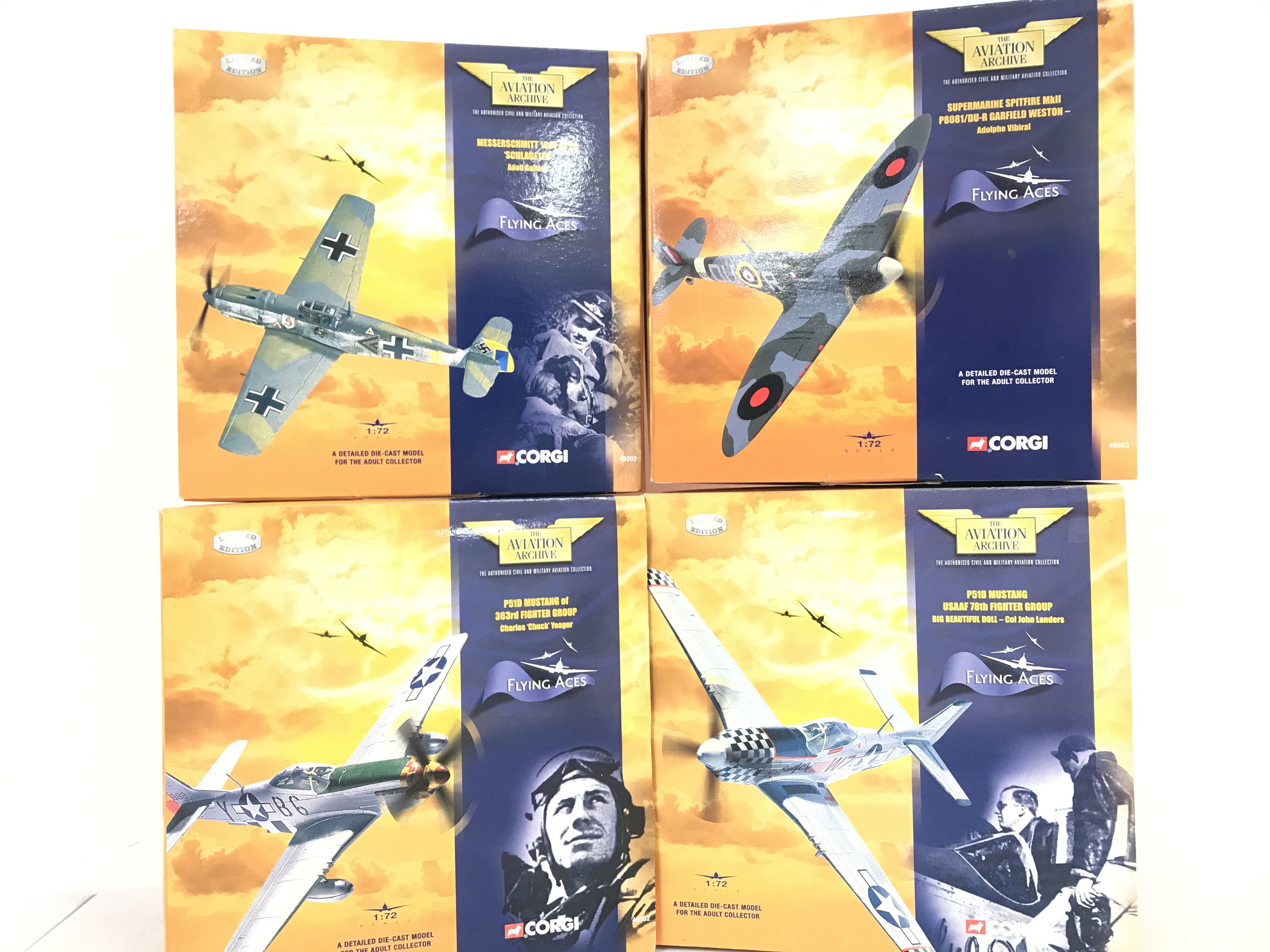 4 X Boxed Corgi Aviation Archive Flying Aces Models.A Messerschmitt. A Spitfire. And 2 X P51 D Mustangs. No Reserve (4).