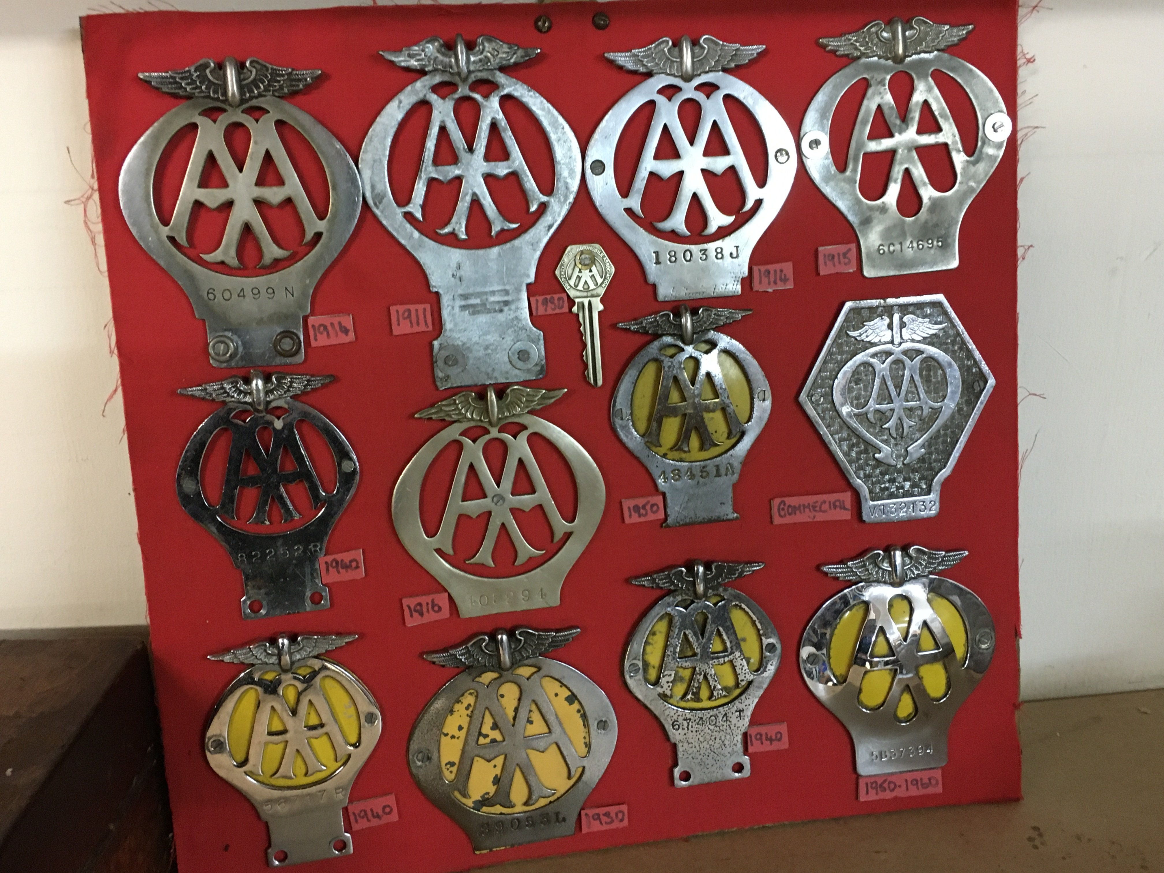 A collection of 12 vintage AA car badges from 1911, postage category B